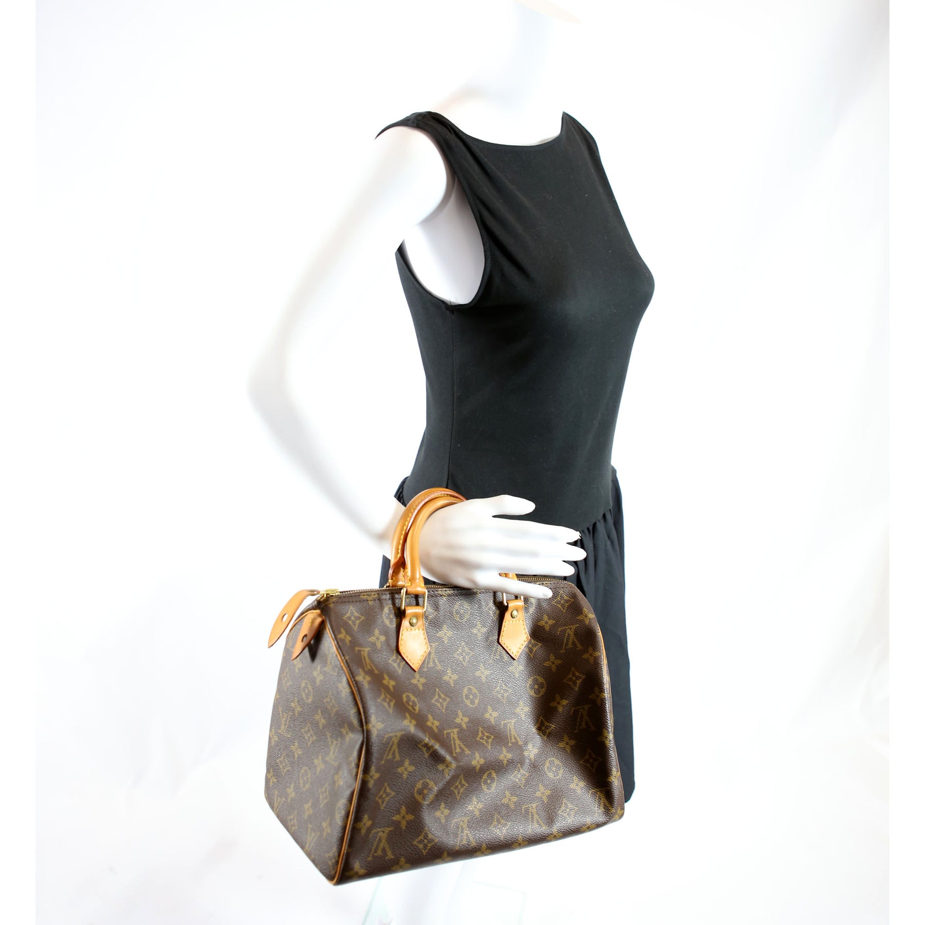 This pre-owned Louis Vuitton Speedy 30 Monogram is guaranteed 100% authentic. The exterior is in the classic Louis Vuitton coated canvas.