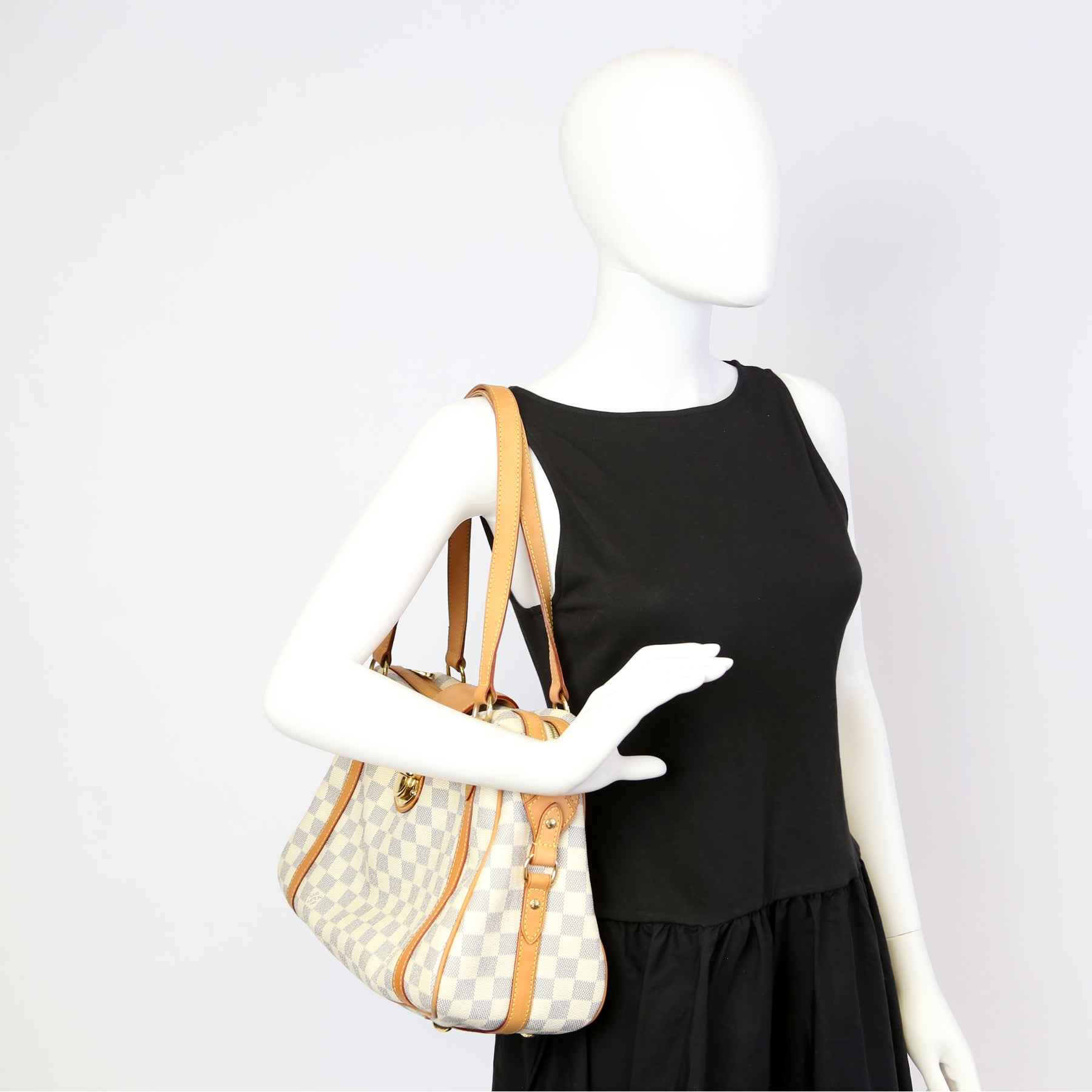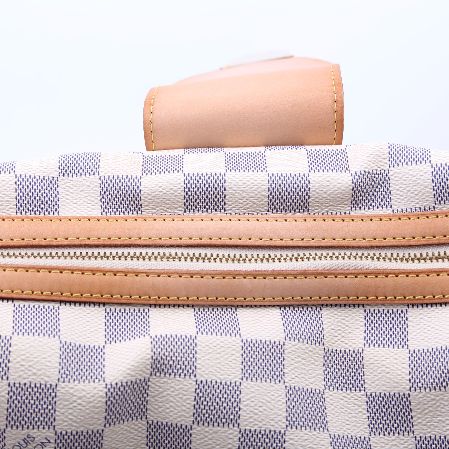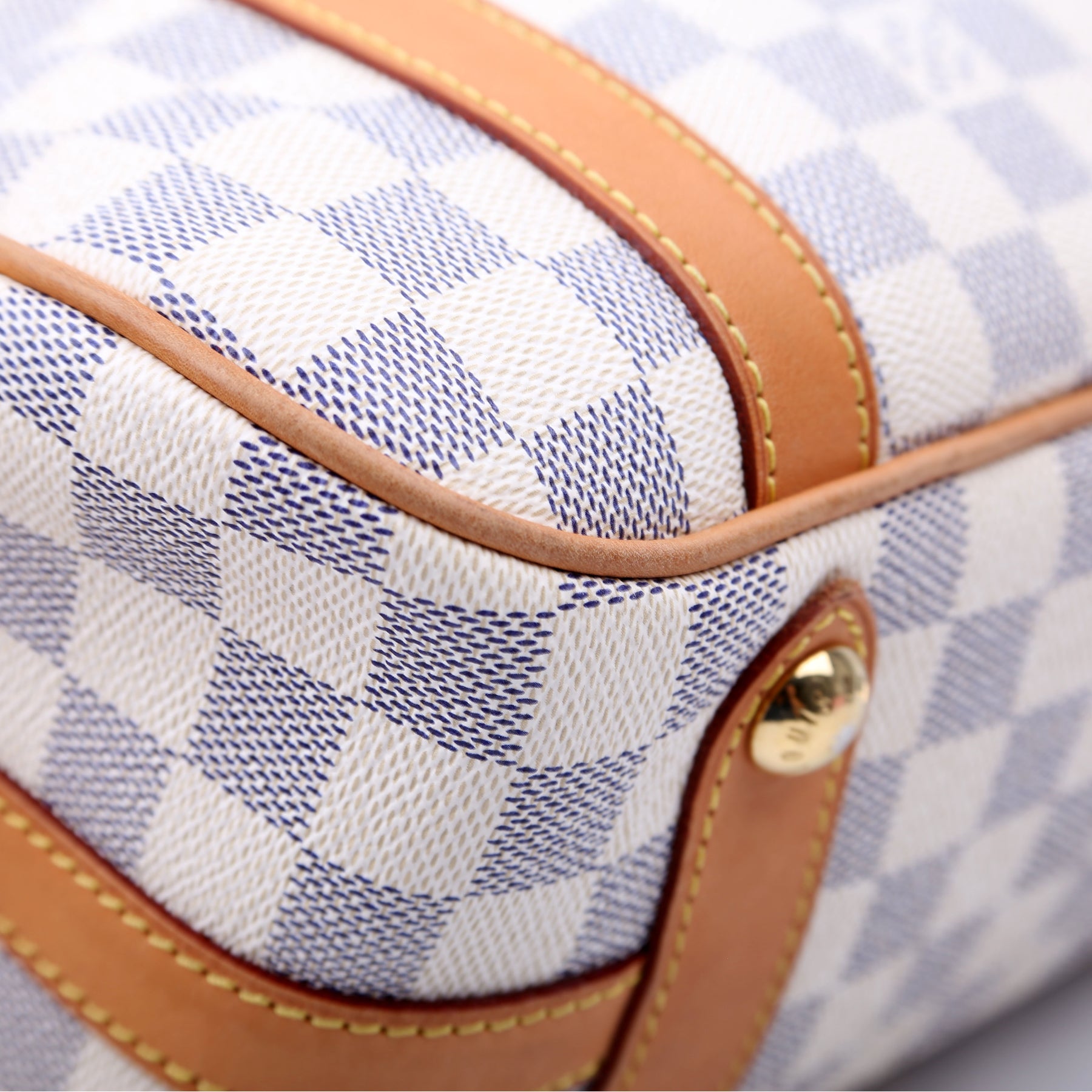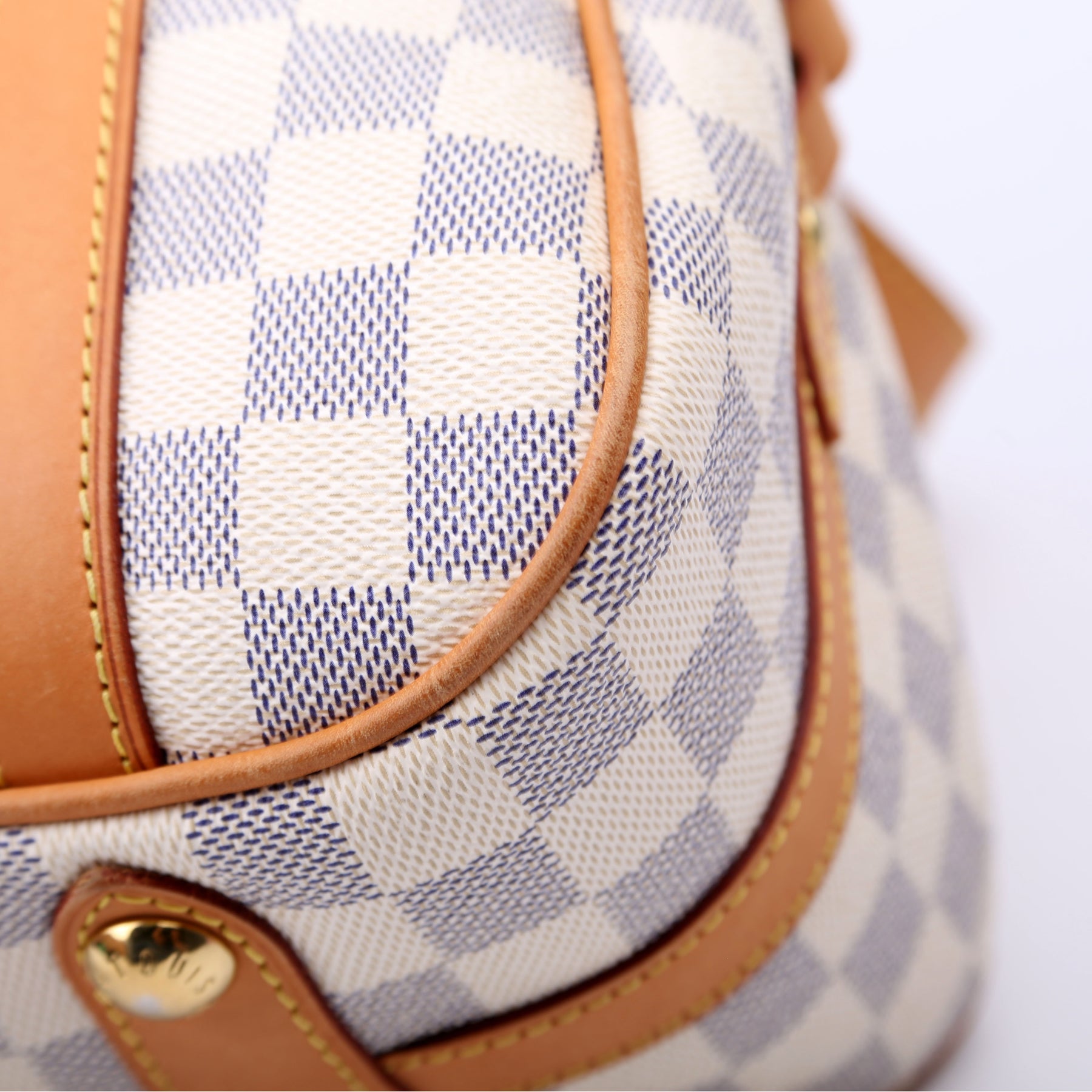 This pre-owned Louis Vuitton Stresa PM is guaranteed 100% authentic. The exterior is in the classic Louis Vuitton Damier Azur coated canvas.