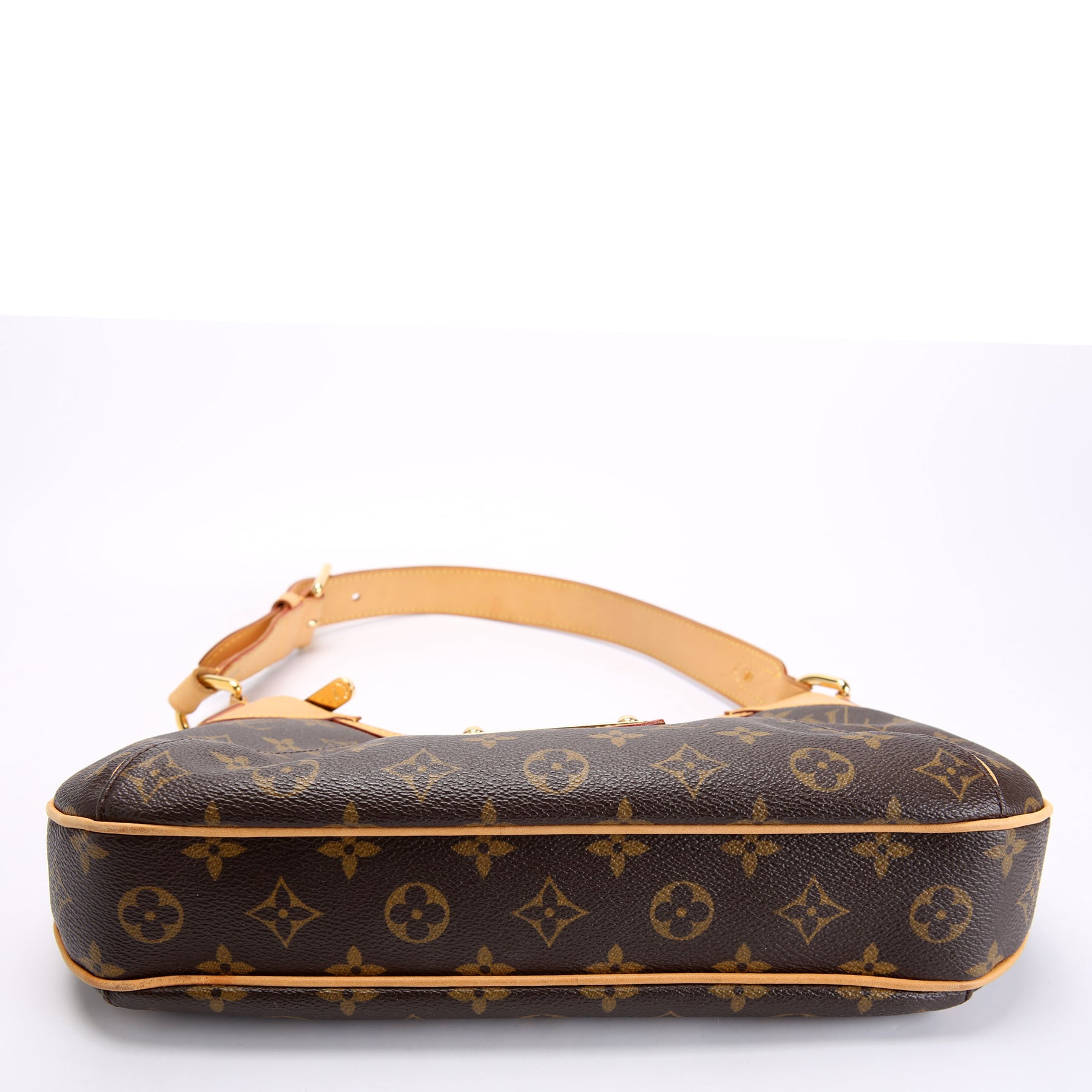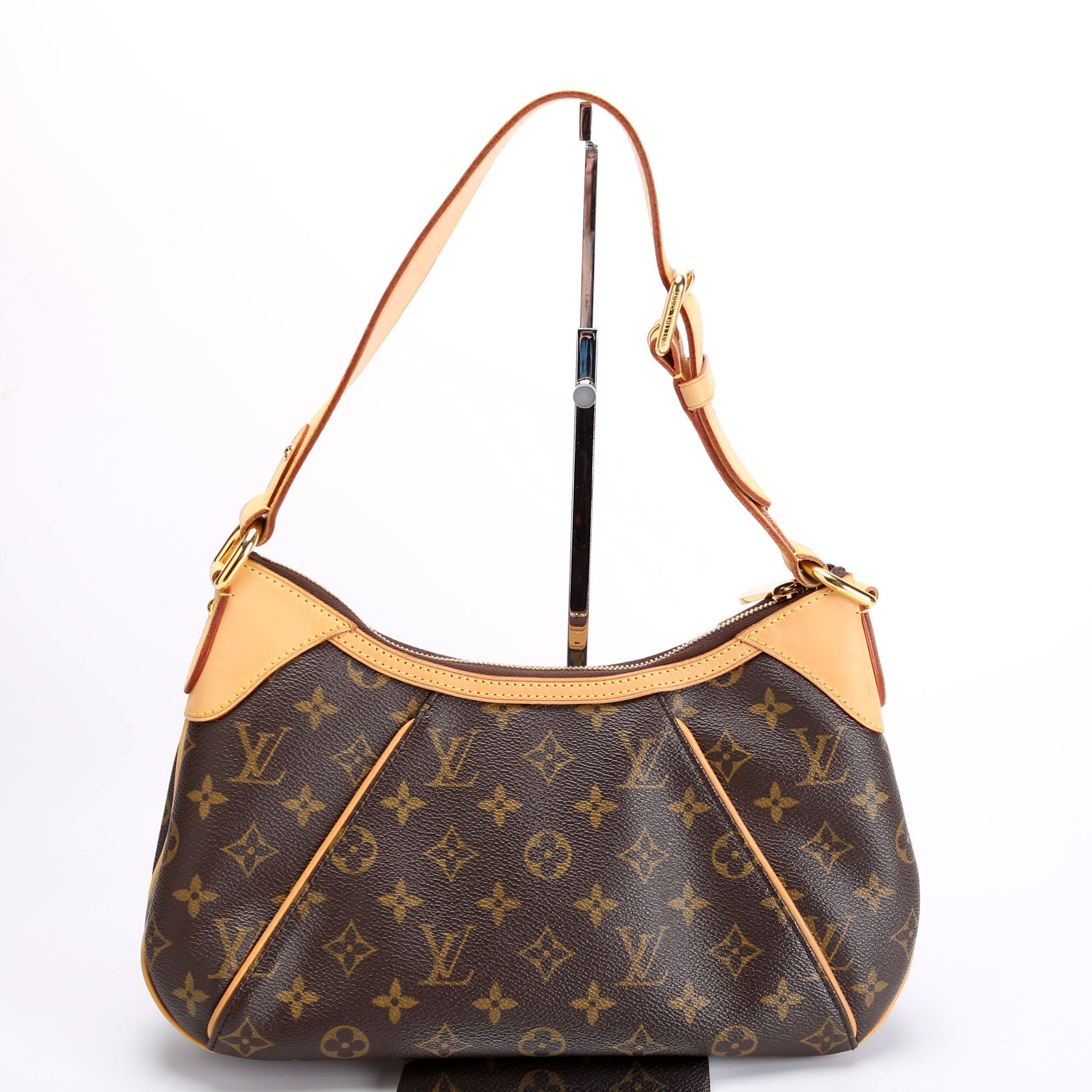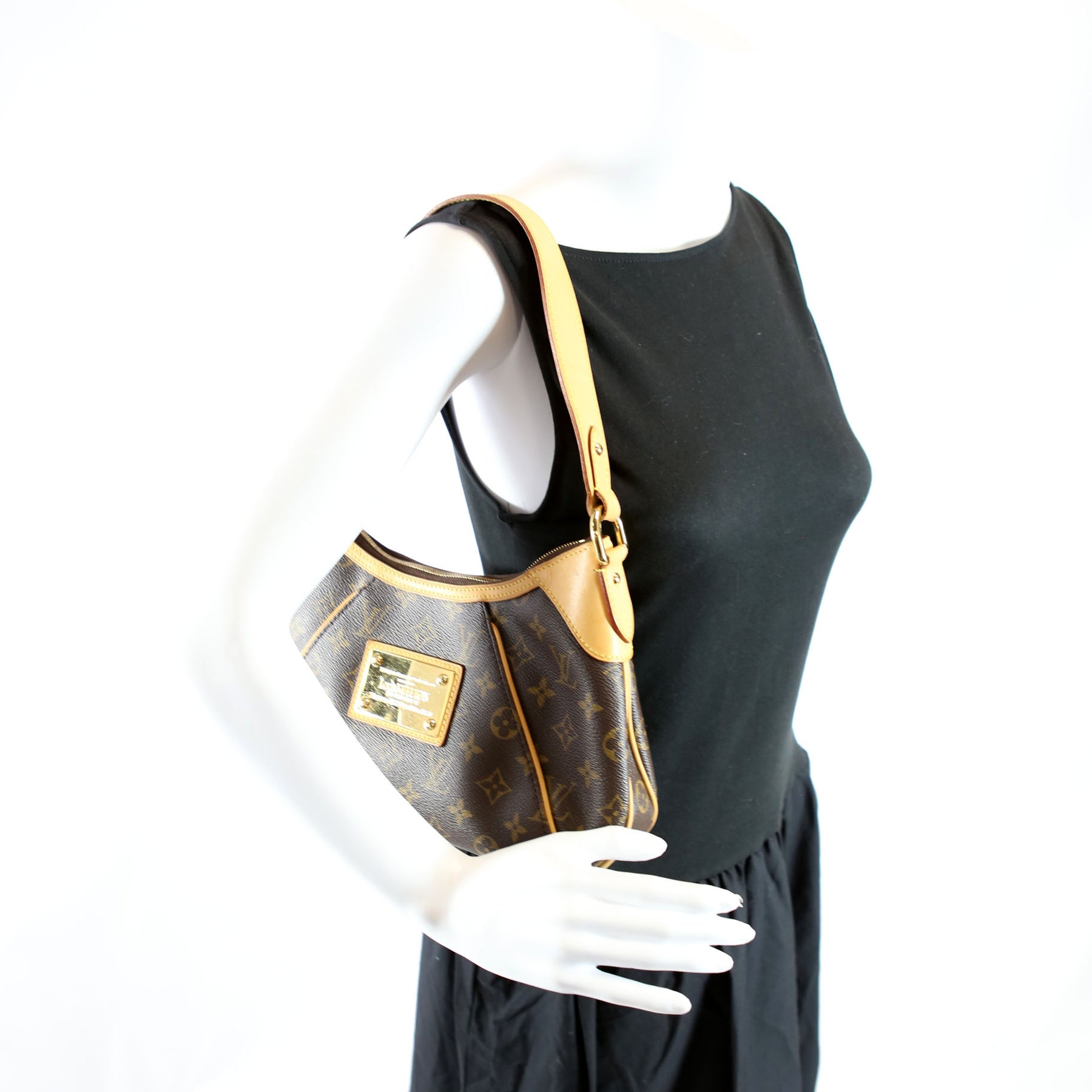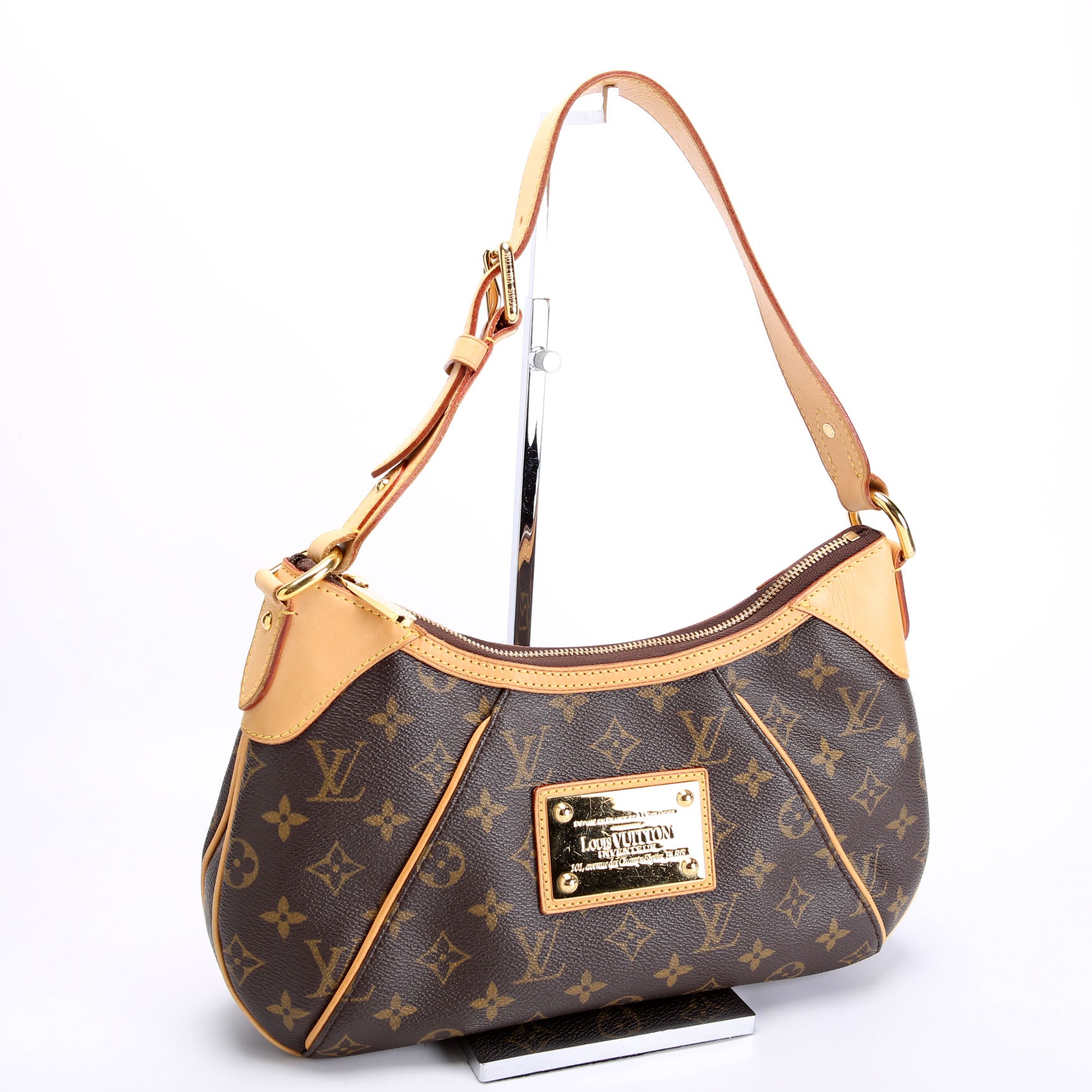 This pre-owned Louis Vuitton Thames PM Monogram is guaranteed 100% authentic. The exterior is in the classic Louis Vuitton Monogram coated canvas.