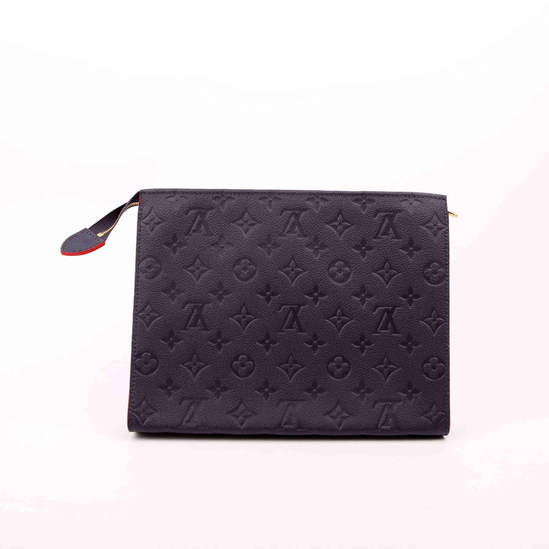 This pre-owned Louis Vuitton Toiletry Pouch 26 is guaranteed 100% authentic. The exterior is in the classic Louis Vuitton Empreinte leather.