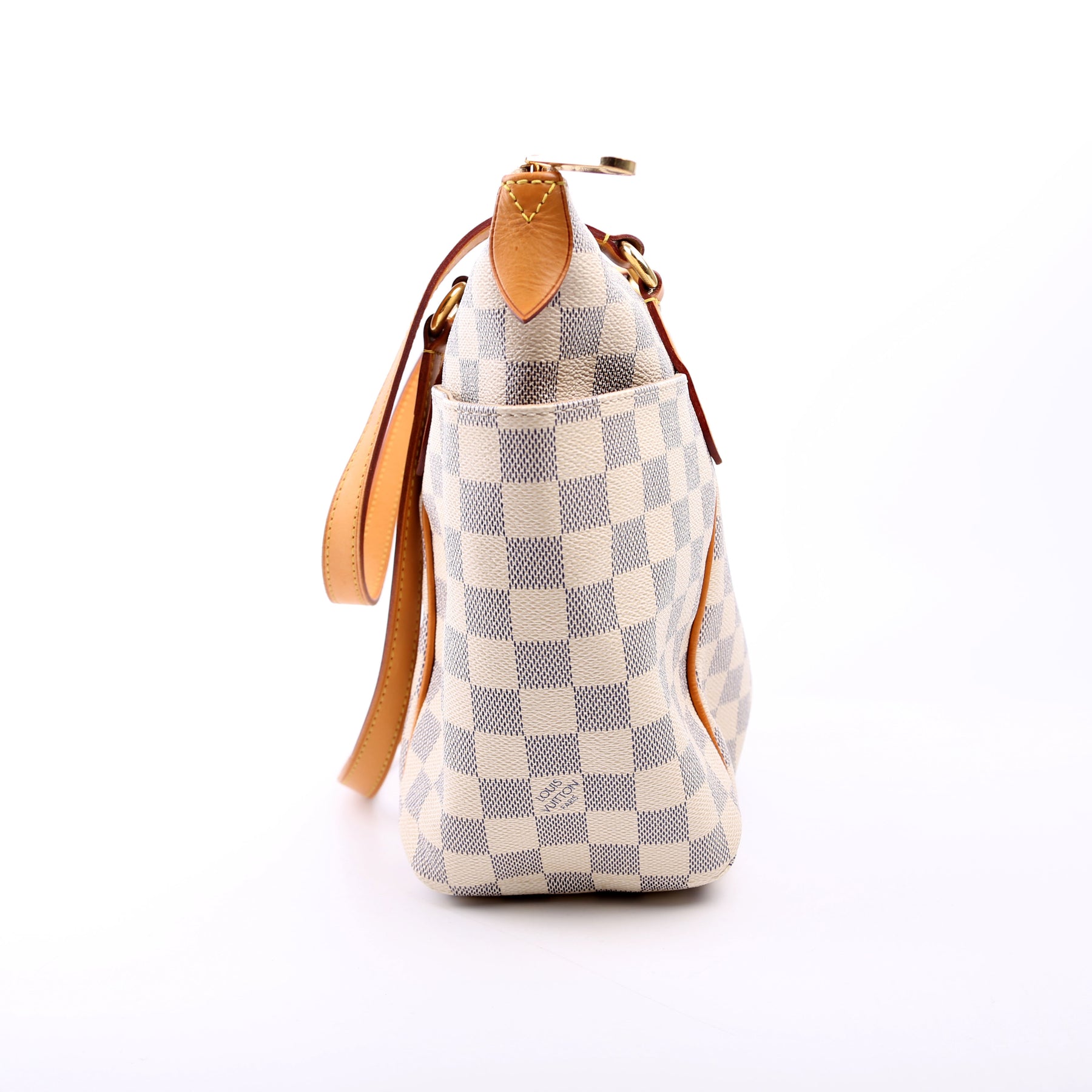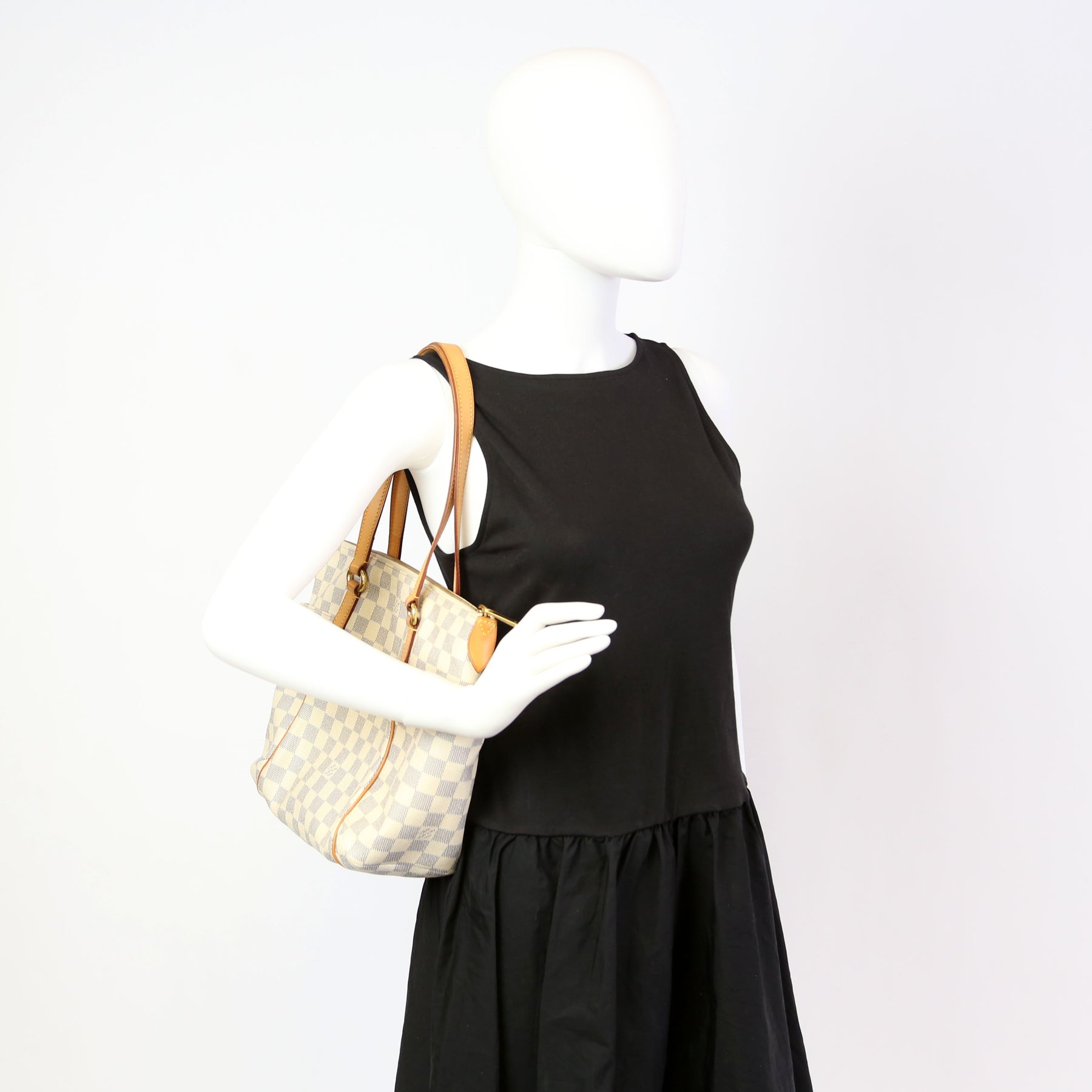 This pre-owned Louis Vuitton Totally PM is guaranteed 100% authentic. The exterior is in the classic Louis Vuitton Damier Azur coated canvas.