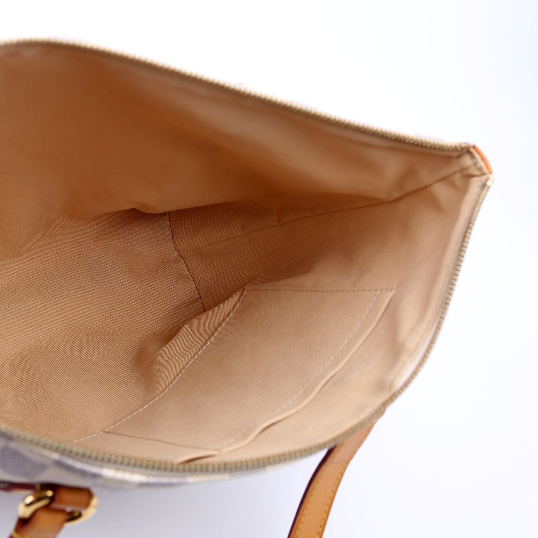 Hardware: The zipper closure operates properly. The hardware shows light wear.