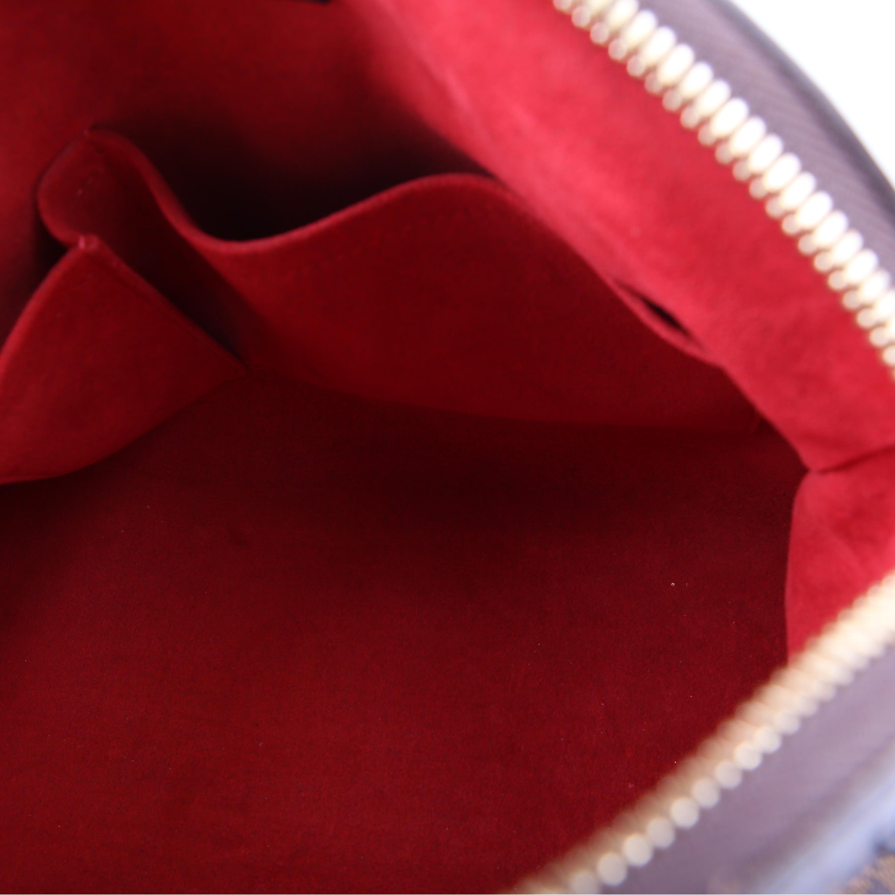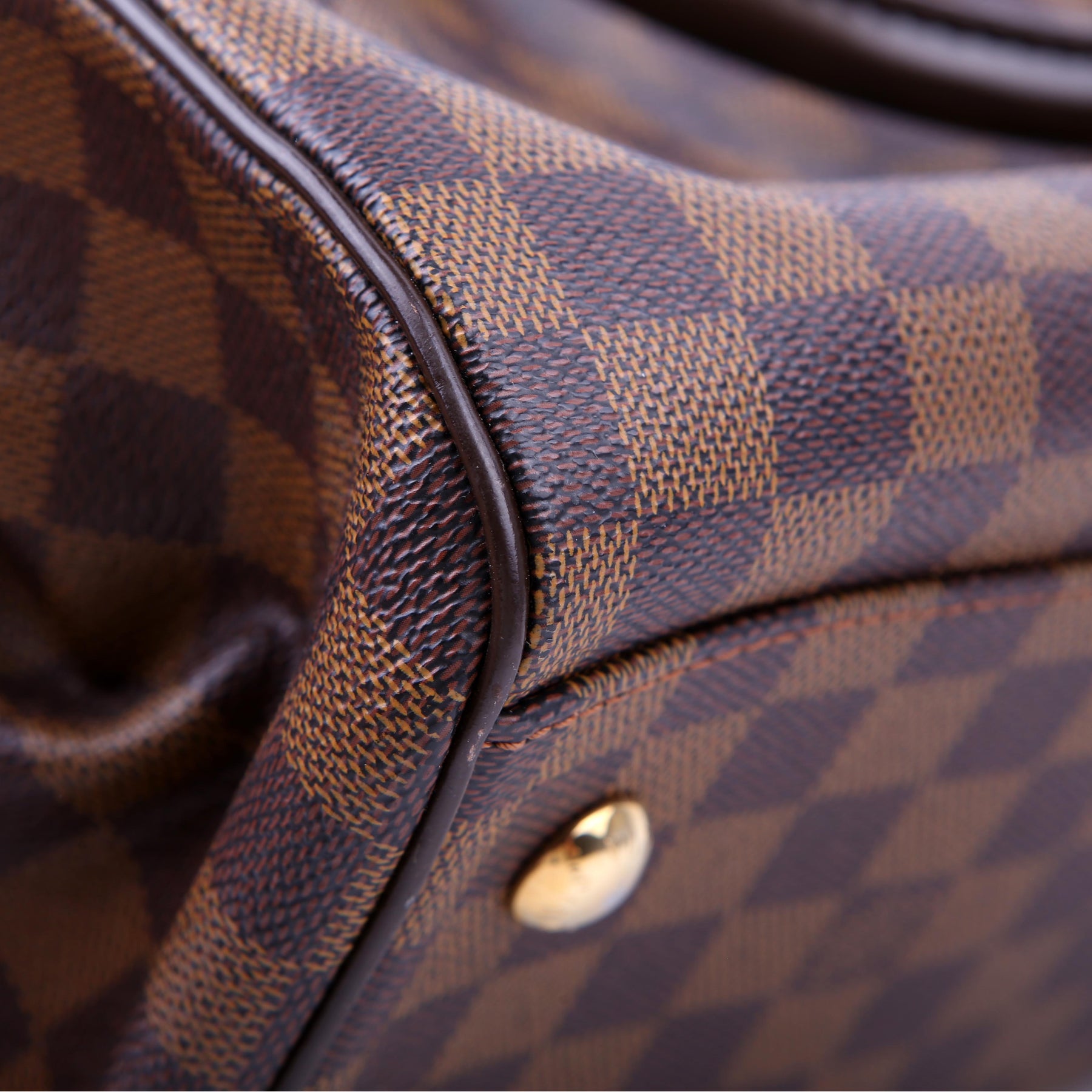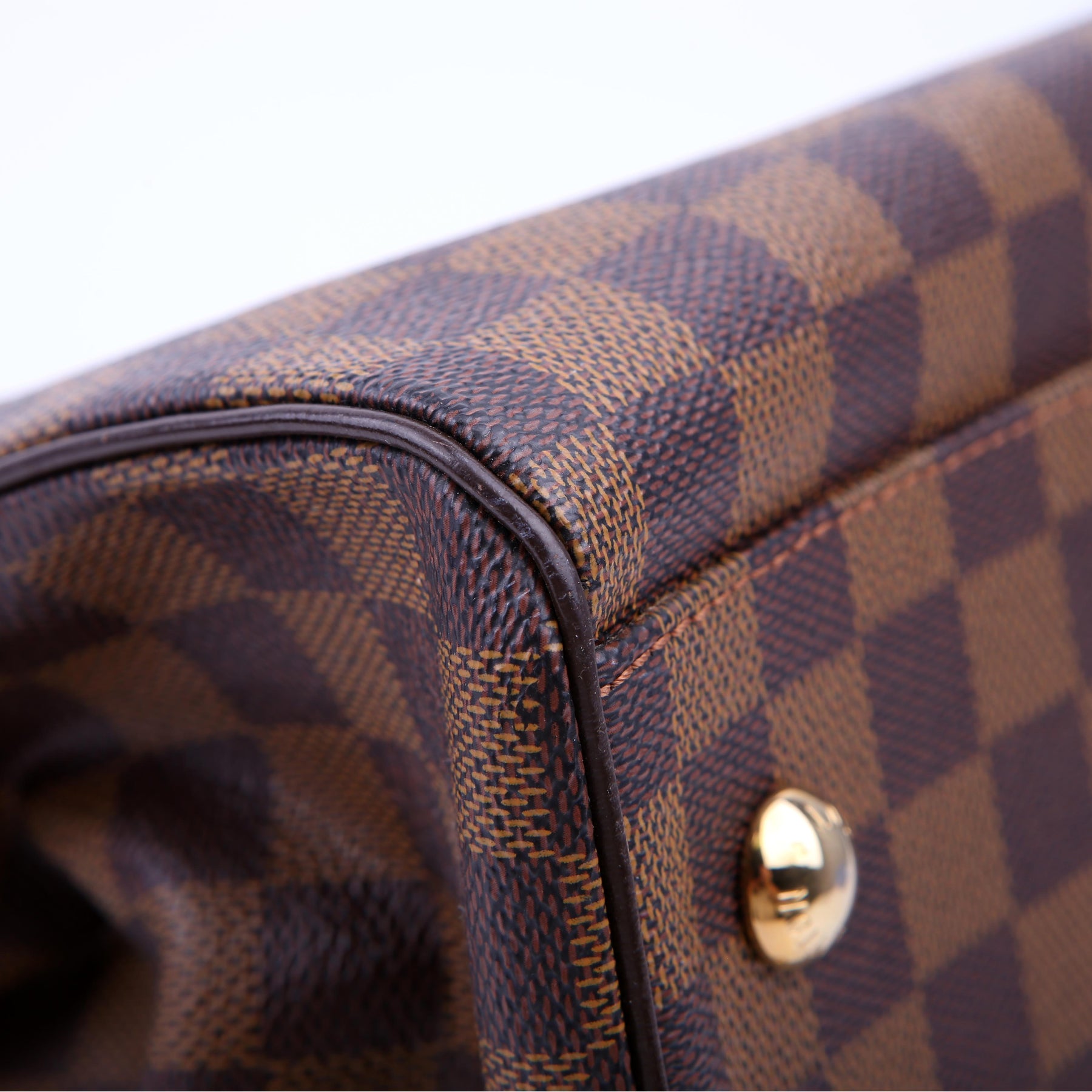 This pre-owned Louis Vuitton Trevi PM is guaranteed 100% authentic. The exterior is in the classic Damier Ebene canvas.