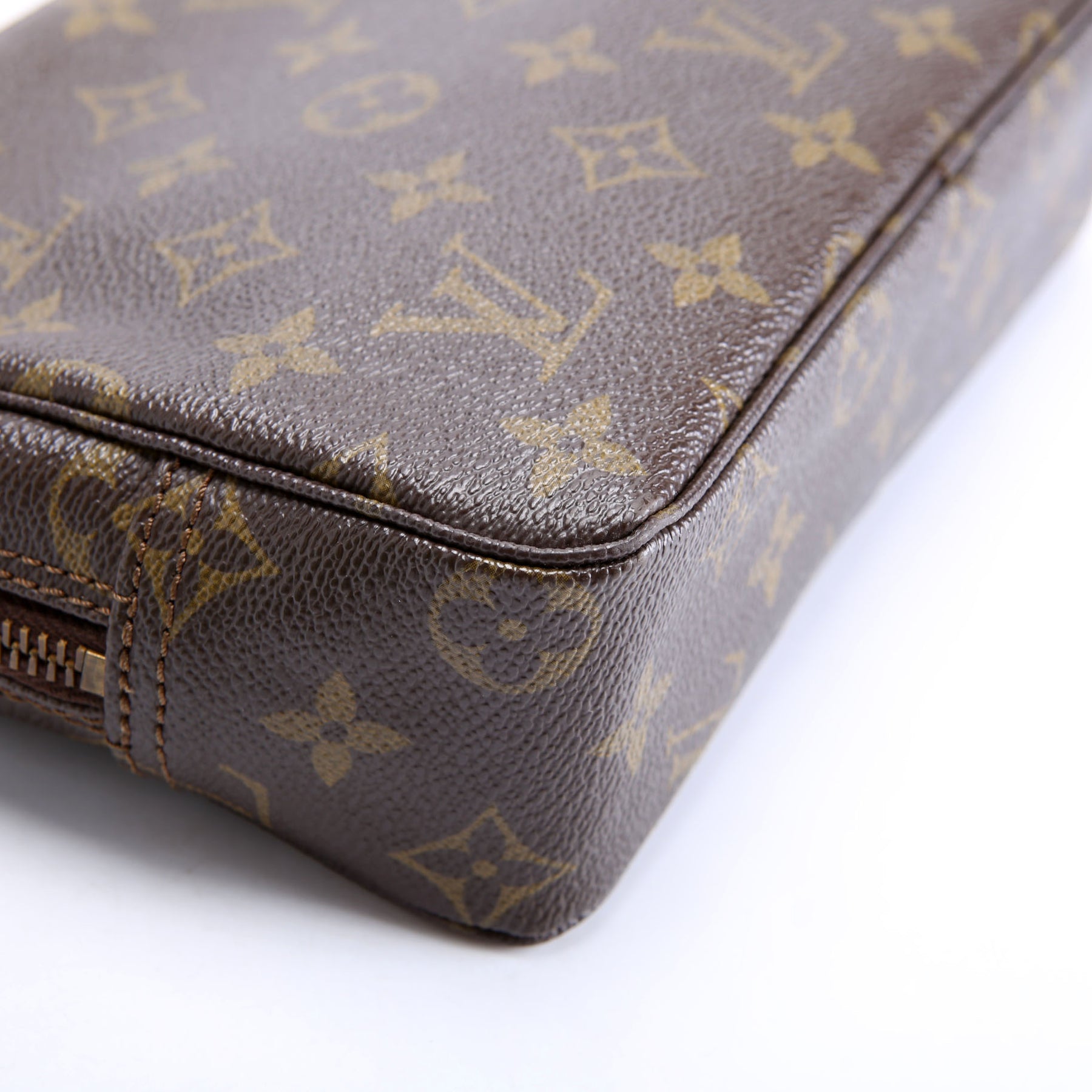 This pre-owned Louis Vuitton Trousse Toilette 23 guaranteed 100% authentic. The exterior is in the classic Louis Vuitton Monogram coated canvas.
