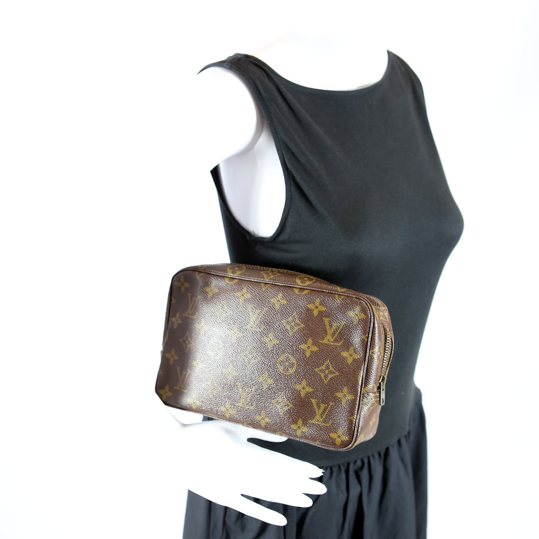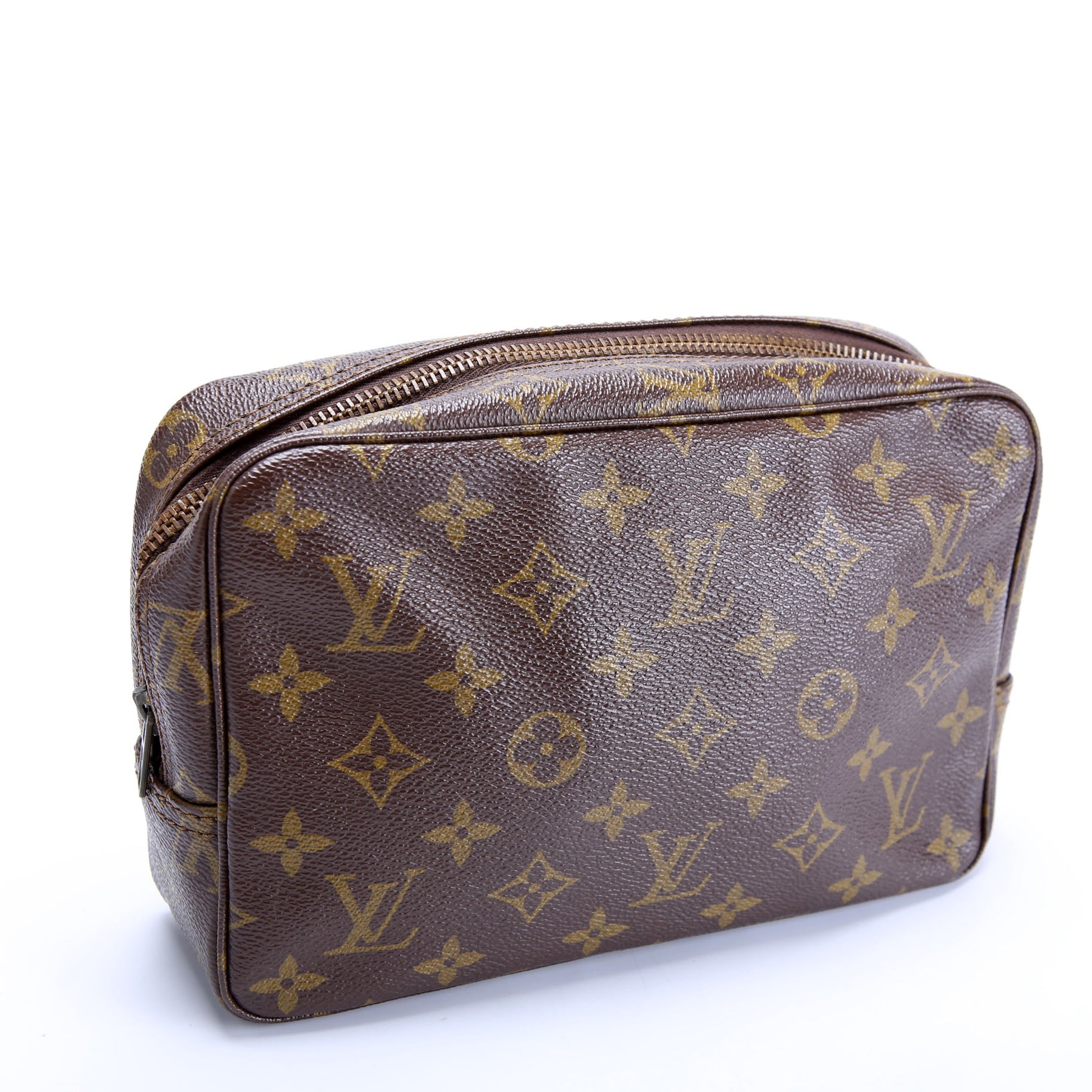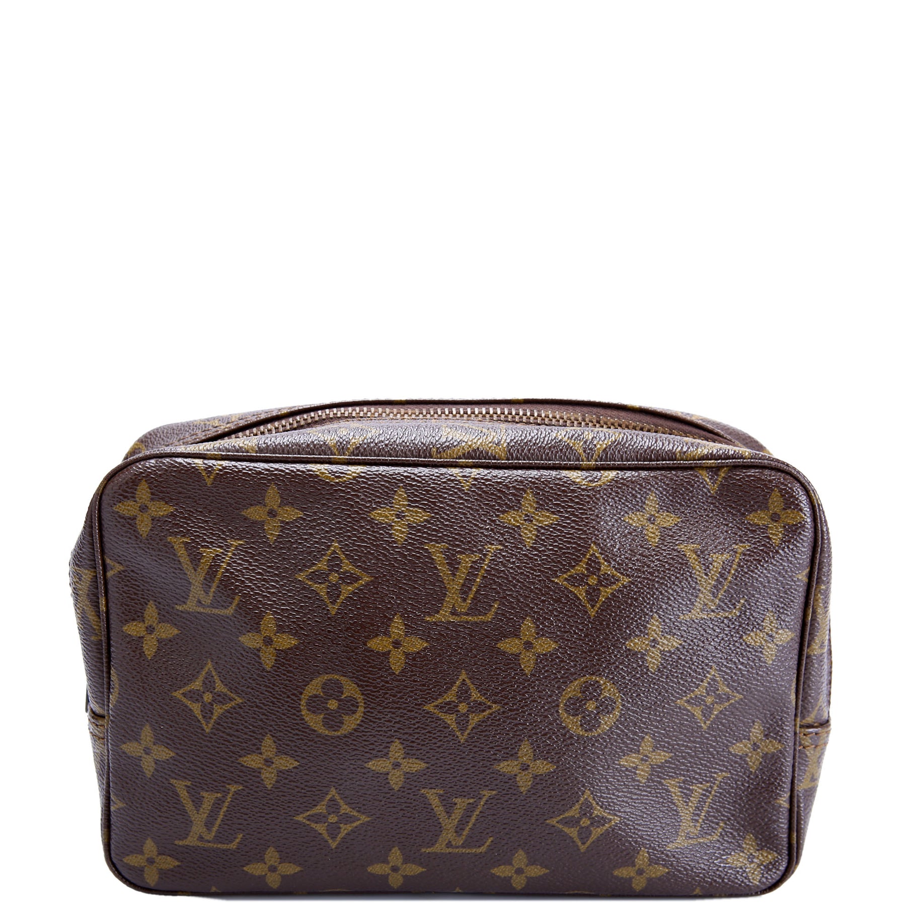 This pre-owned Louis Vuitton Trousse Toilette 23 guaranteed 100% authentic. The exterior is in the classic Louis Vuitton Monogram coated canvas.