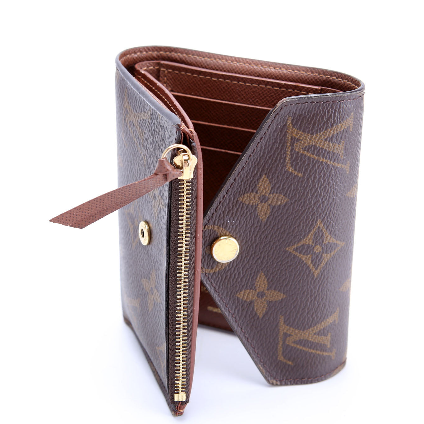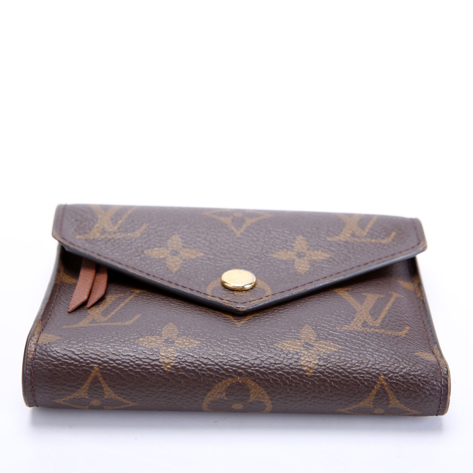 This pre-owned Louis Vuitton Victorine Wallet is guaranteed 100% authentic. The exterior is in the classic Louis Vuitton Monogram coated canvas.