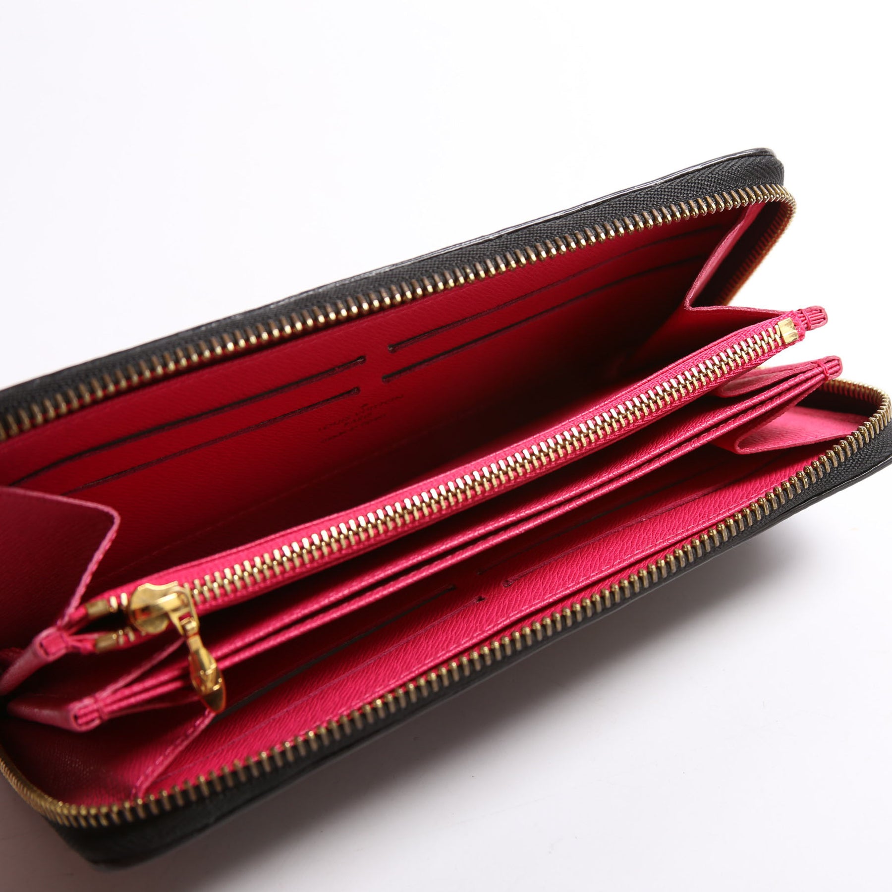 Interior: The interior is free of major wear and features three bill slots, eight card slots, and one zip closure coin pouch.