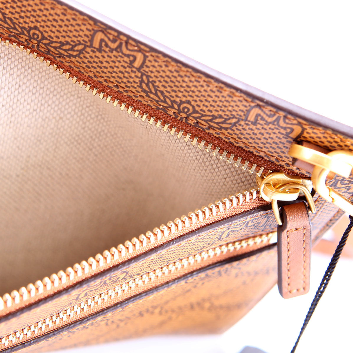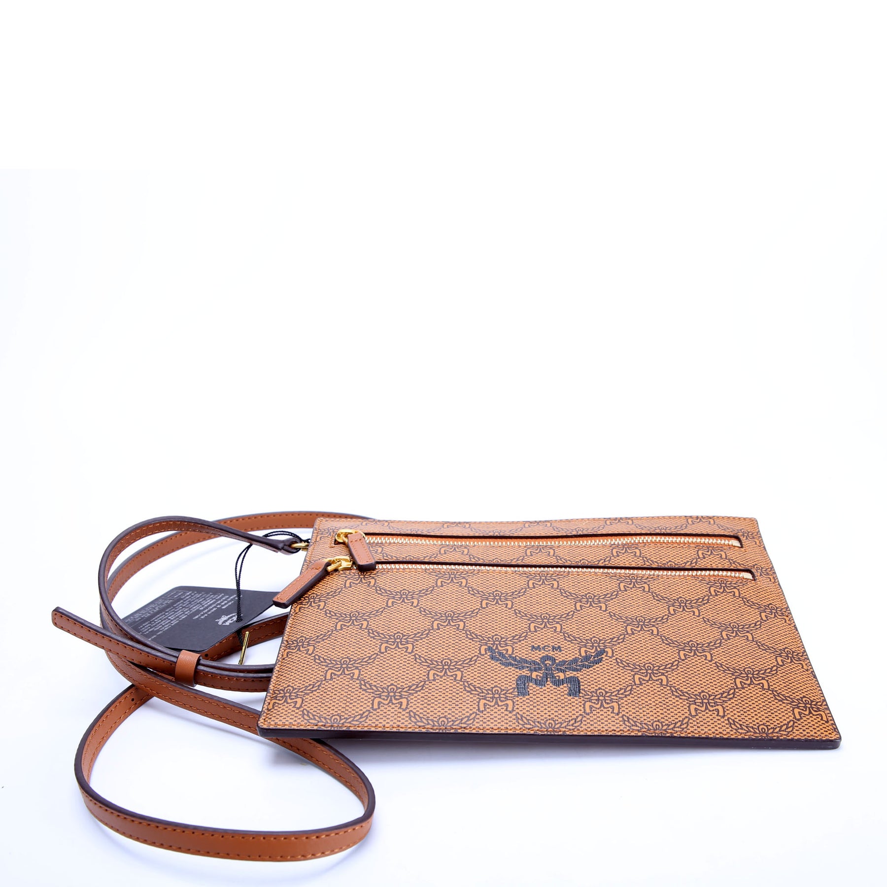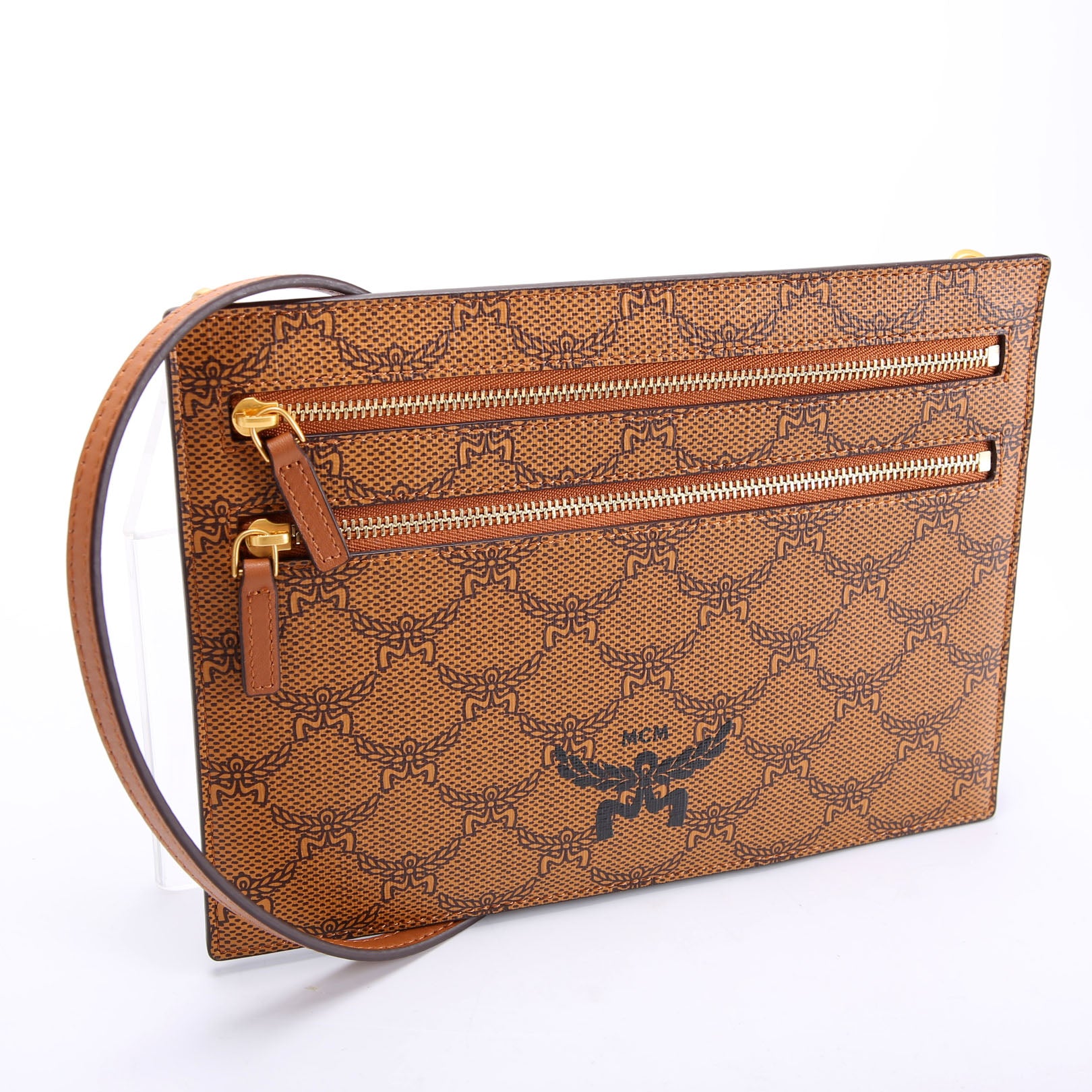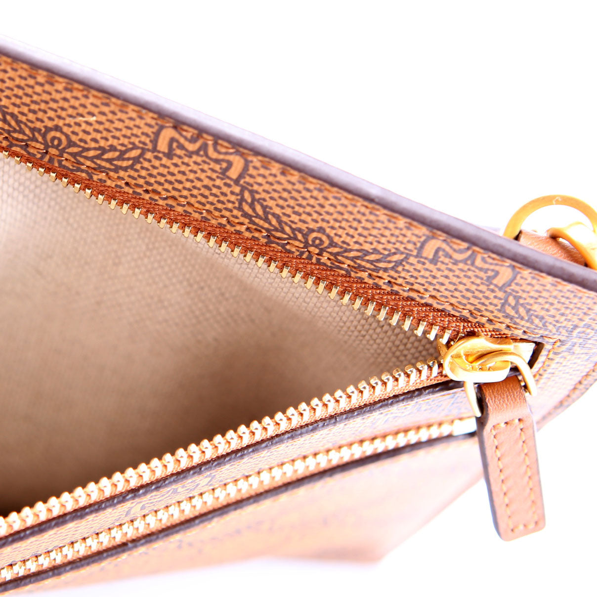 This pre-owned MCM Himmel Crossbody Pouch is guaranteed 100% authentic. The exterior is in the classic MCM Himmel Coated Canvas.