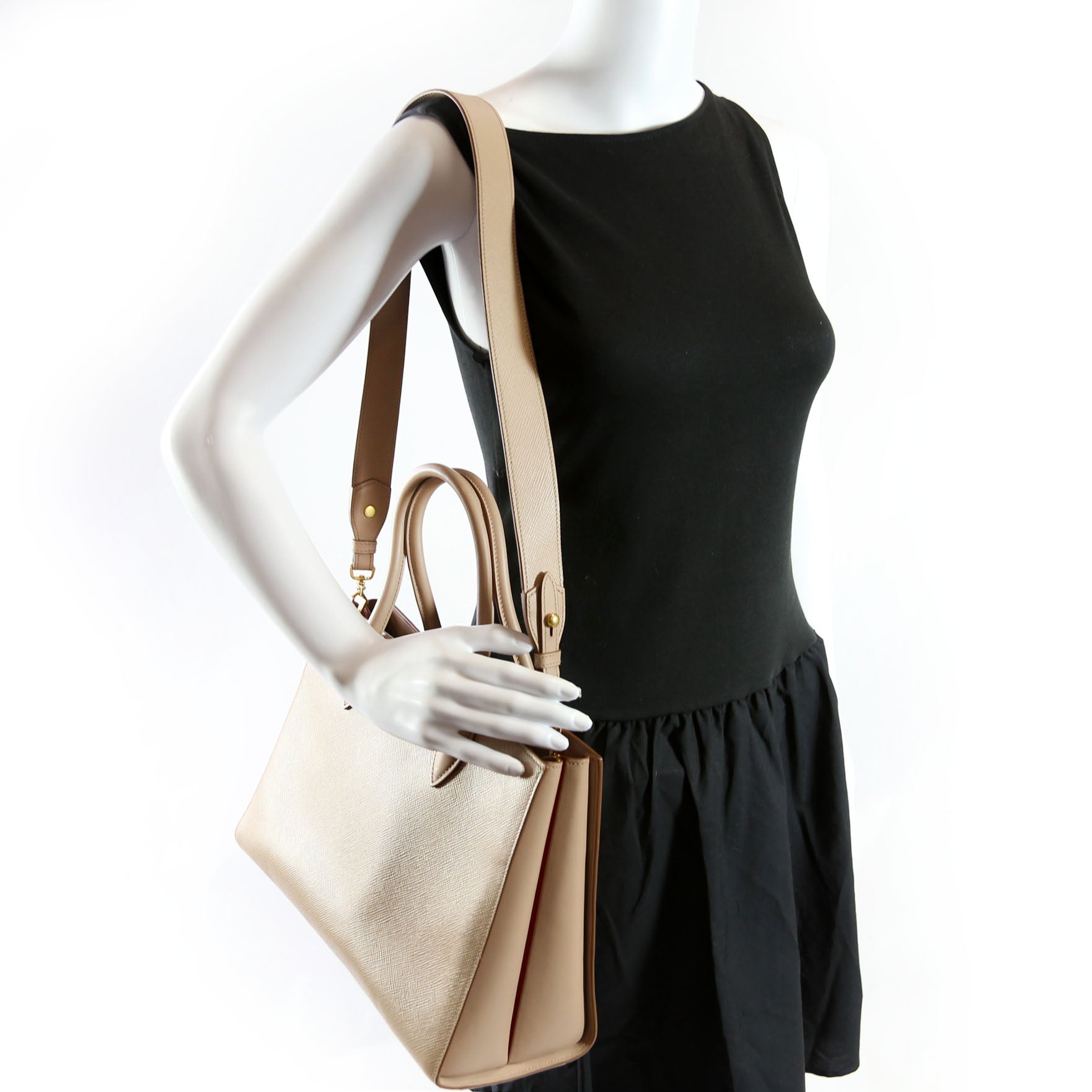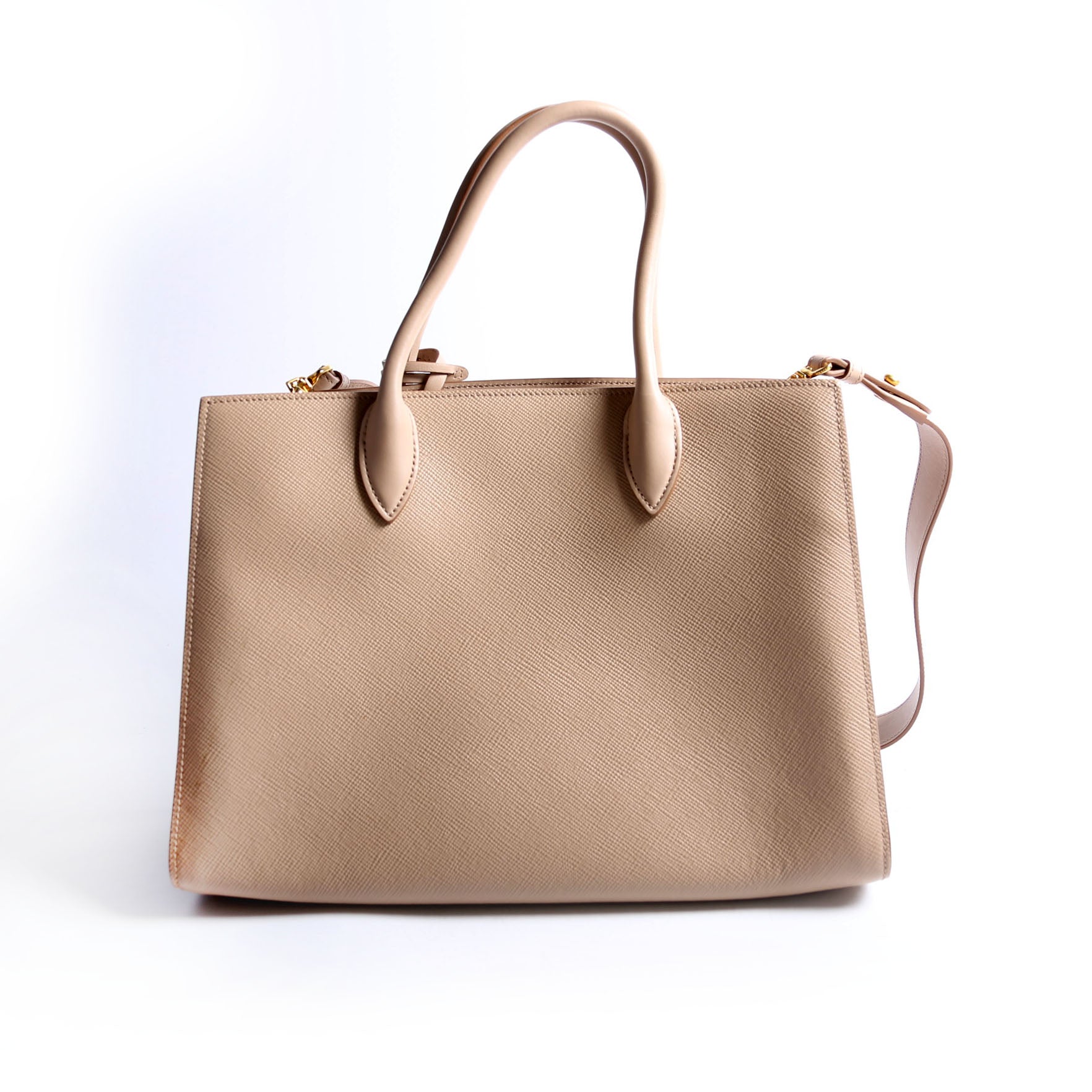 This pre-owned Prada Saffiano Large Tote is guaranteed 100% authentic. The exterior is in the classic Prada Saffiano Ciur Leather.