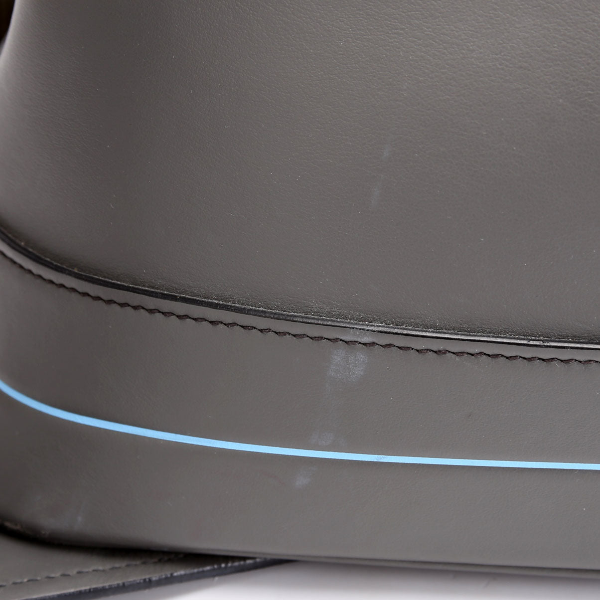 Interior: The interior leather has minor scuffs. It features two zipper pockets and one opening pocket.