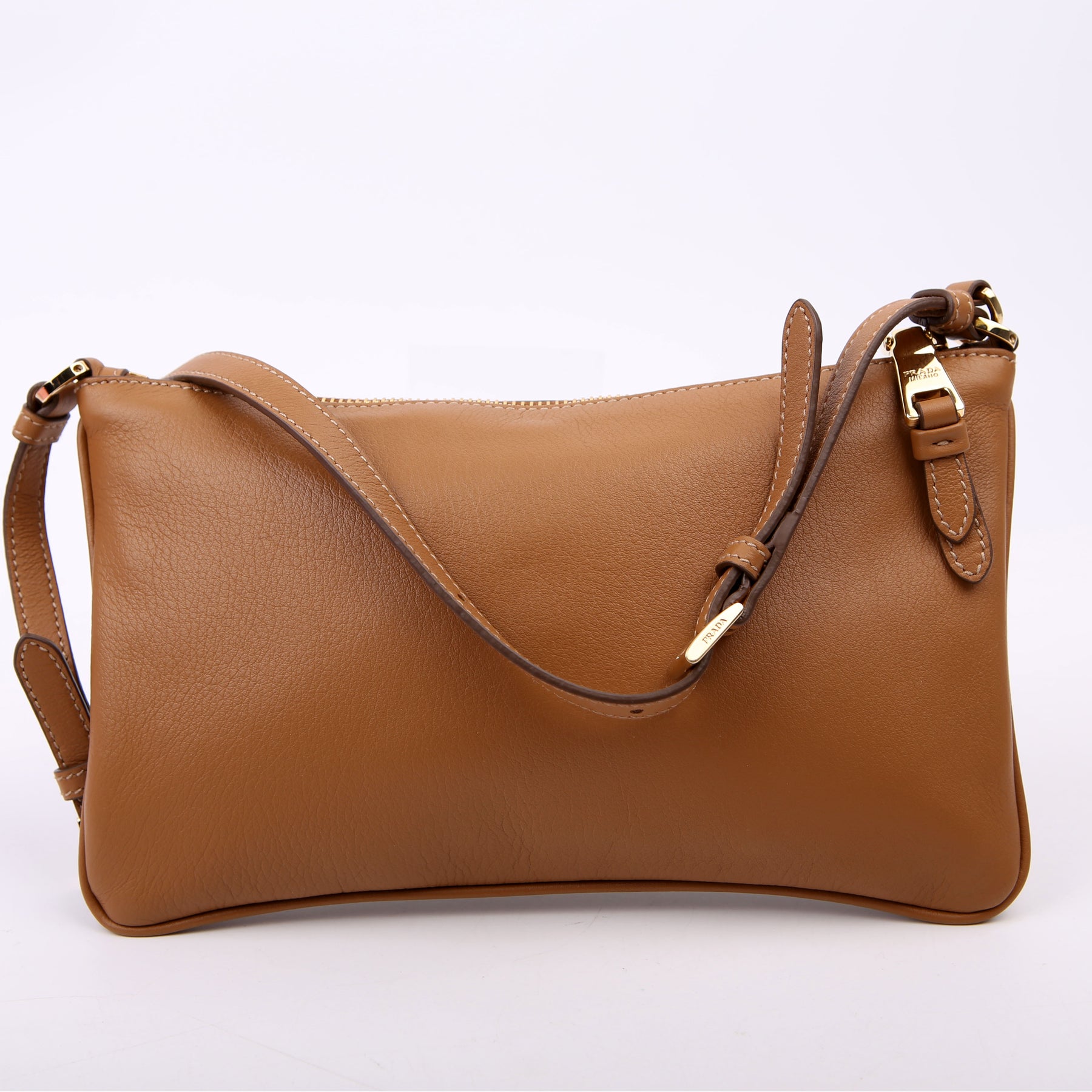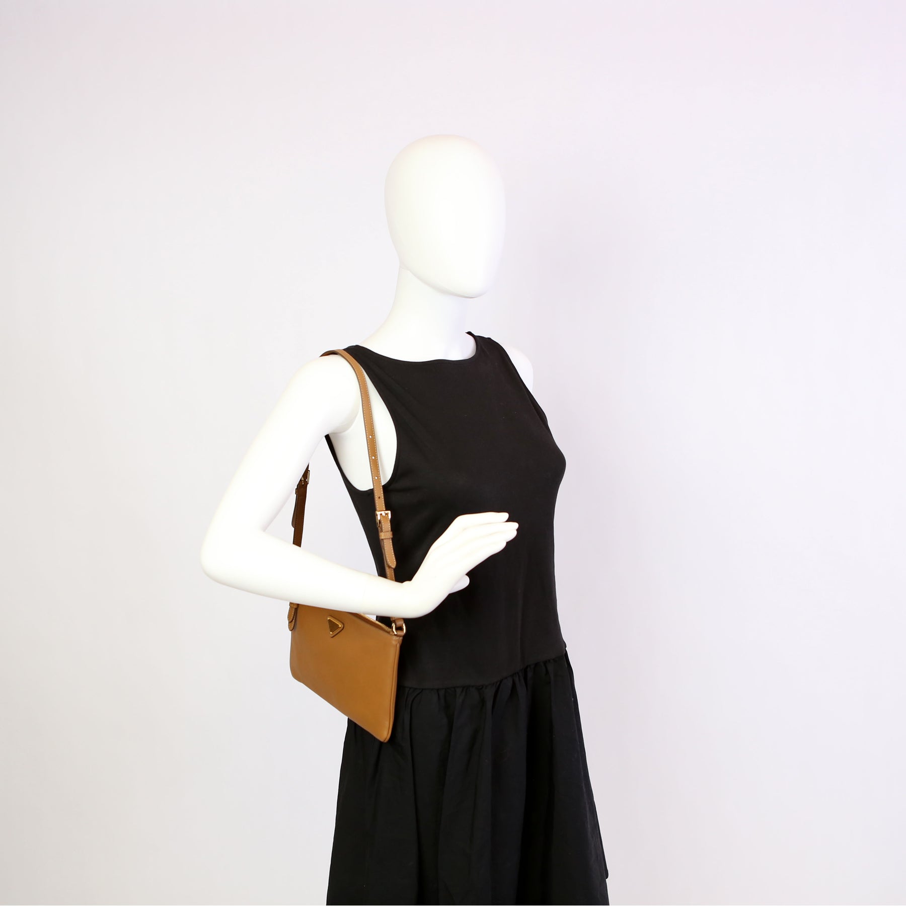 1BC238 Triangle Logo Calfskin Pouch On Strap Brown