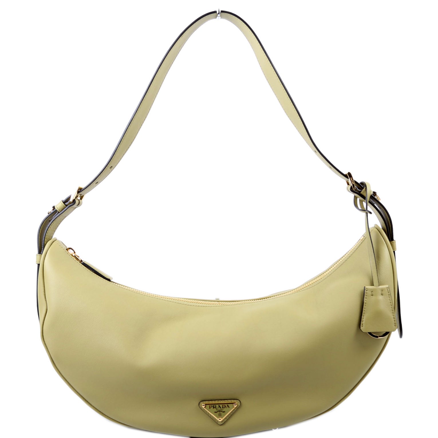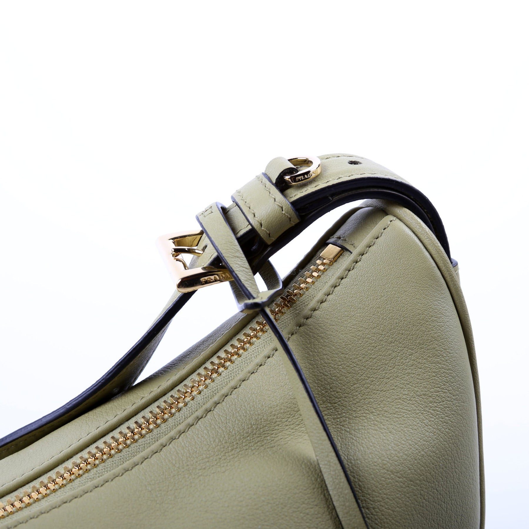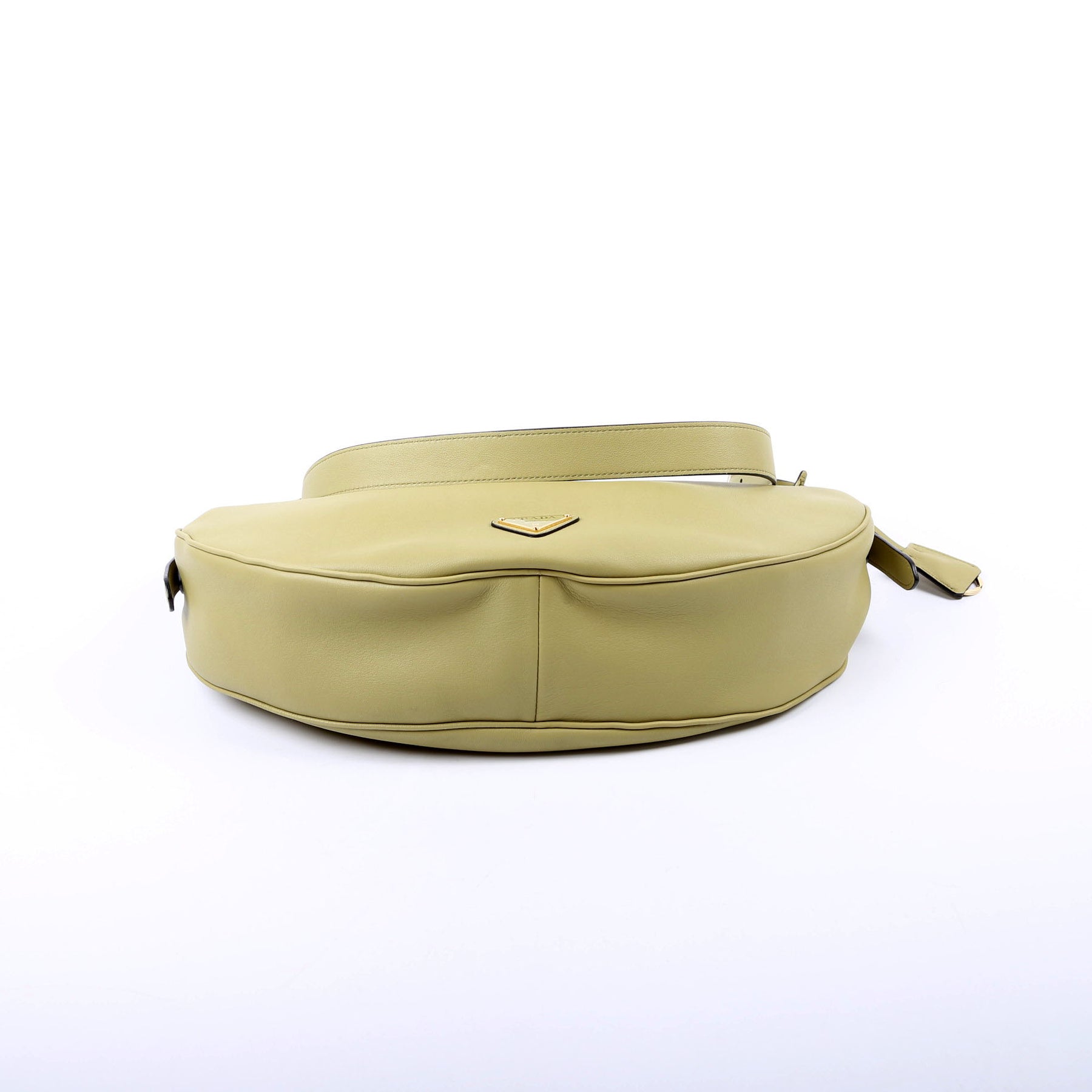 This pre-owned Prada Demi-Lune Calfskin Shoulder Bag is guaranteed 100% authentic.