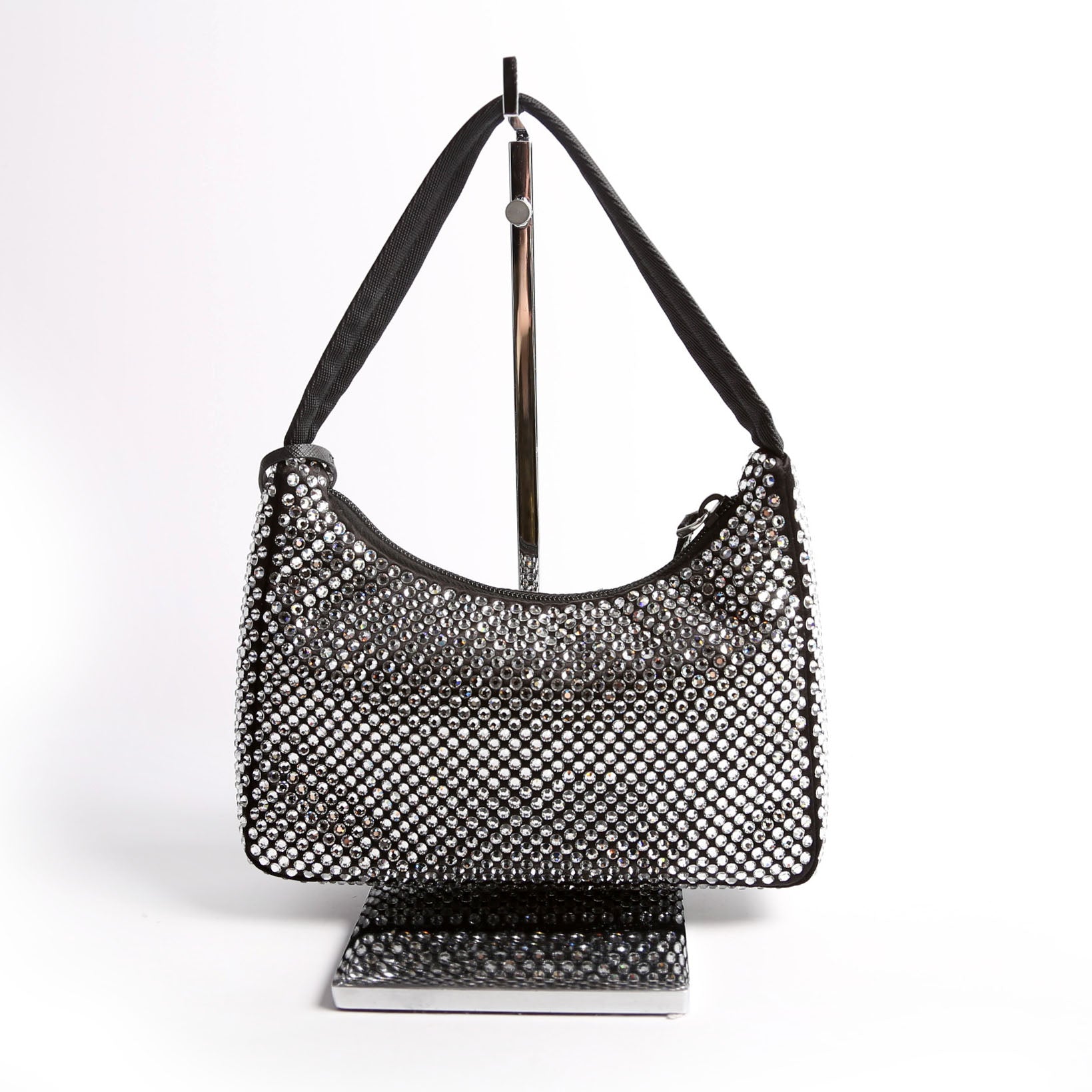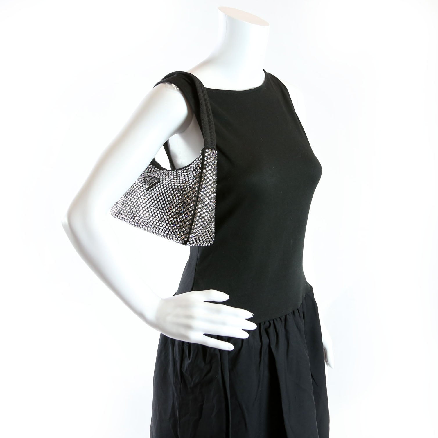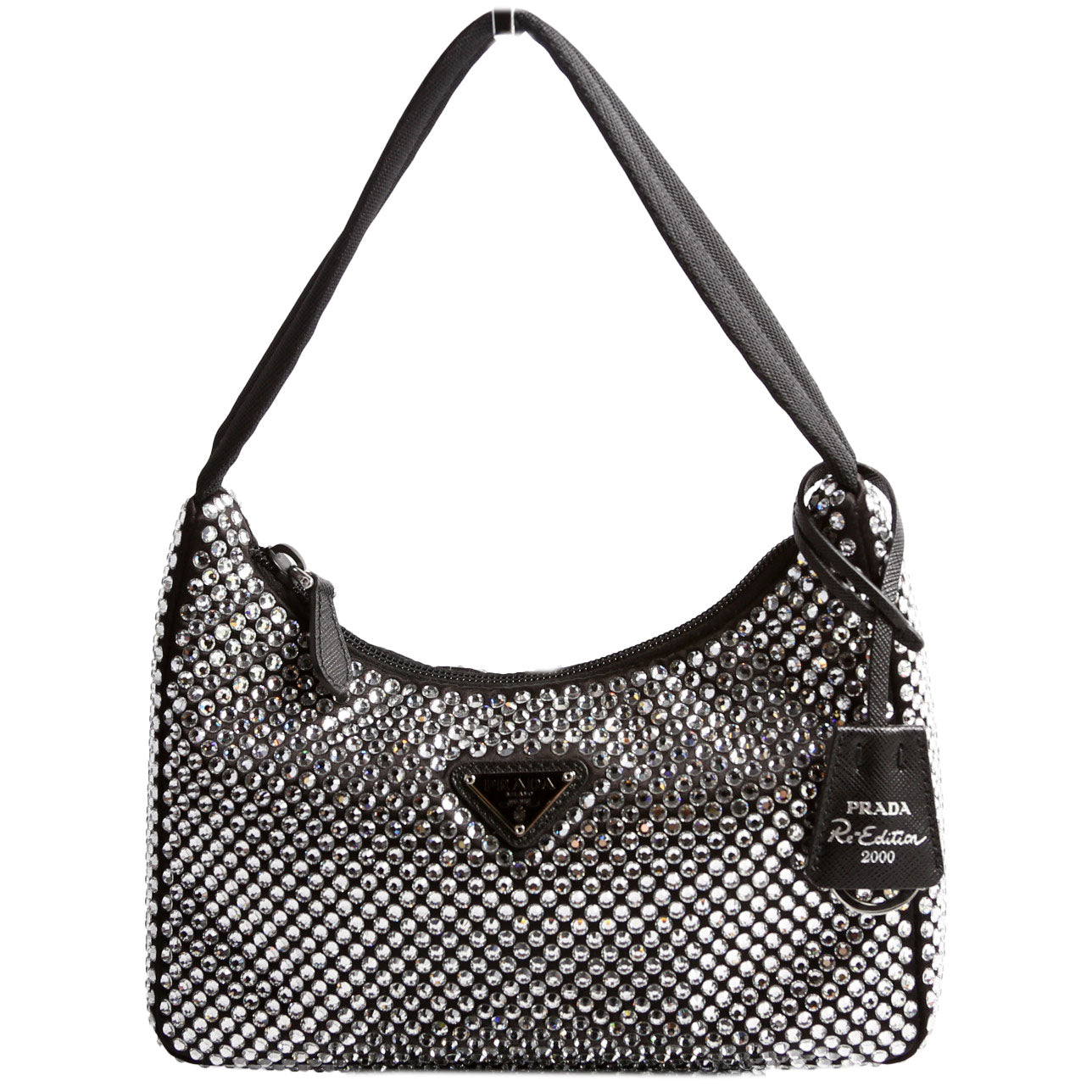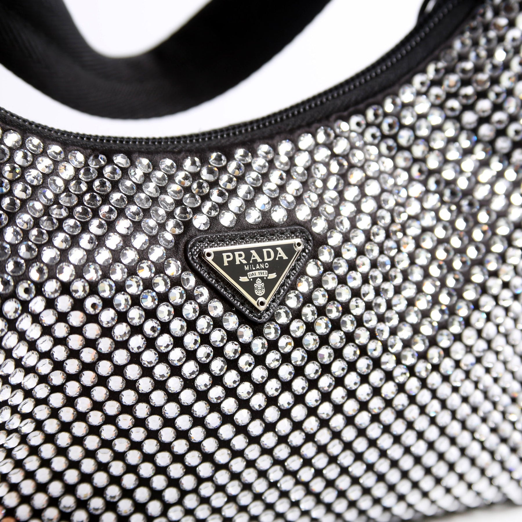 This pre-owned Prada Nylon Re-Edition 2000 Mini is guaranteed 100% authentic. The exterior is in the classic Prada Satin and Crystals.
