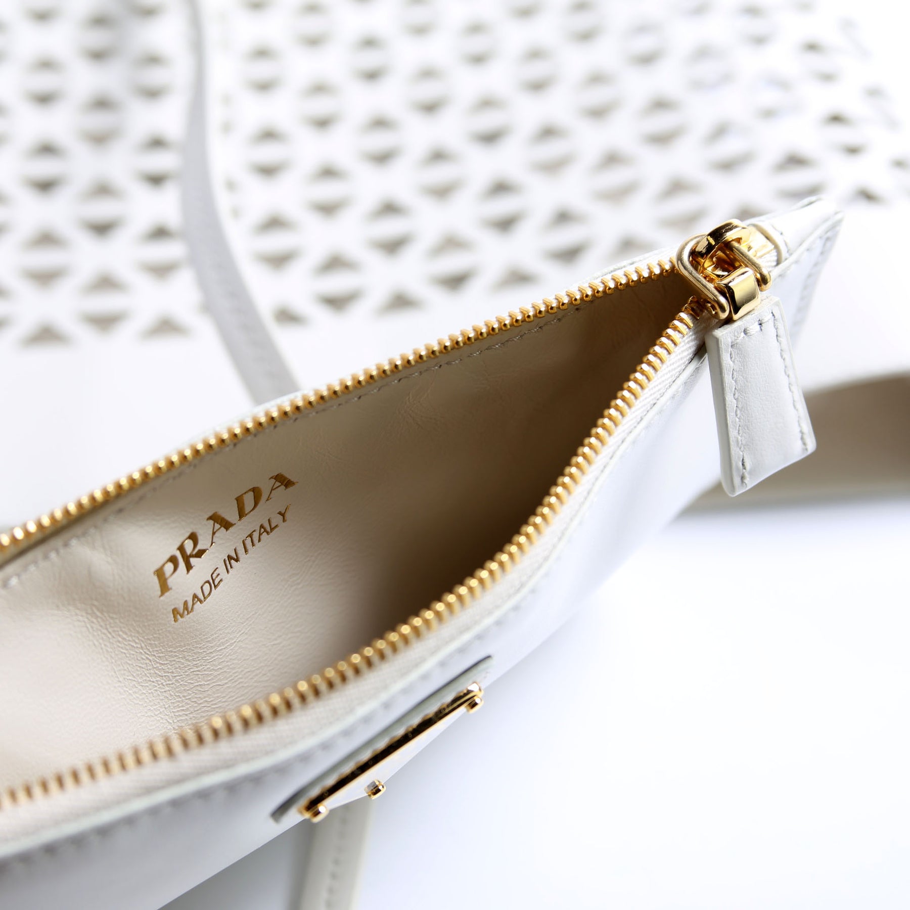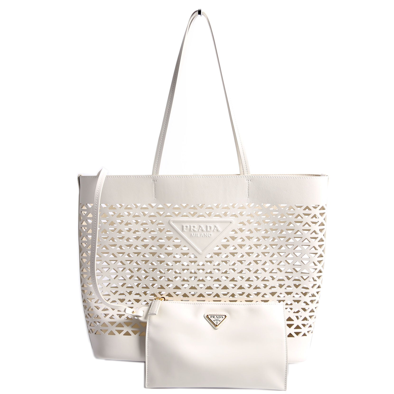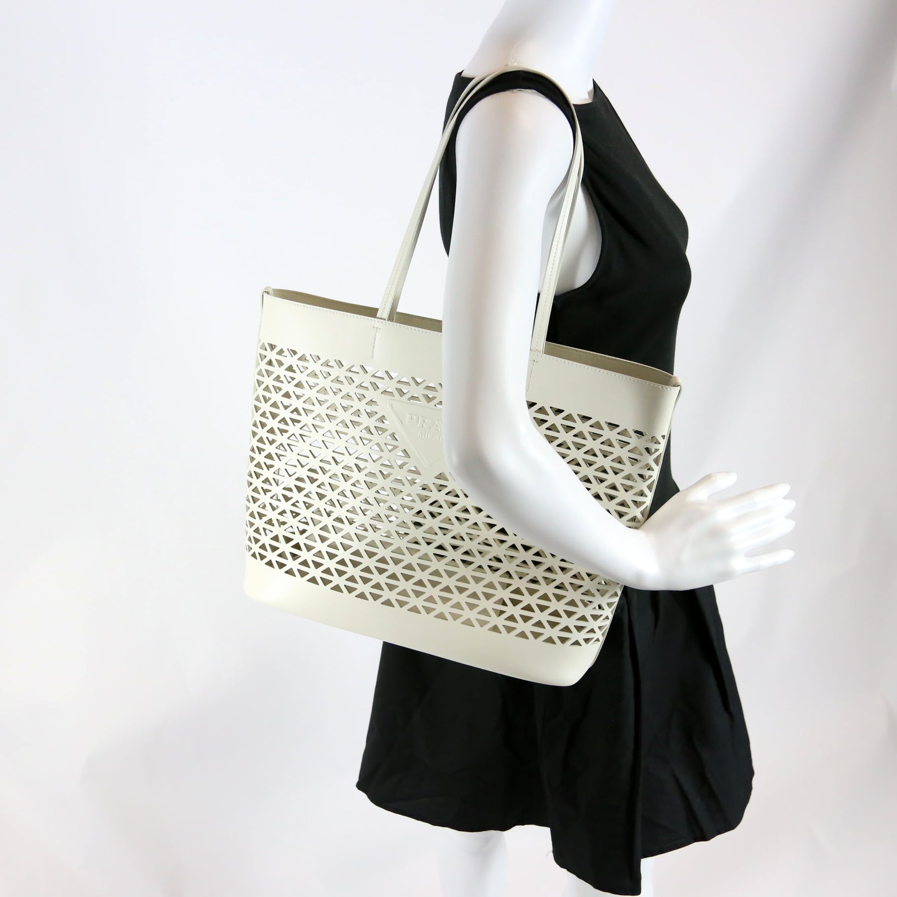 This pre-owned Prada Cutout Tote Bag is guaranteed 100% authentic.