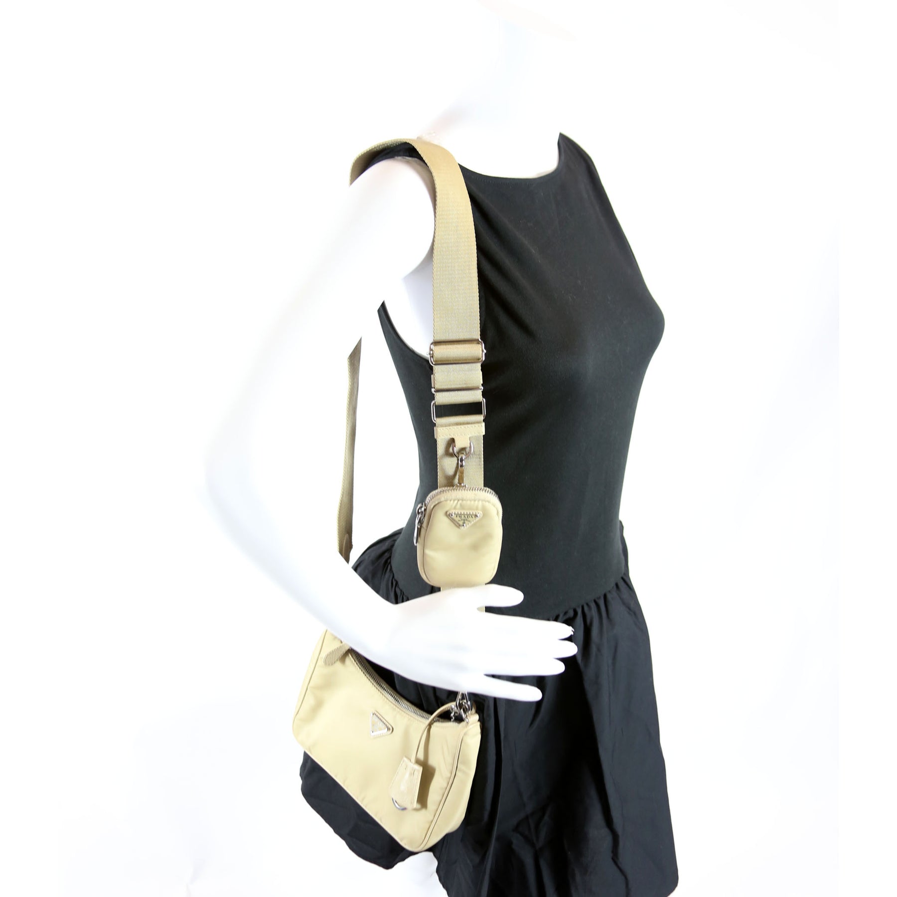 1BH204 Nylon Re-Edition 2005 Shoulder Bag Sand