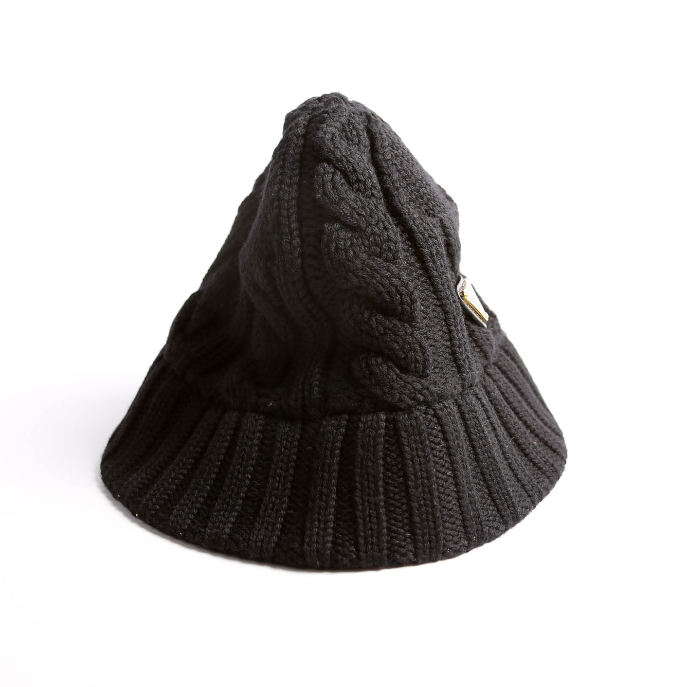 This pre-owned Prada Wool Cable Knit Triangle Logo Hat is guaranteed 100% authentic.