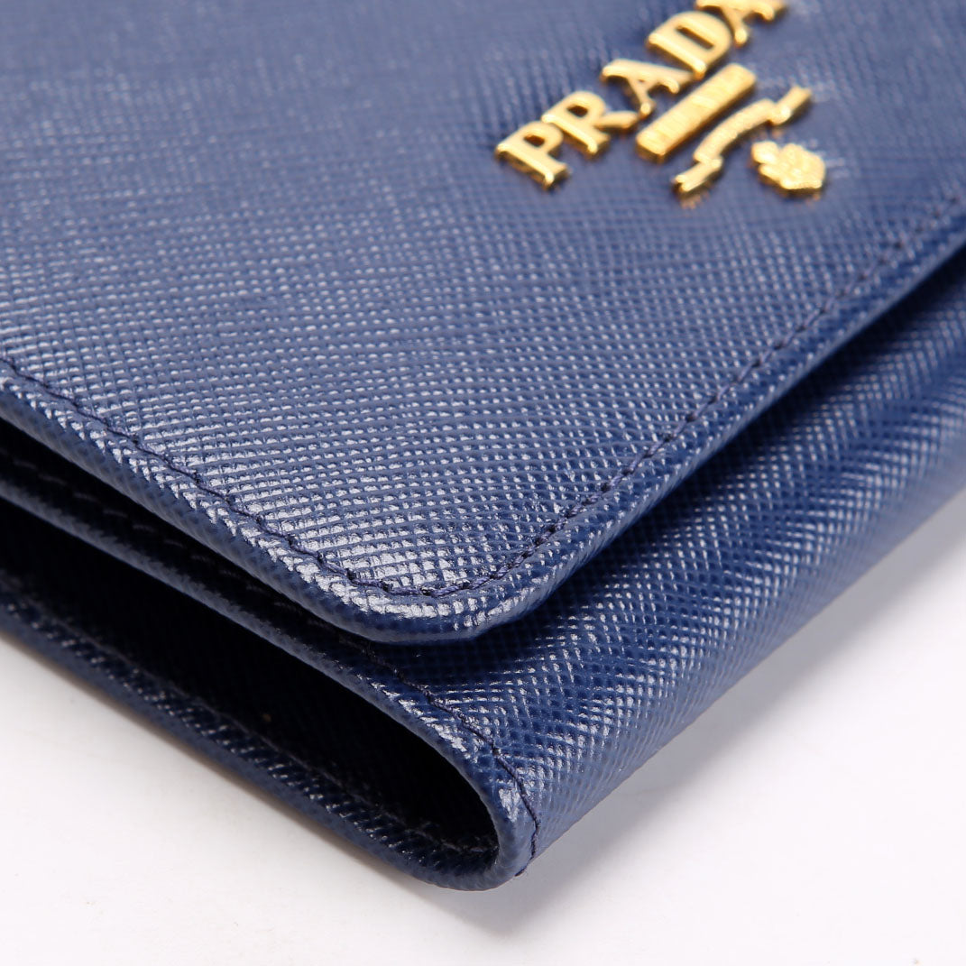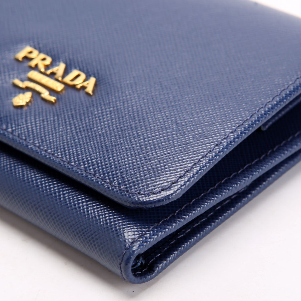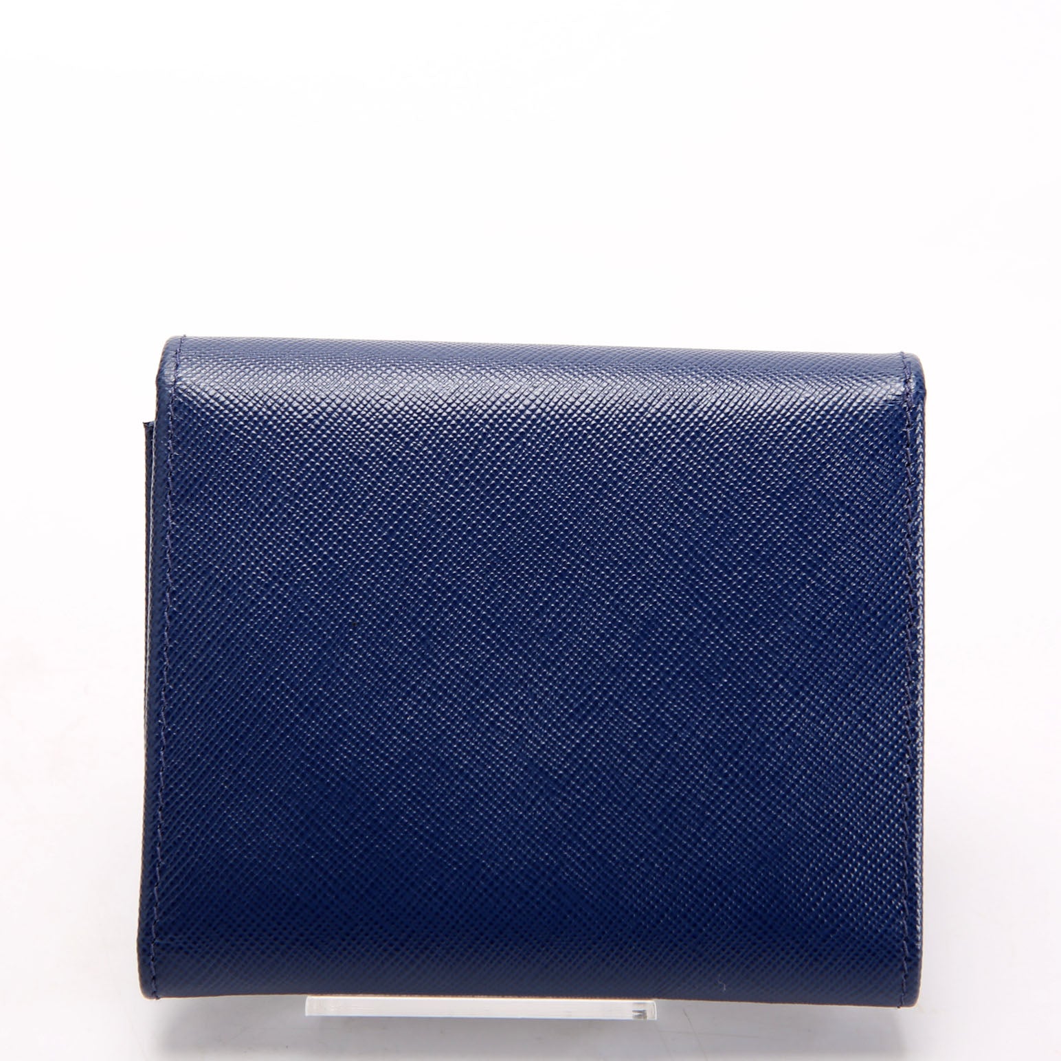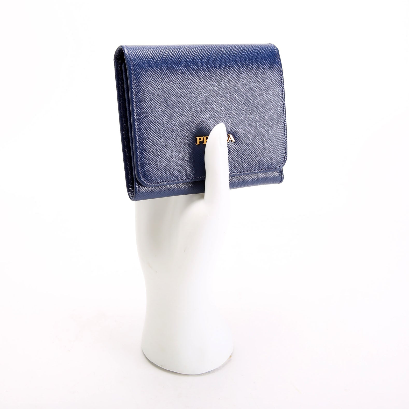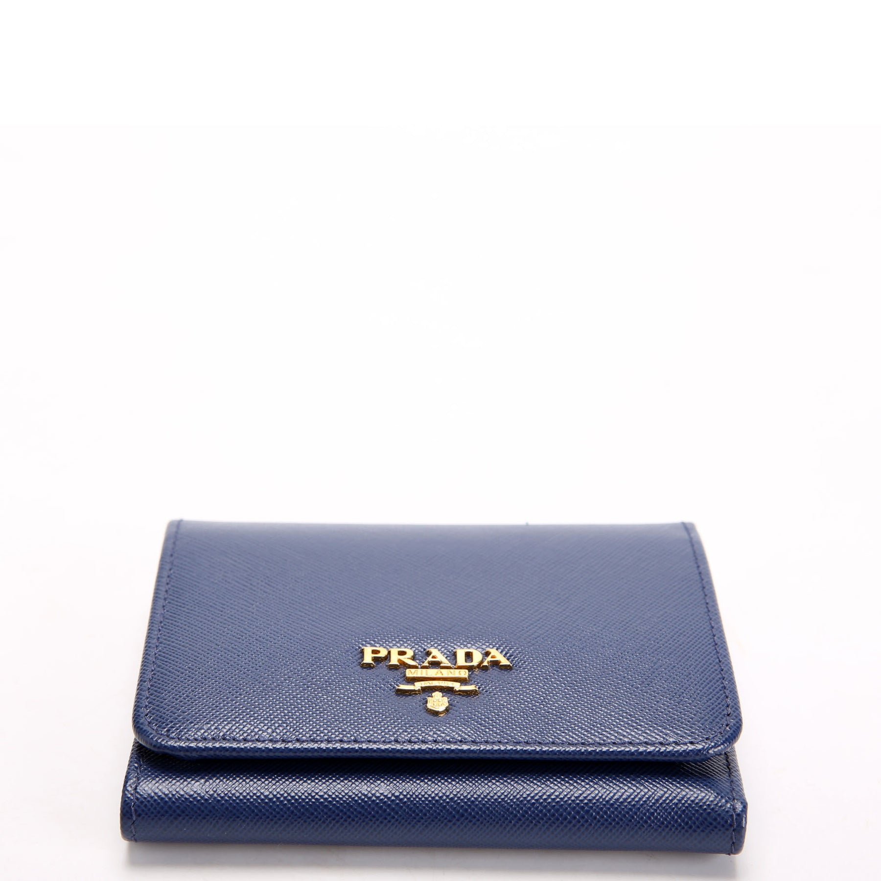 This pre-owned Prada Compact Wallet is guaranteed 100% authentic. The exterior is in the classic Saffiano leather.