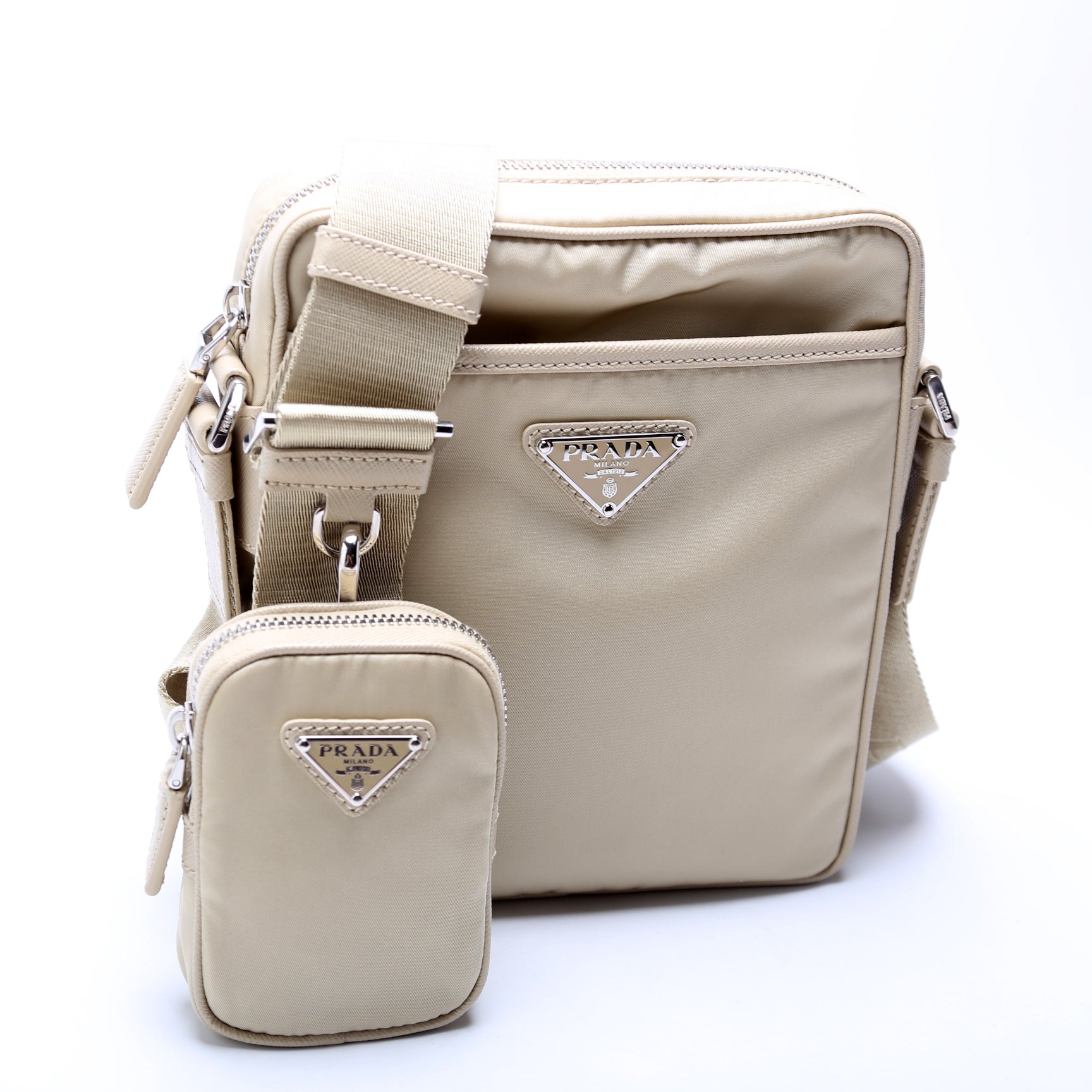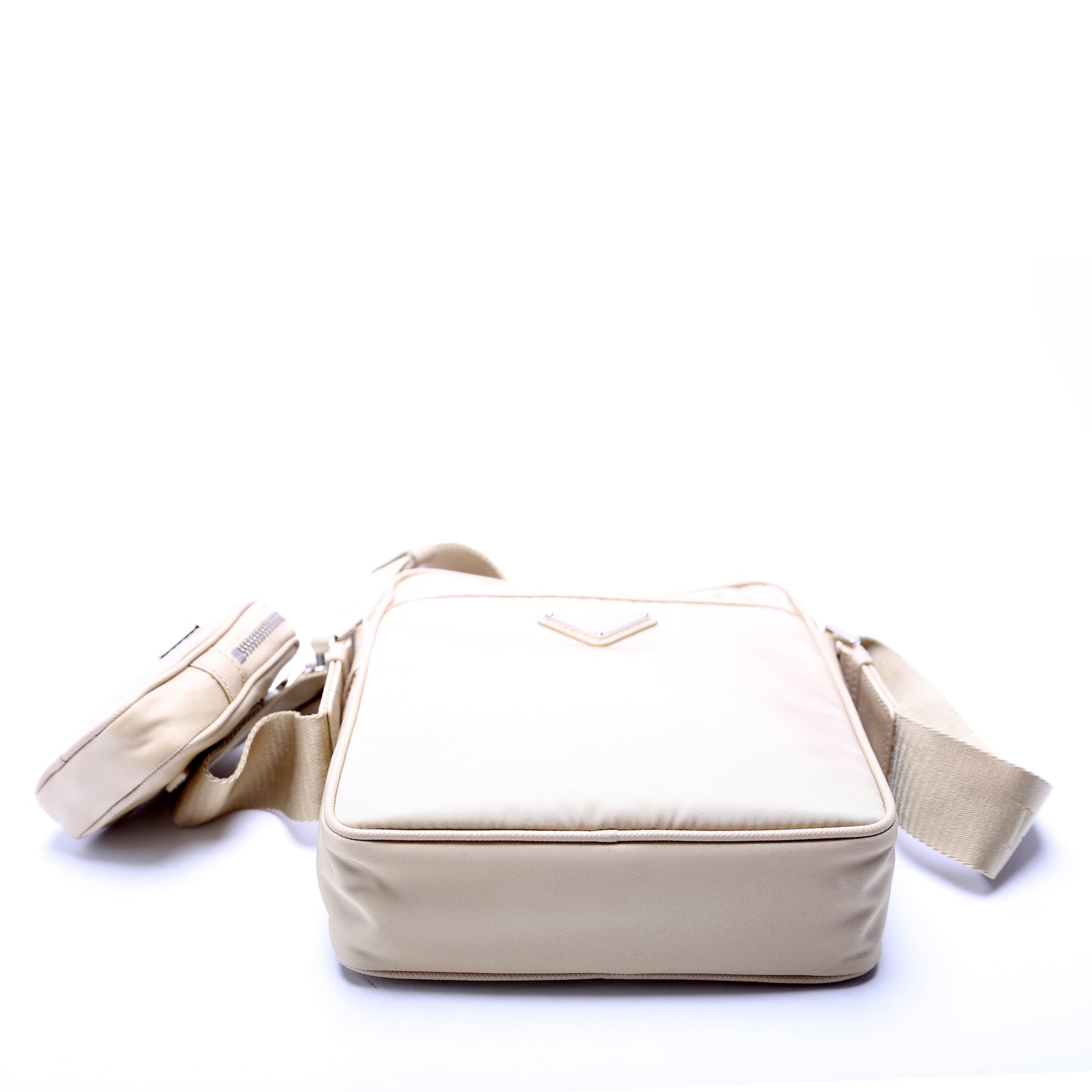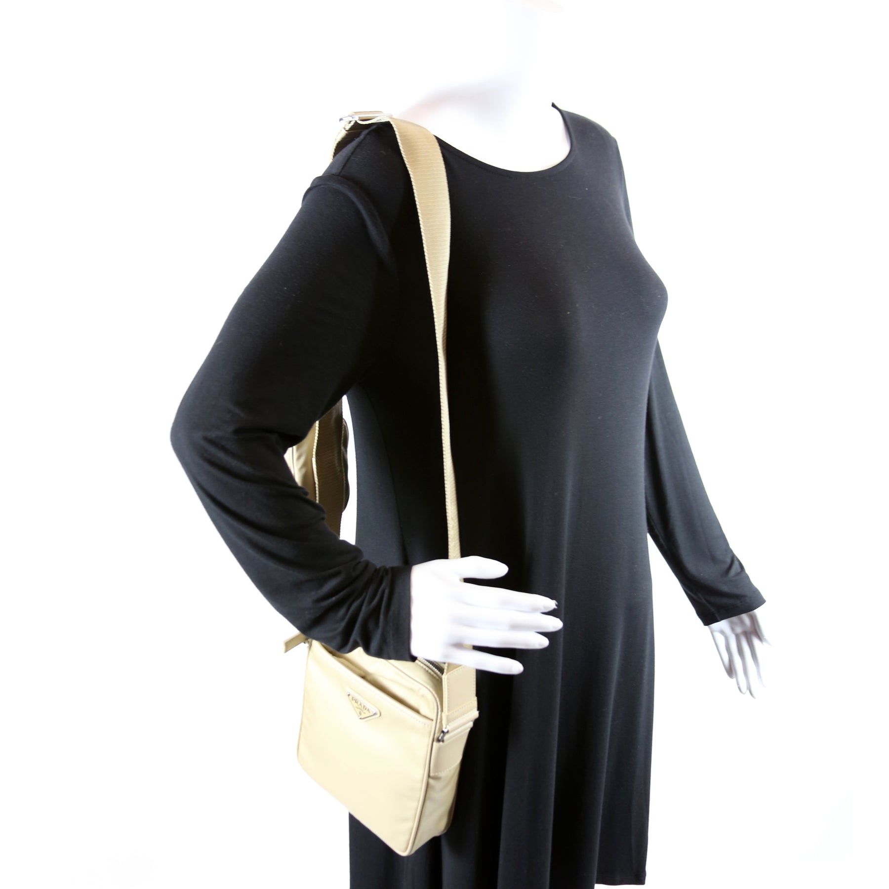 This pre-owned Prada Nylon/Saffiano Re-Edition 2005 Mini Shoulder is guaranteed 100% authentic. The exterior is in the classic Prada Nylon