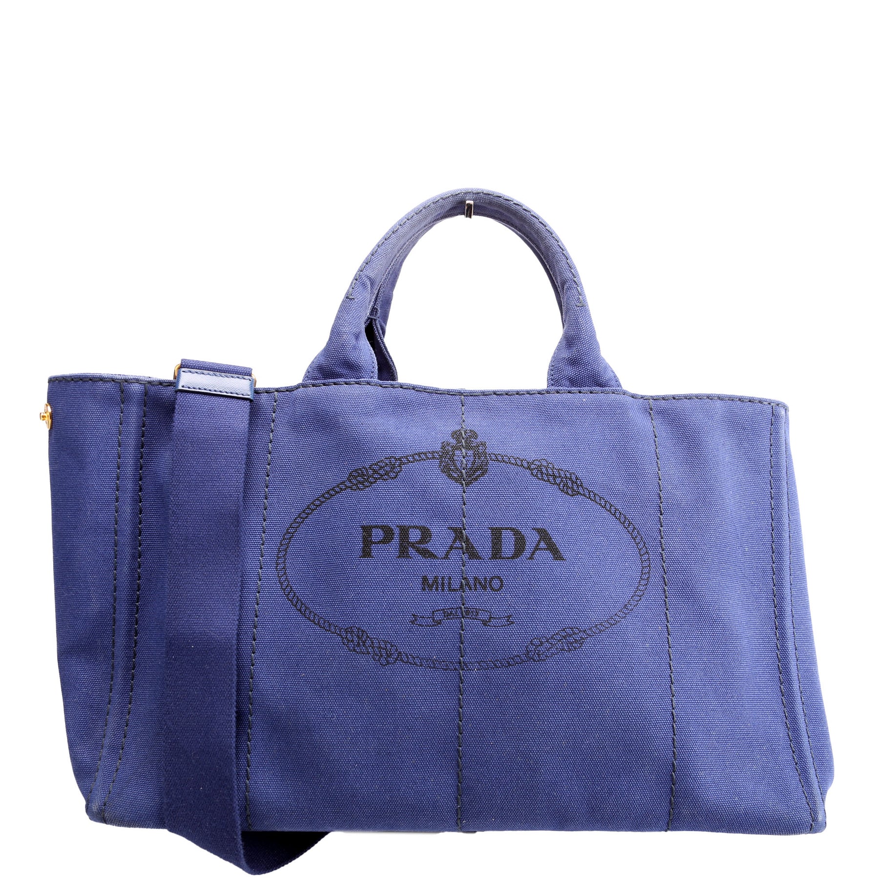 This pre-owned Prada Canapa Denim Canvas Large Tote is guaranteed 100% authentic.