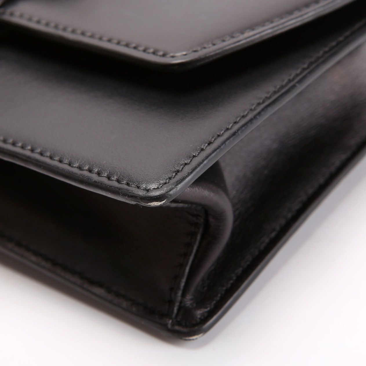 Hardware: The clasp operates properly. The hardware shows scuffs throughout.