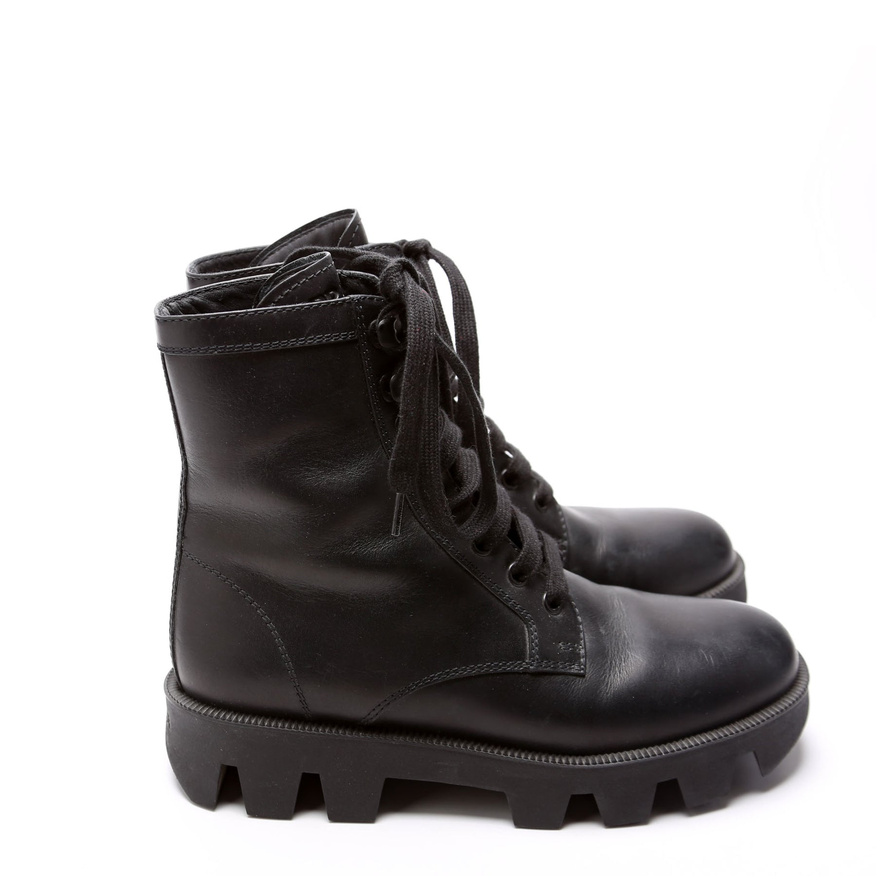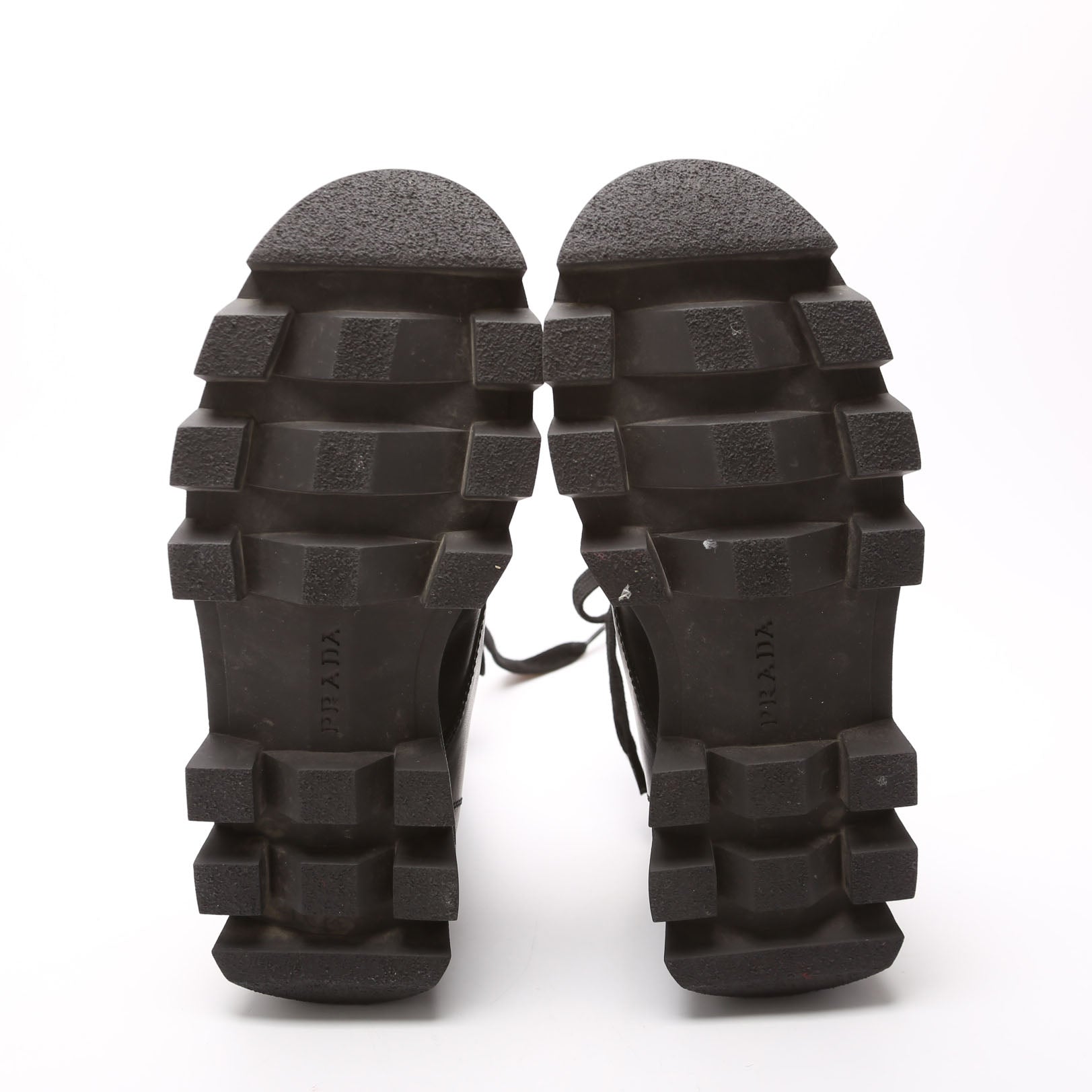 These pre-owned Prada Re-Nylon/Leather Lace Up Combat Boots are guaranteed 100% authentic.