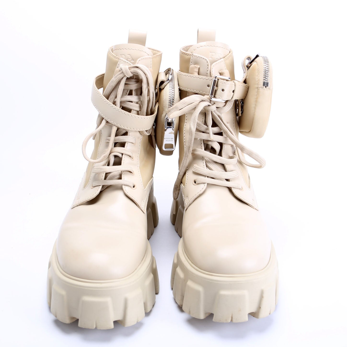 These pre-owned Prada Monolith Leather Nylon Boots are guaranteed 100% authentic.