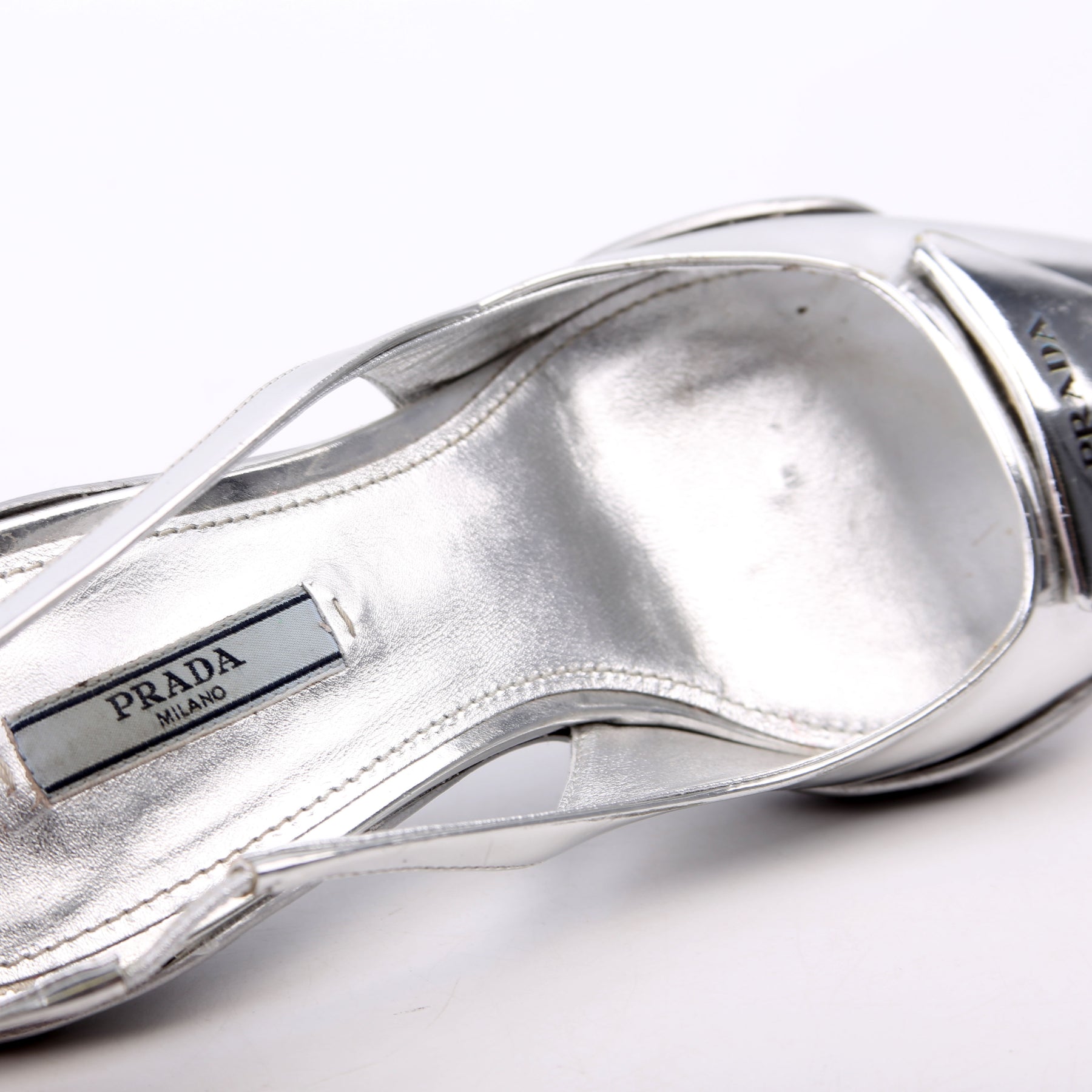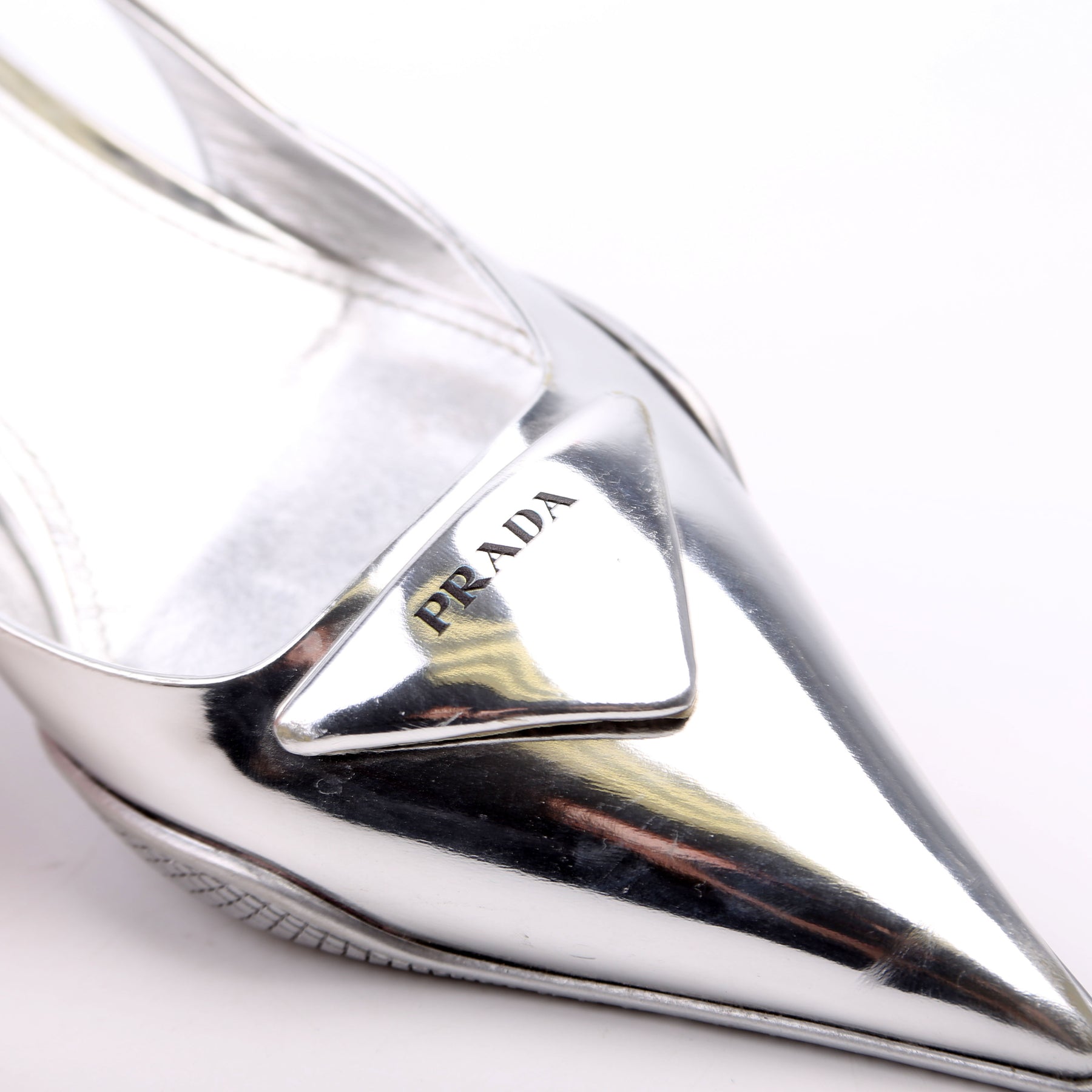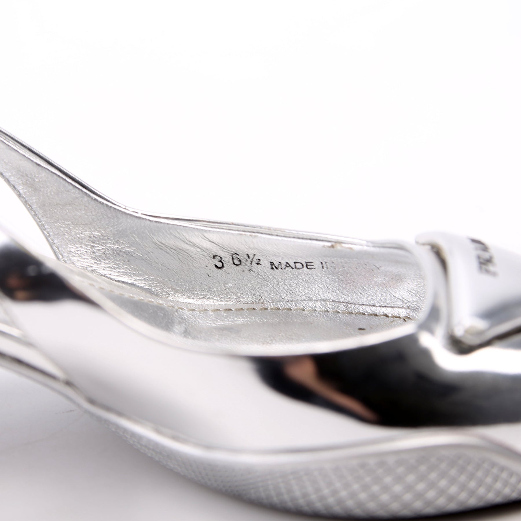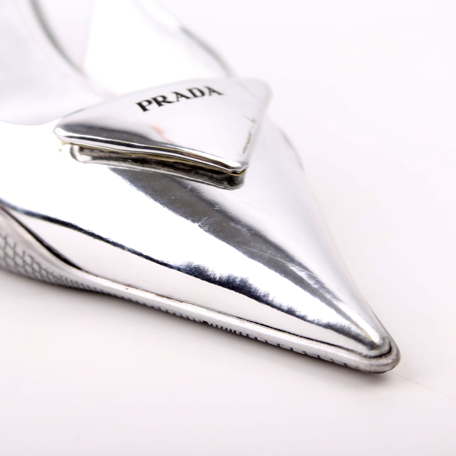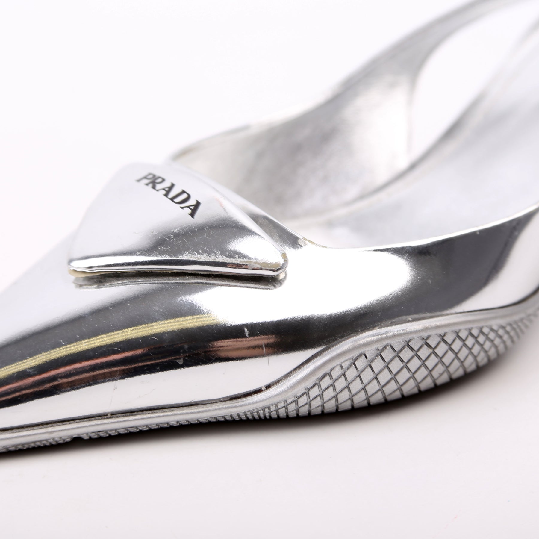 These pre-owned Prada Pointy Toe Slingback Metallic Pumps are guaranteed 100% authentic.