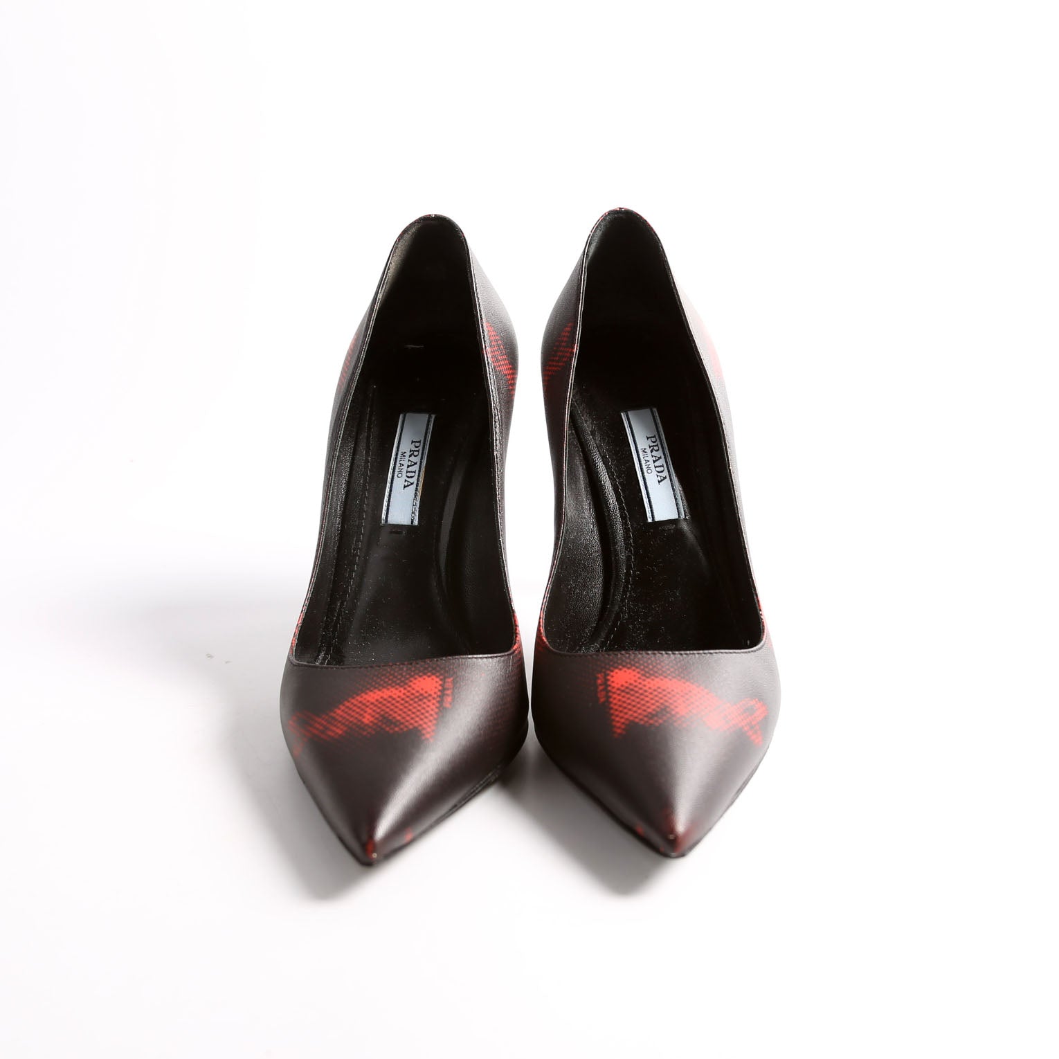 These pre-owned Prada Printed Leather Pointed Toe Pumps are guaranteed 100% authentic.