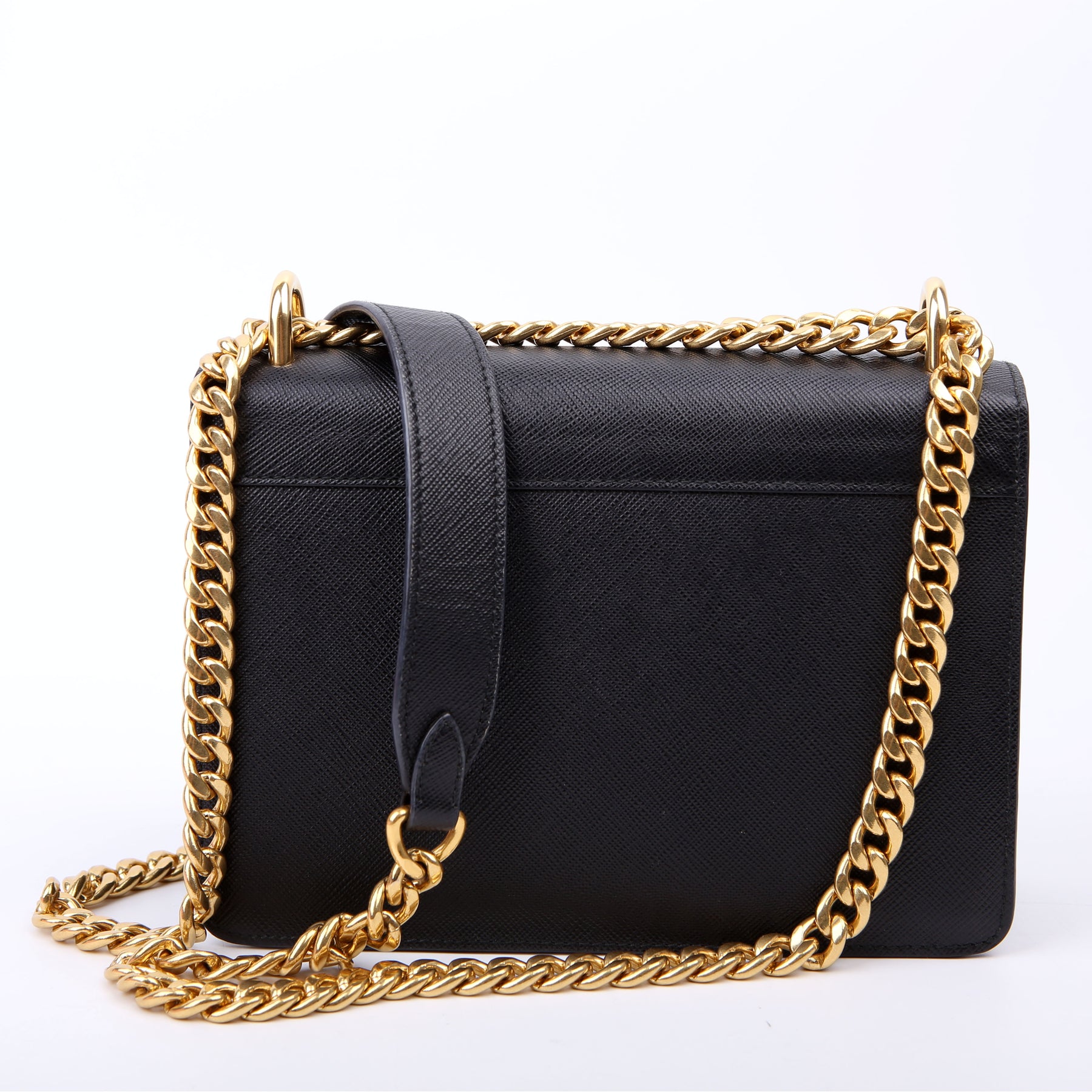 This pre-owned Prada Saffiano Chain Crossbody is guaranteed 100% authentic.