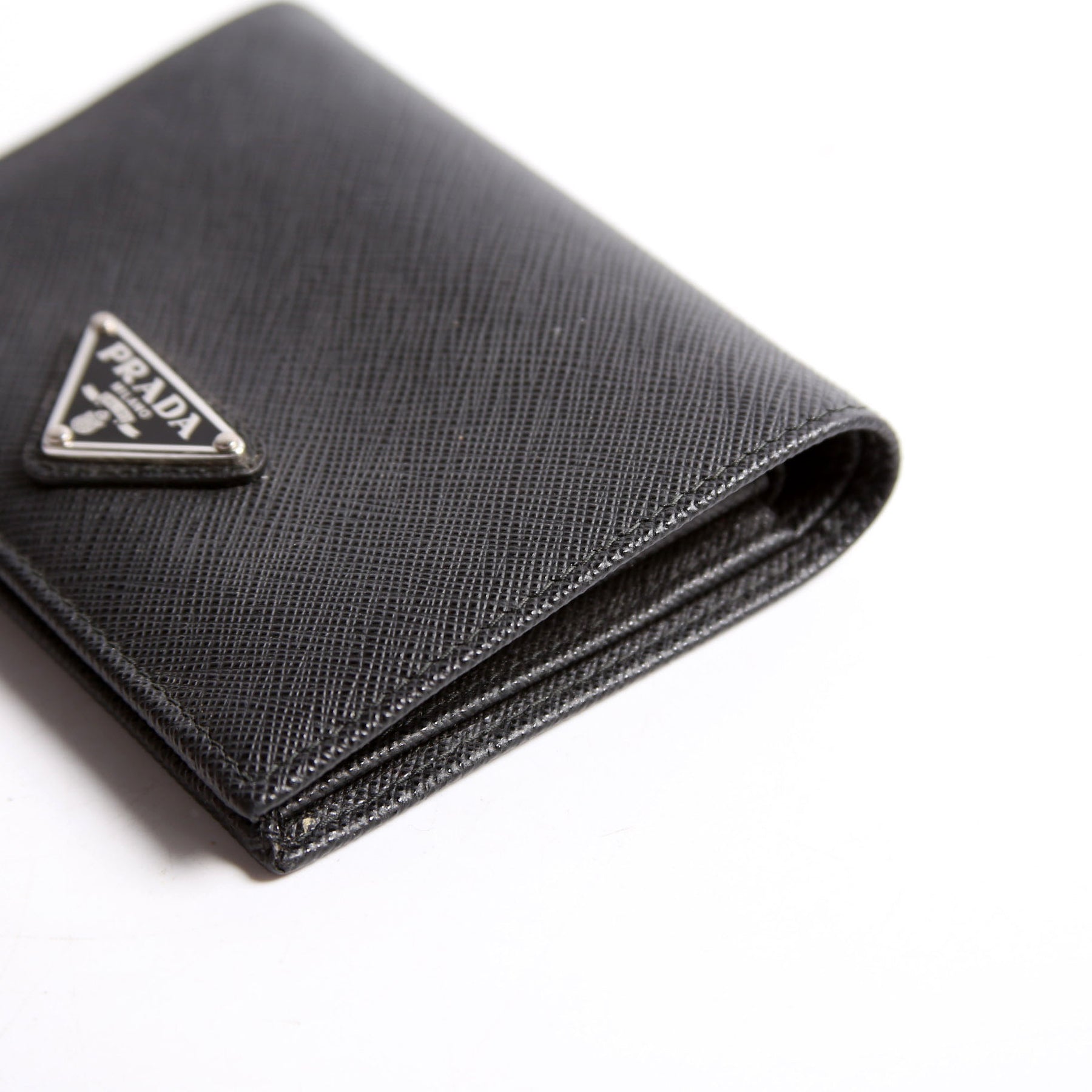 These pre-owned Prada Compact Bifold Wallet are guaranteed 100% authentic. The exterior is in the classic Prada Saffiano leather.