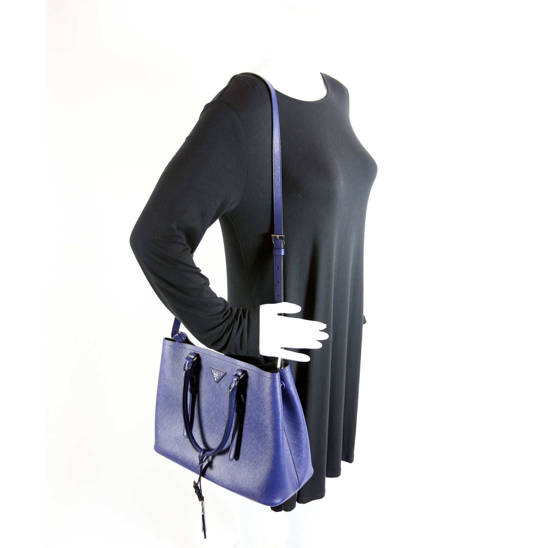 This pre-owned Prada Cuir Double Medium is guaranteed 100% authentic. The exterior is in the classic Prada Saffiano leather.