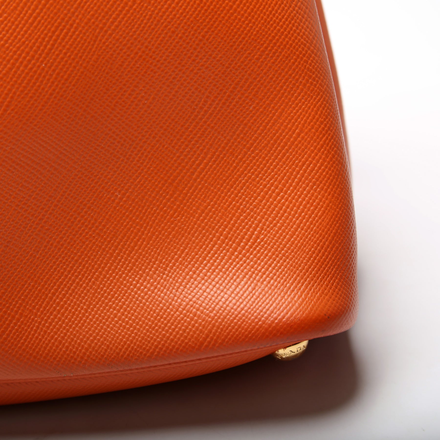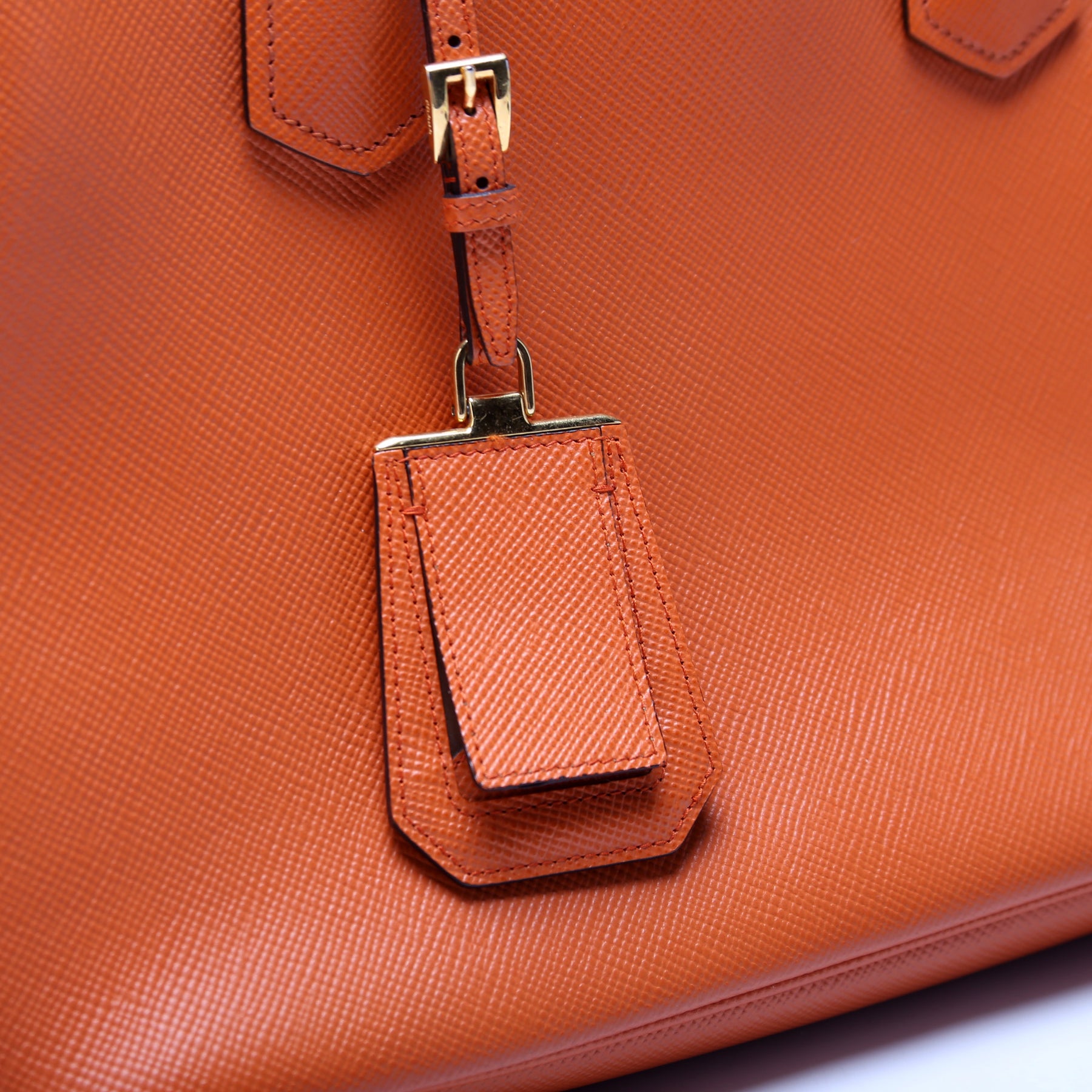 This pre-owned Prada Cuir Double Medium is guaranteed 100% authentic. The exterior is in the classic Prada Saffiano leather.
