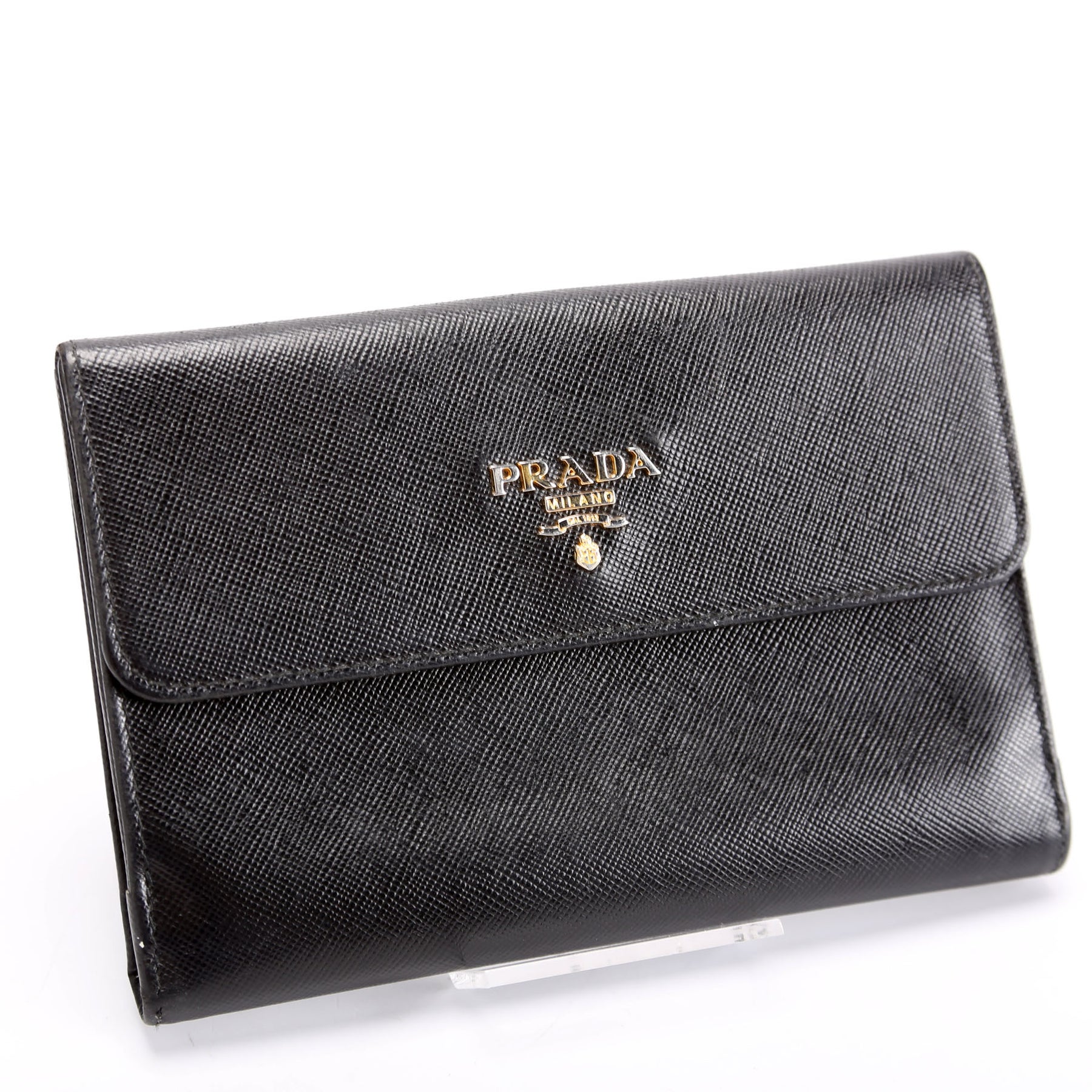 Saffiano Metal Large Flap Wallet Black