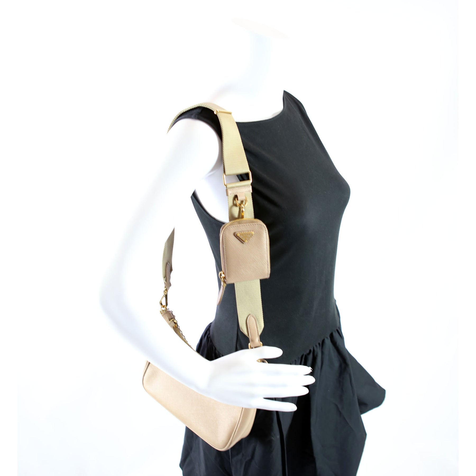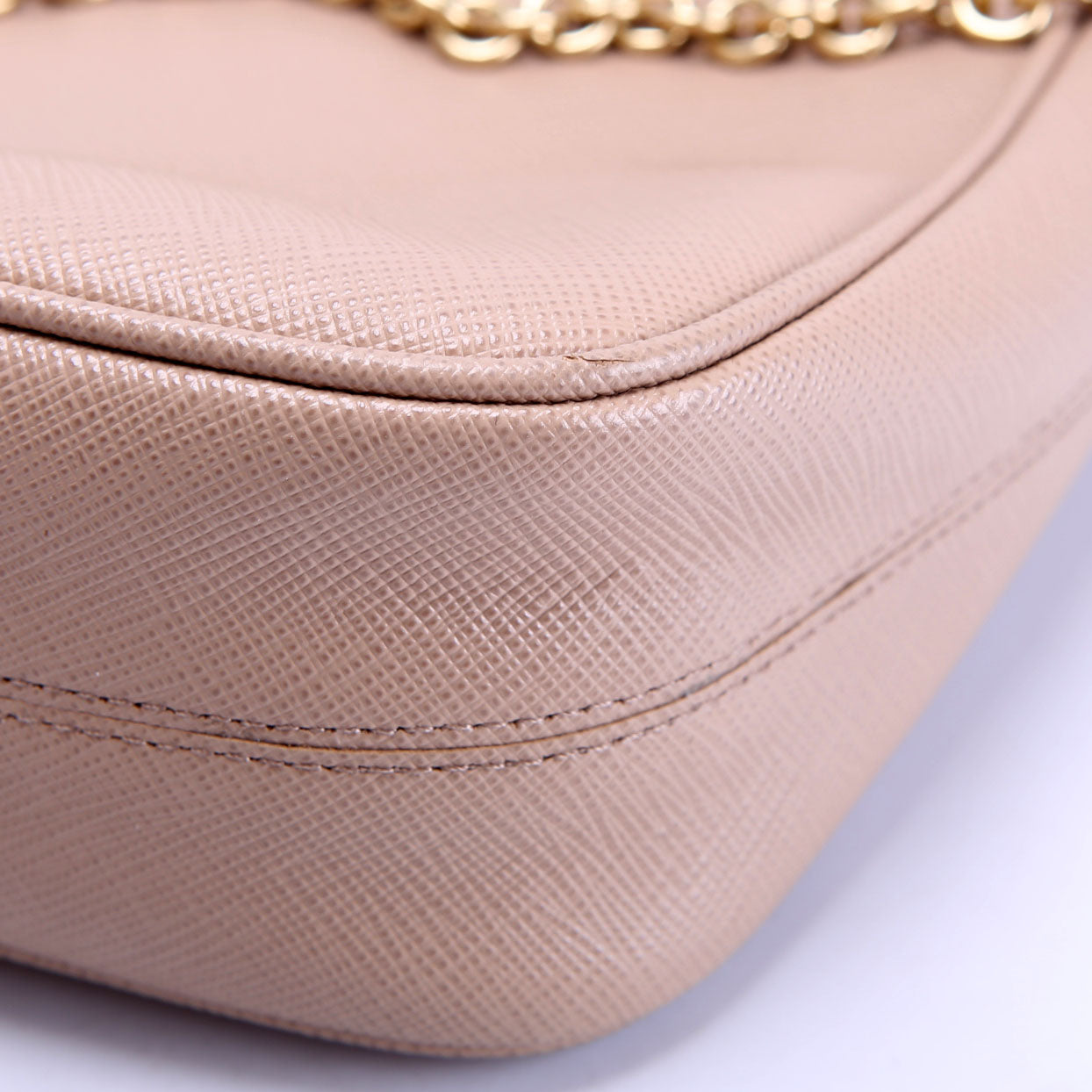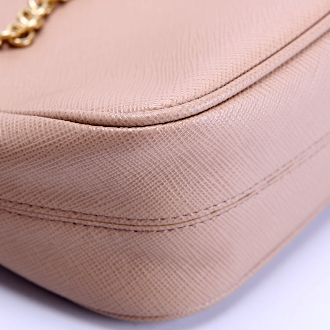 This pre-owned Prada Saffiano Re-Edition 2005 is guaranteed 100% authentic. The exterior is in the classic Prada Saffiano leather.