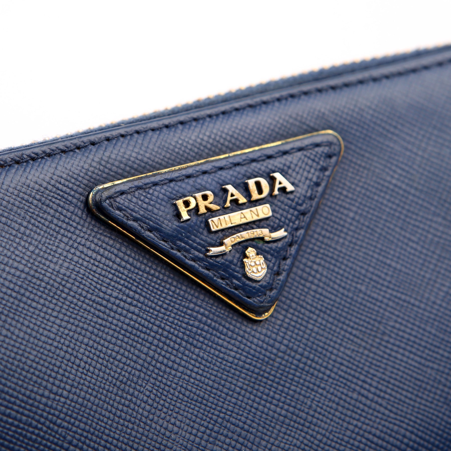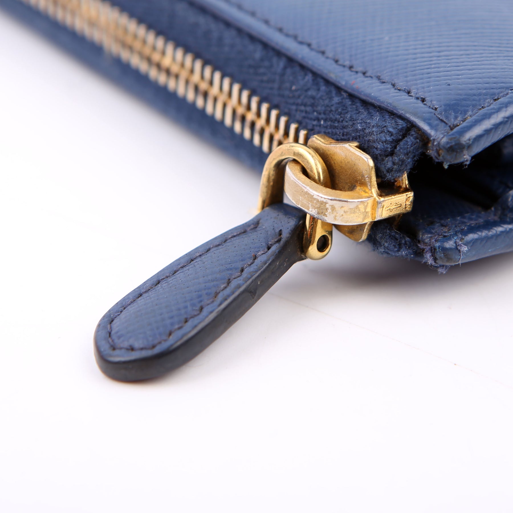 This pre-owned Prada Saffiano Zip Wallet is guaranteed 100% authentic. The exterior is in the classic Prada Saffiano leather.