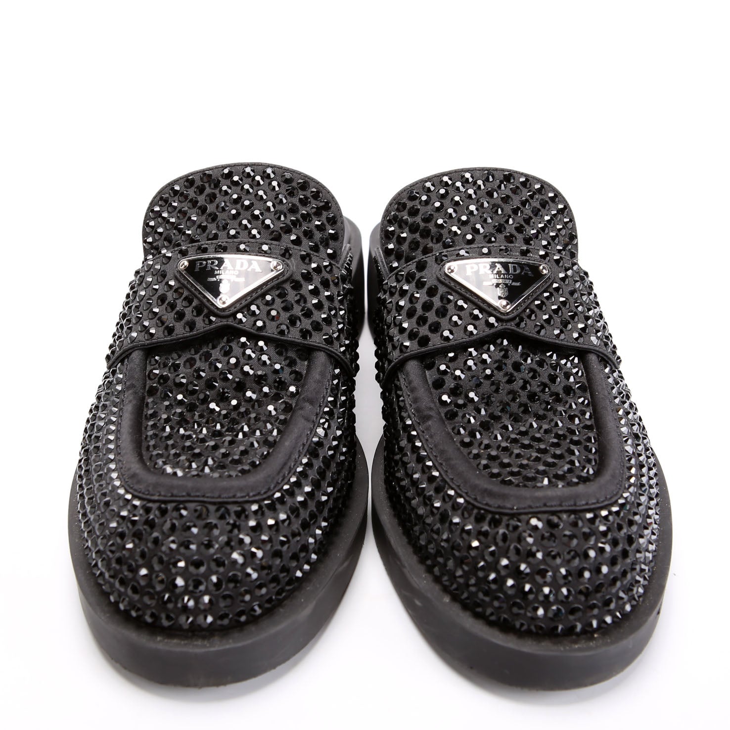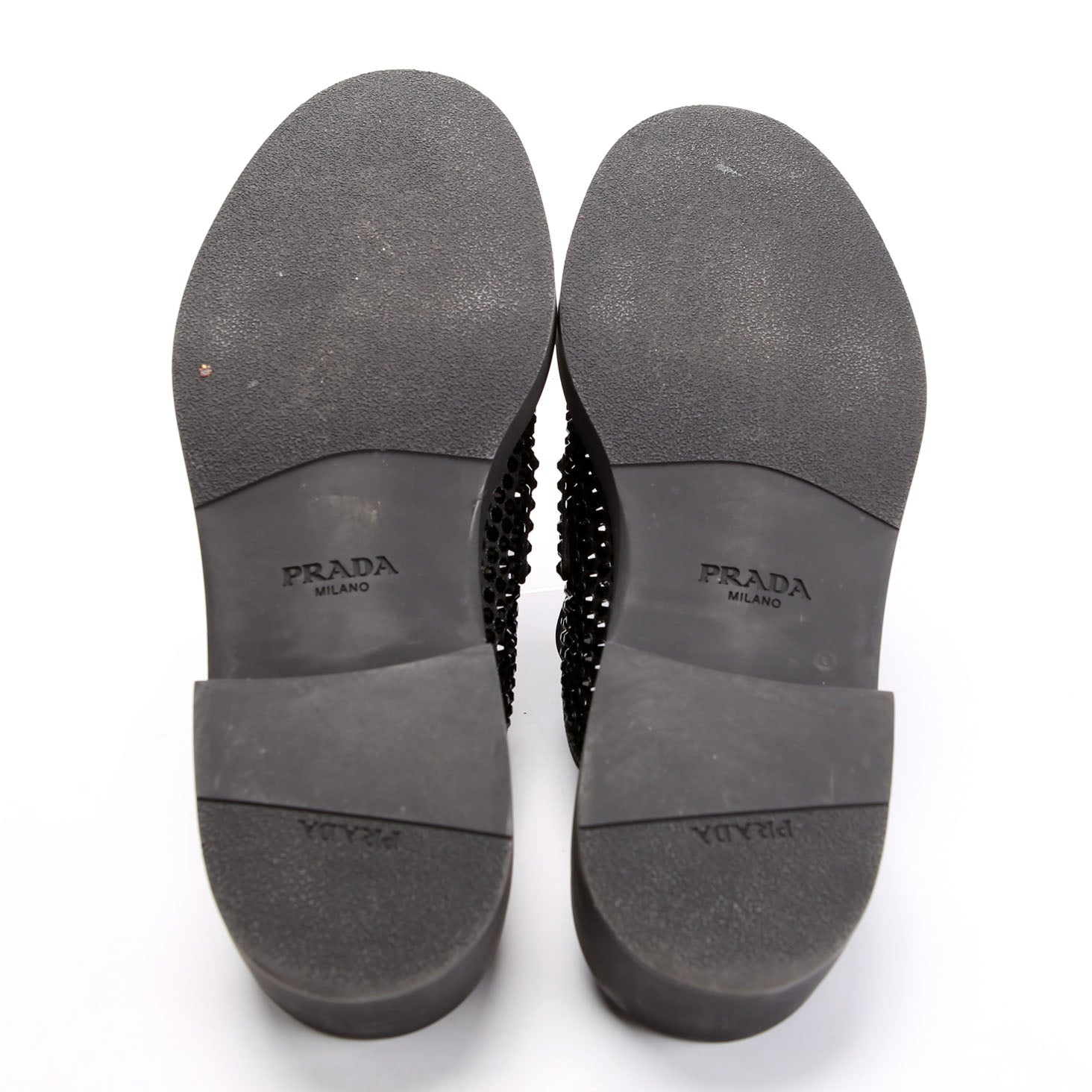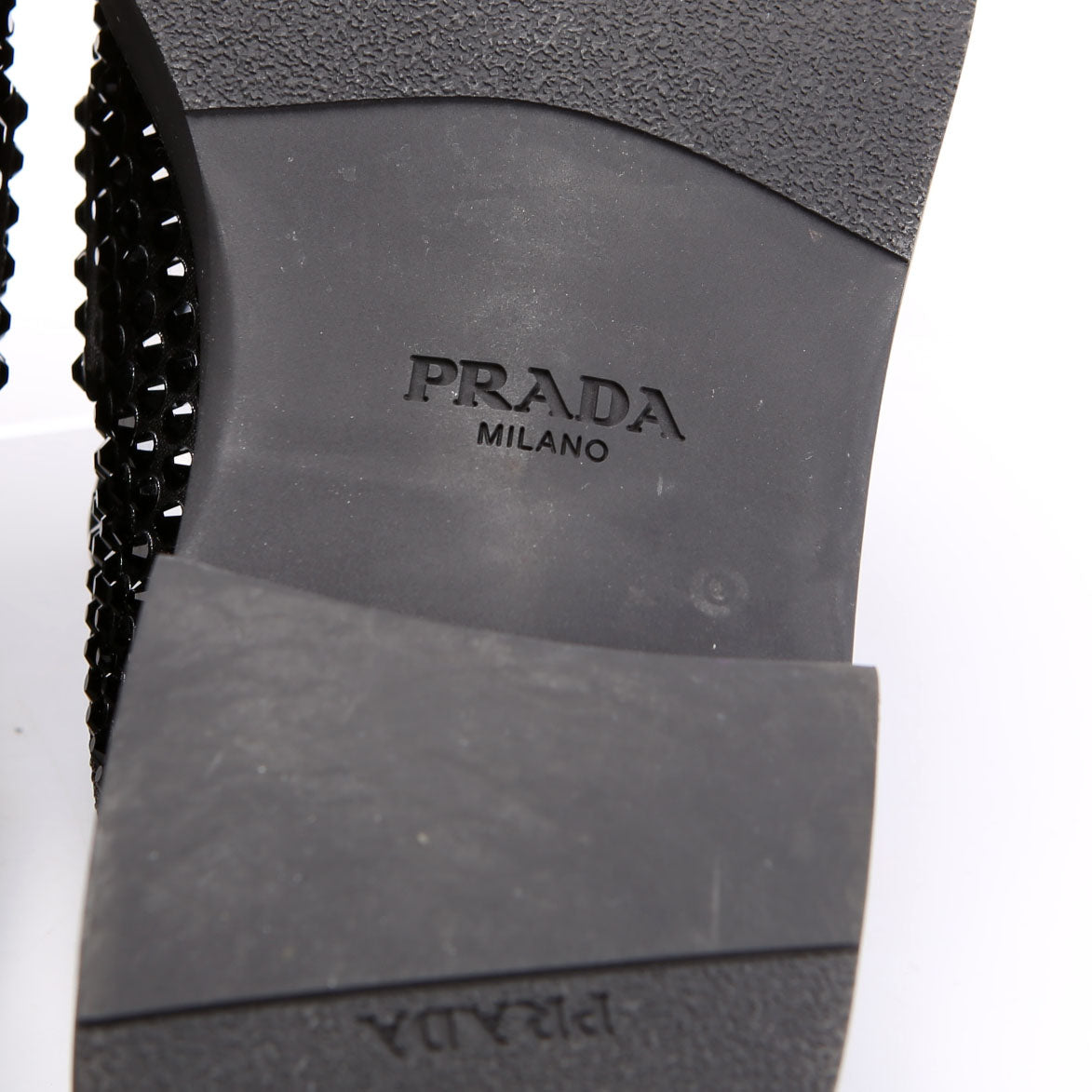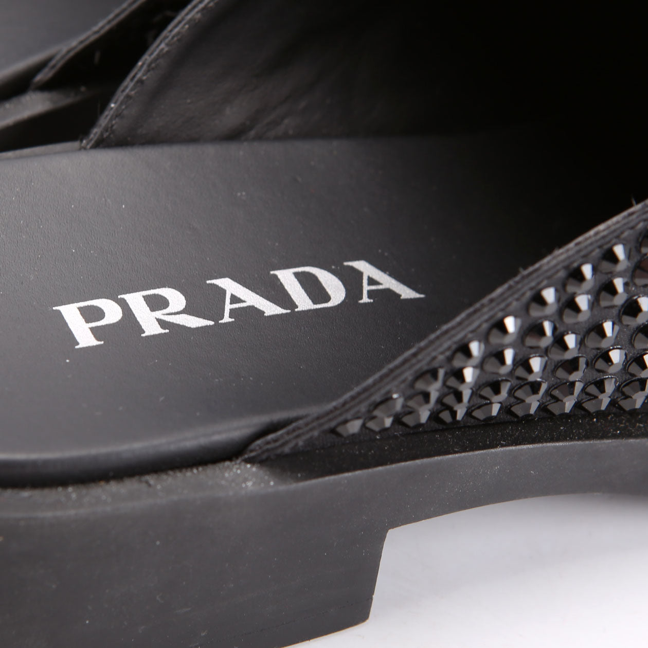 These pre-owned Prada Triangle Crystal Mules are guaranteed 100% authentic.