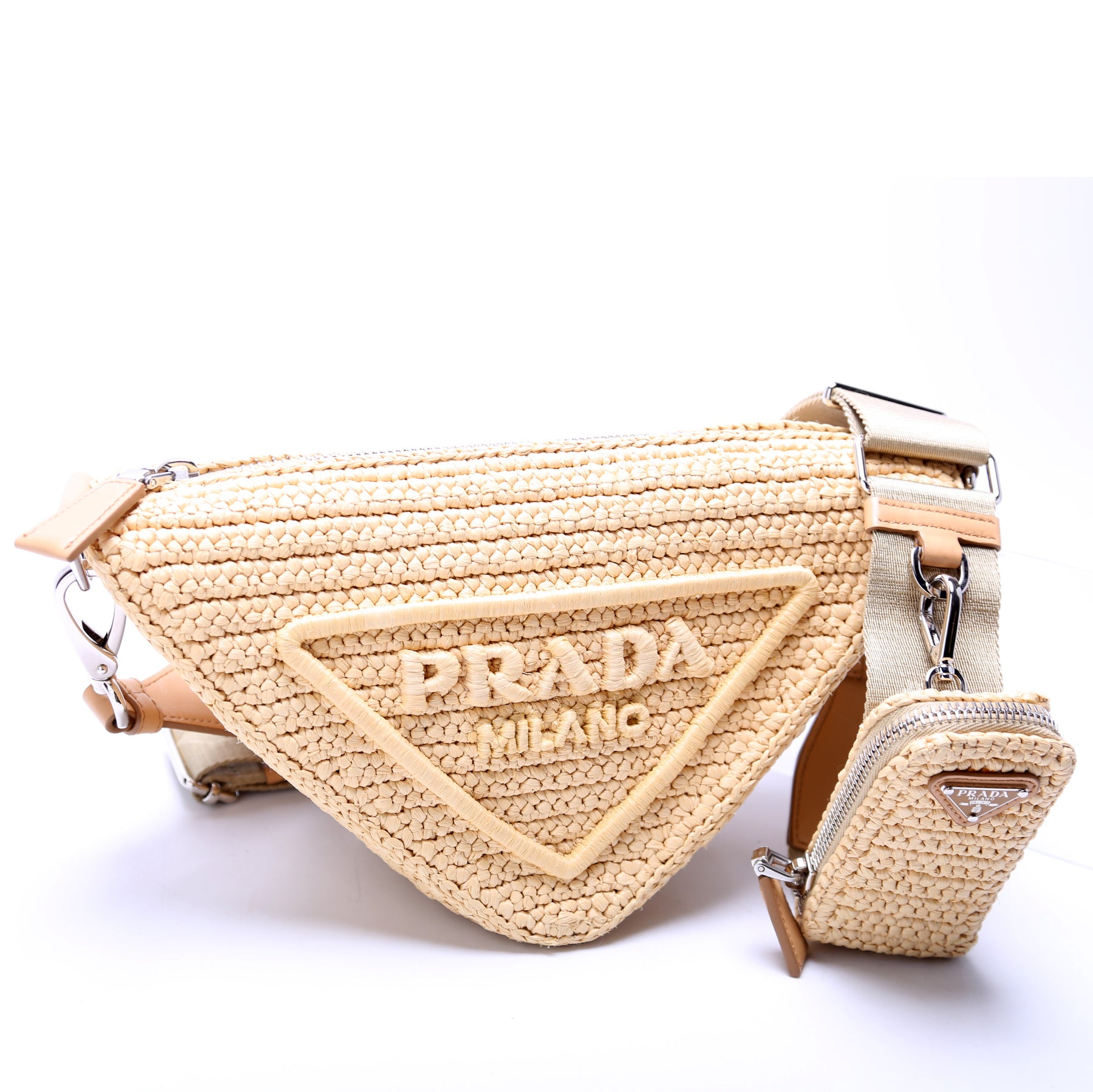 This pre-owned Prada Triangle Logo Raffia is guaranteed 100% authentic.