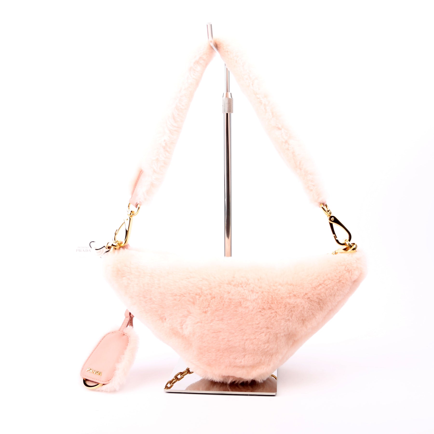 This pre-owned Prada Triangle Shearling Mini Bag is guaranteed 100% authentic.