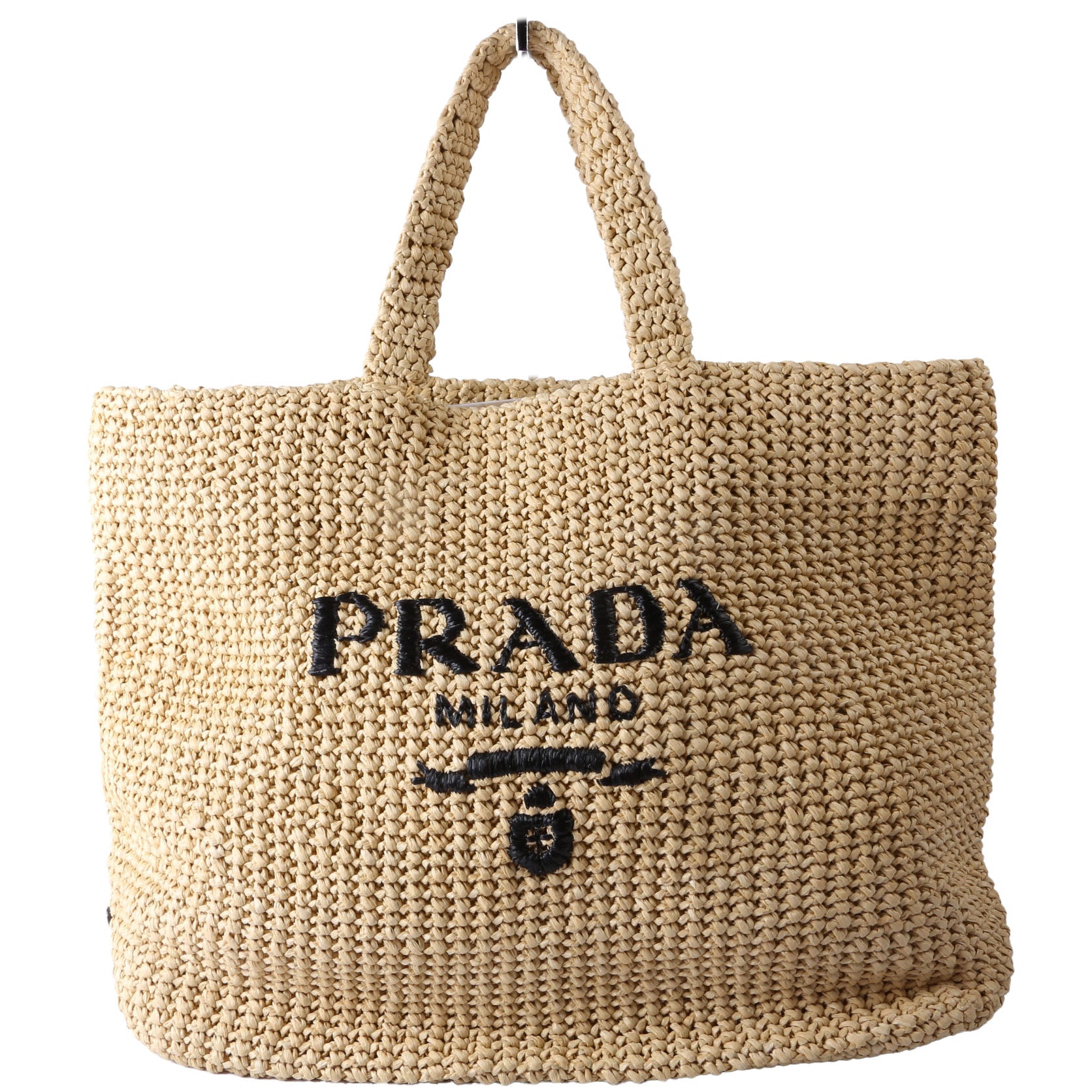 This pre-owned Prada Yarn Raffia Embroidered Tote is guaranteed 100% authentic. The exterior is in the classic Prada Raffia.