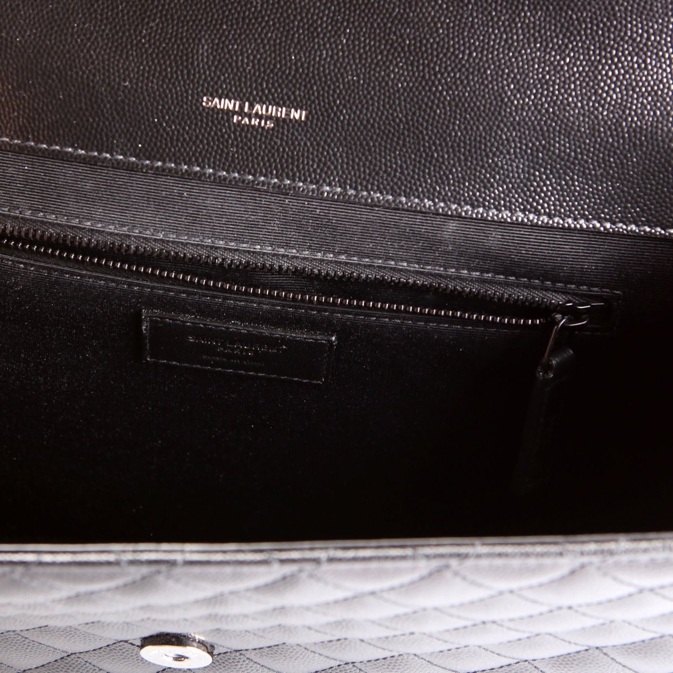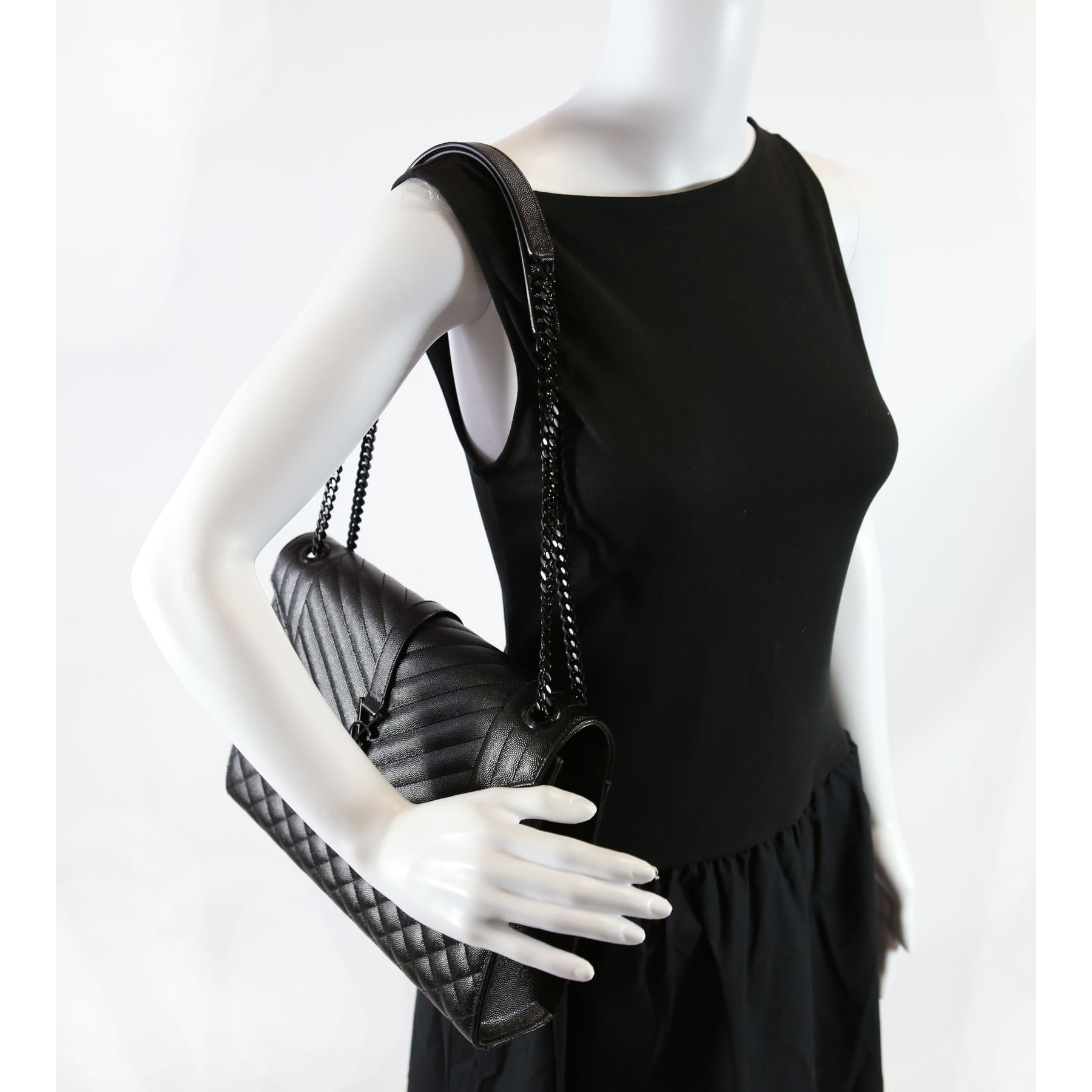 This pre-owned Saint Laurent Envelope Chevron Large is guaranteed 100% authentic. The exterior is in the classic Yves Saint Laurent grained leather.