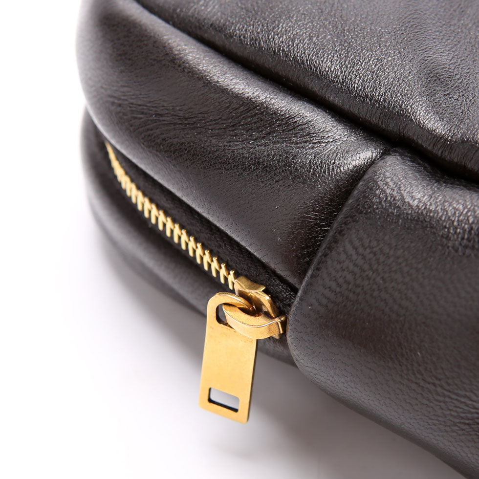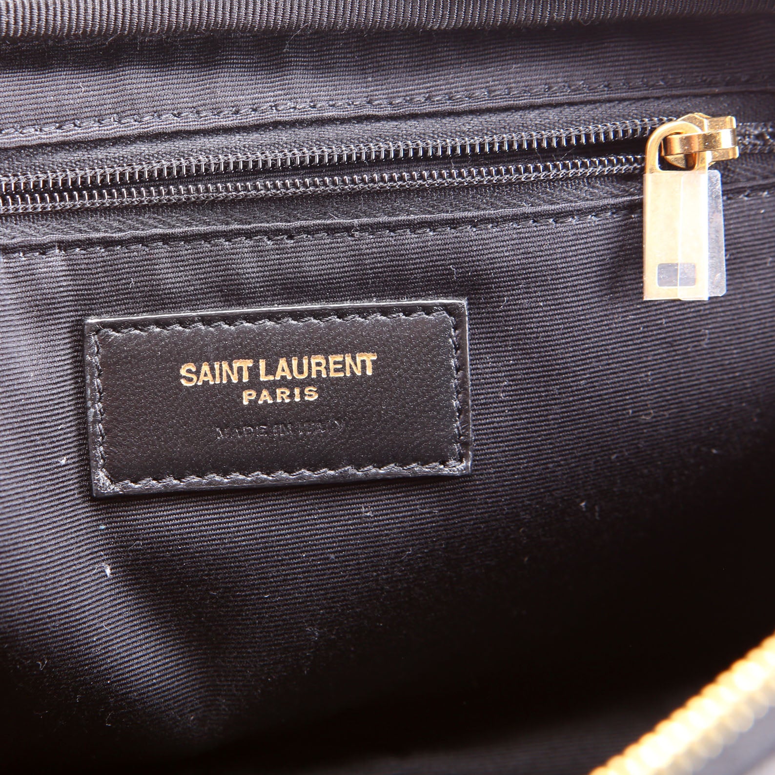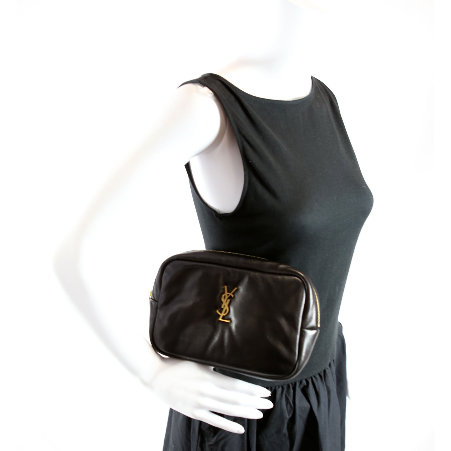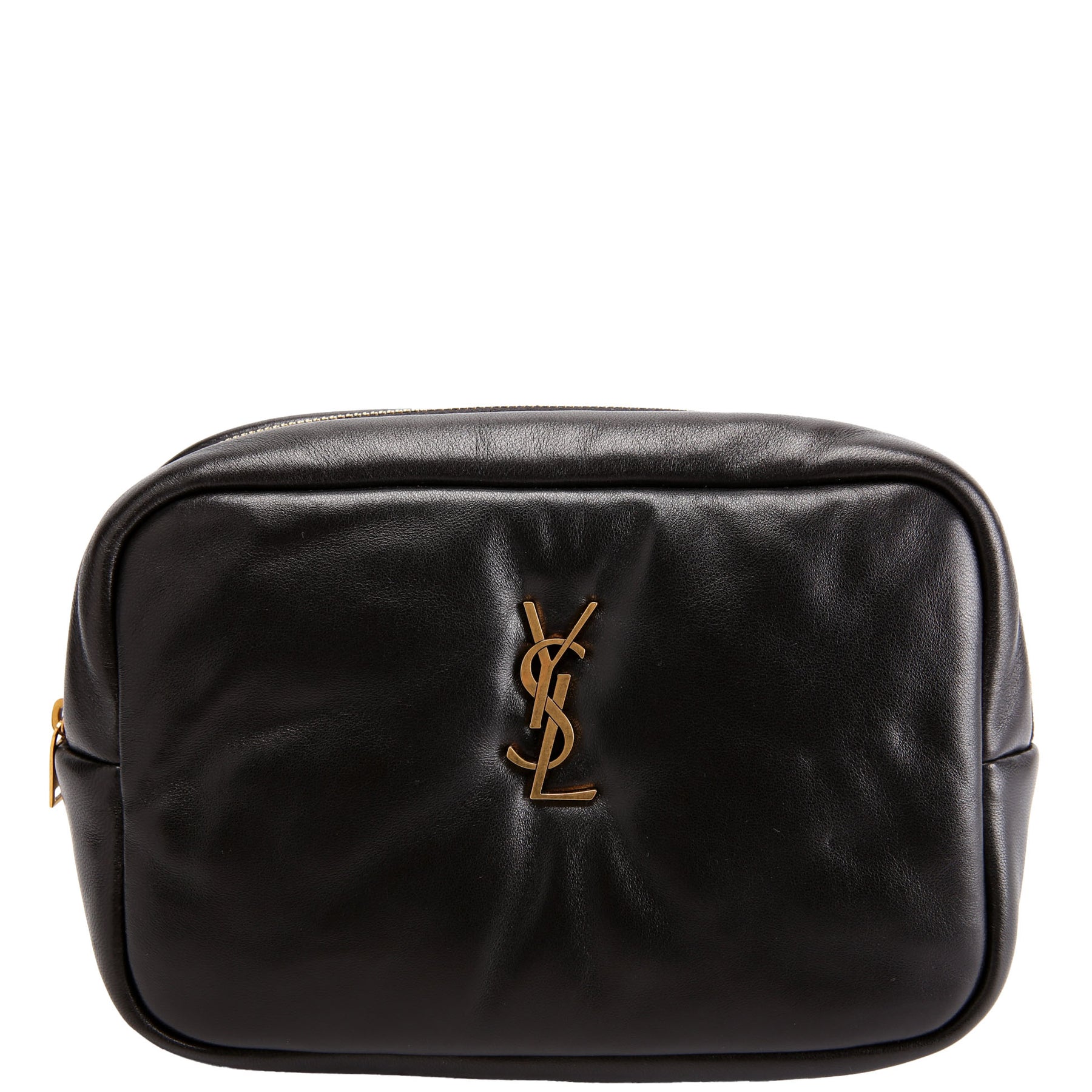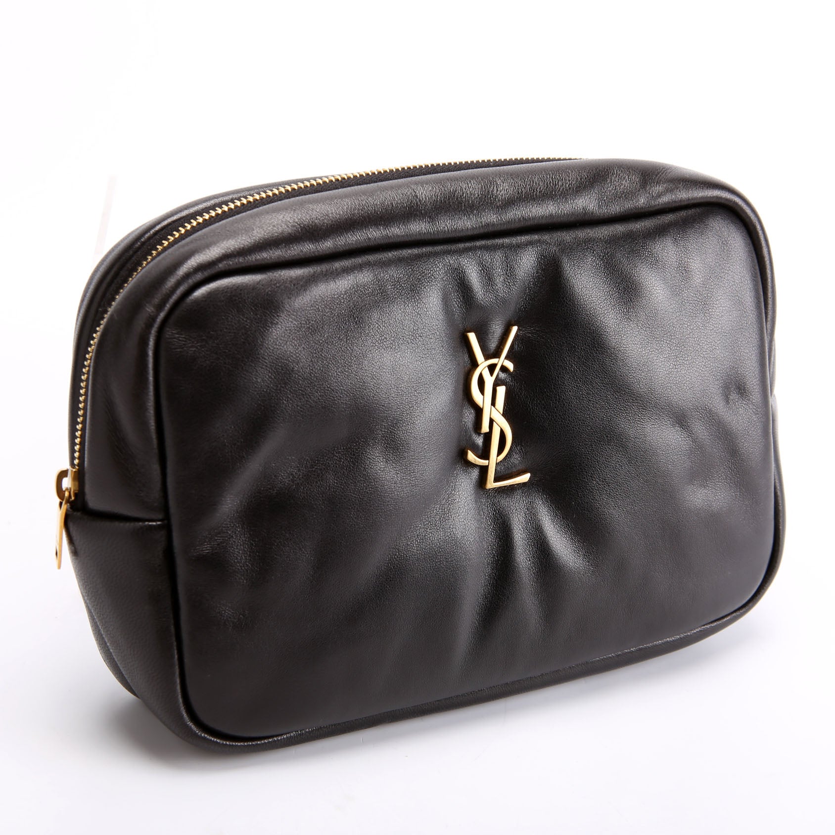 This pre-owned Saint Laurent Calypso Cosmetic Pouch is guaranteed 100% authentic. The exterior is in the classic Saint Laurent Lambskin leather.
