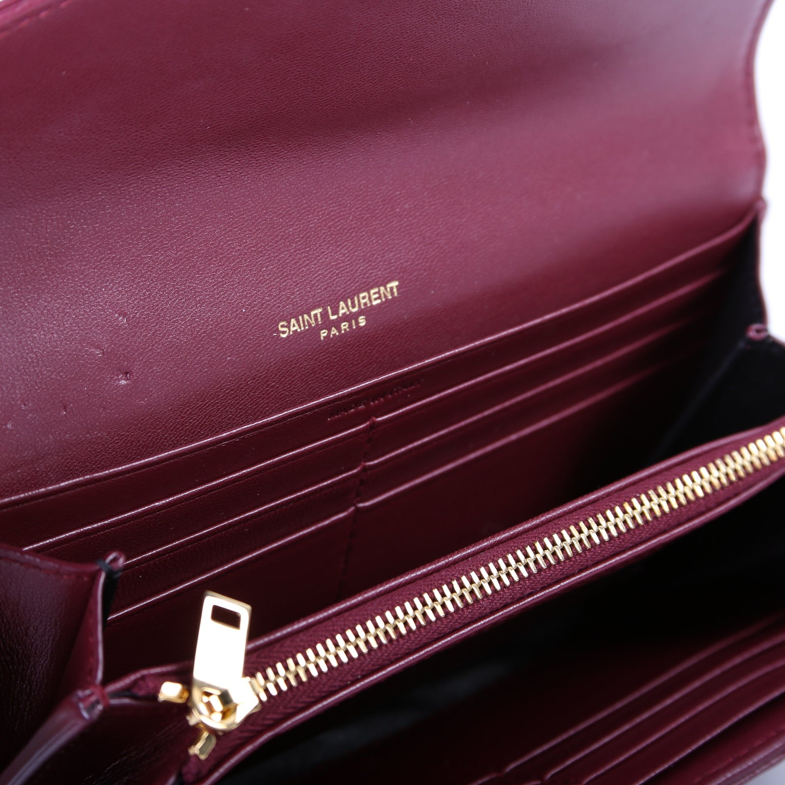 This pre-owned Saint Laurent Flap Wallet is guaranteed 100% authentic. The exterior is in the classic Saint Laurent Grain De Poudre leather.