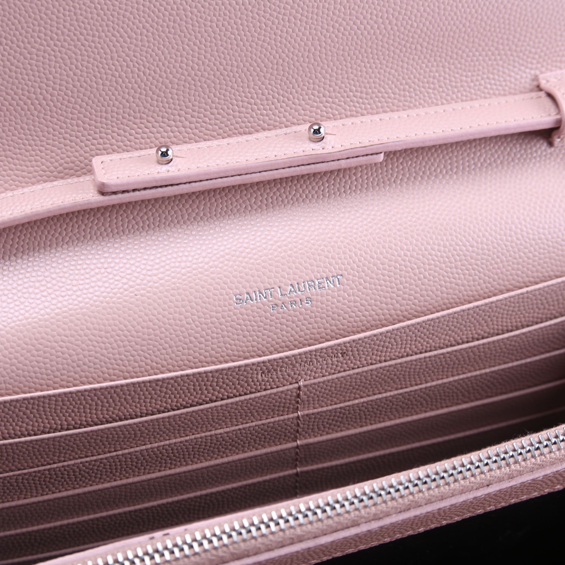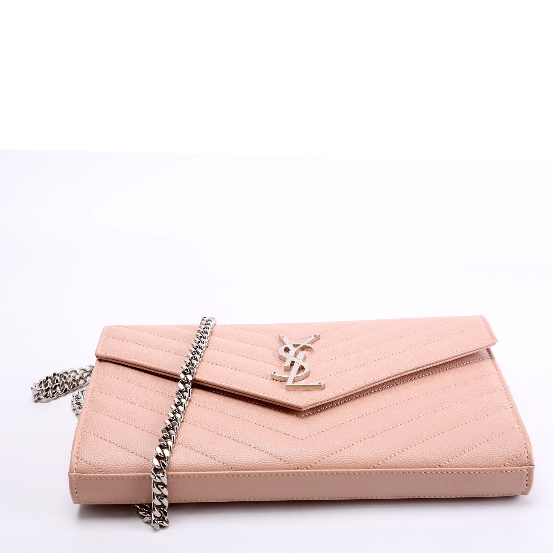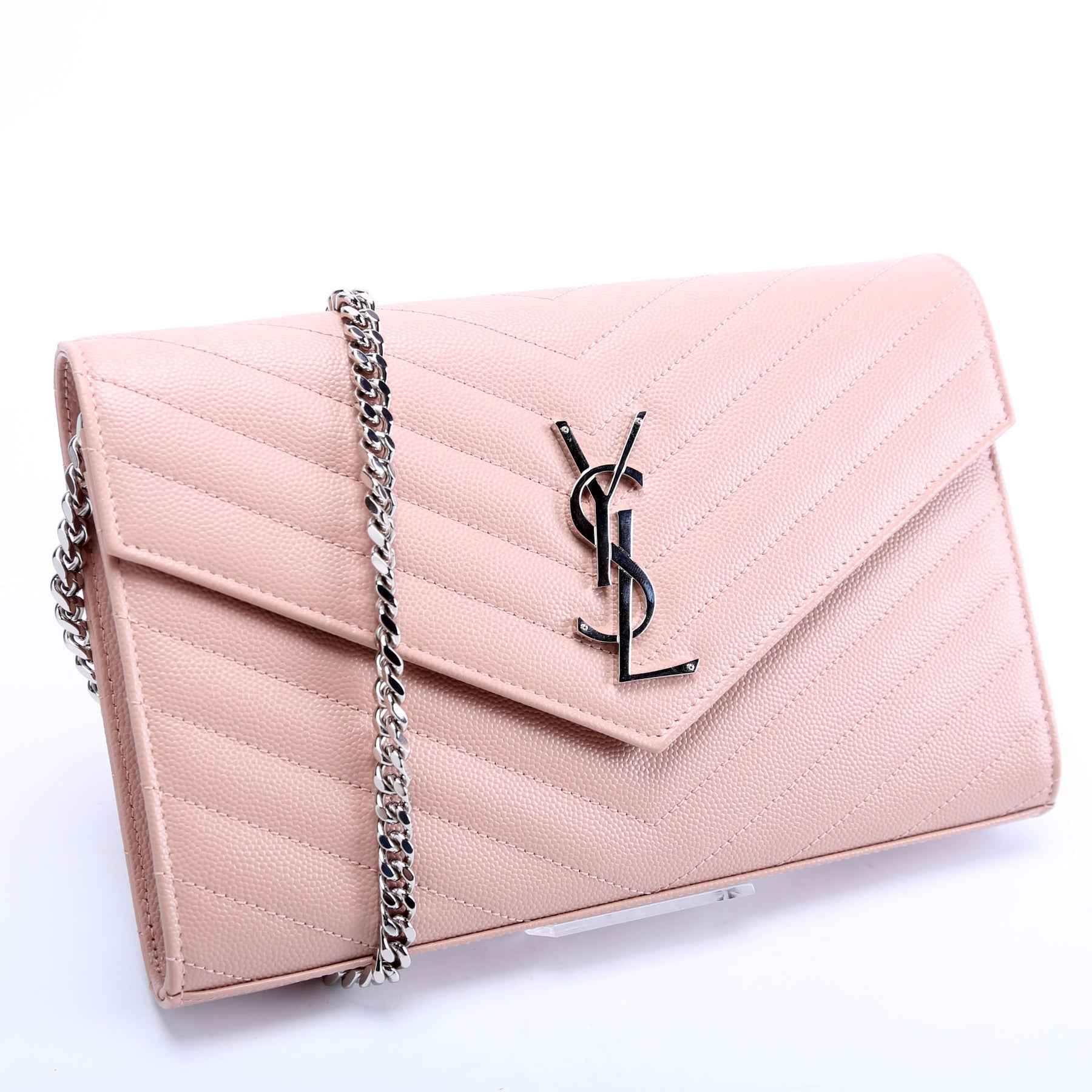 This pre-owned Saint Laurent Grain De Chain Wallet is guaranteed 100% authentic. The exterior is in the classic Saint Laurent grained calfskin leather.