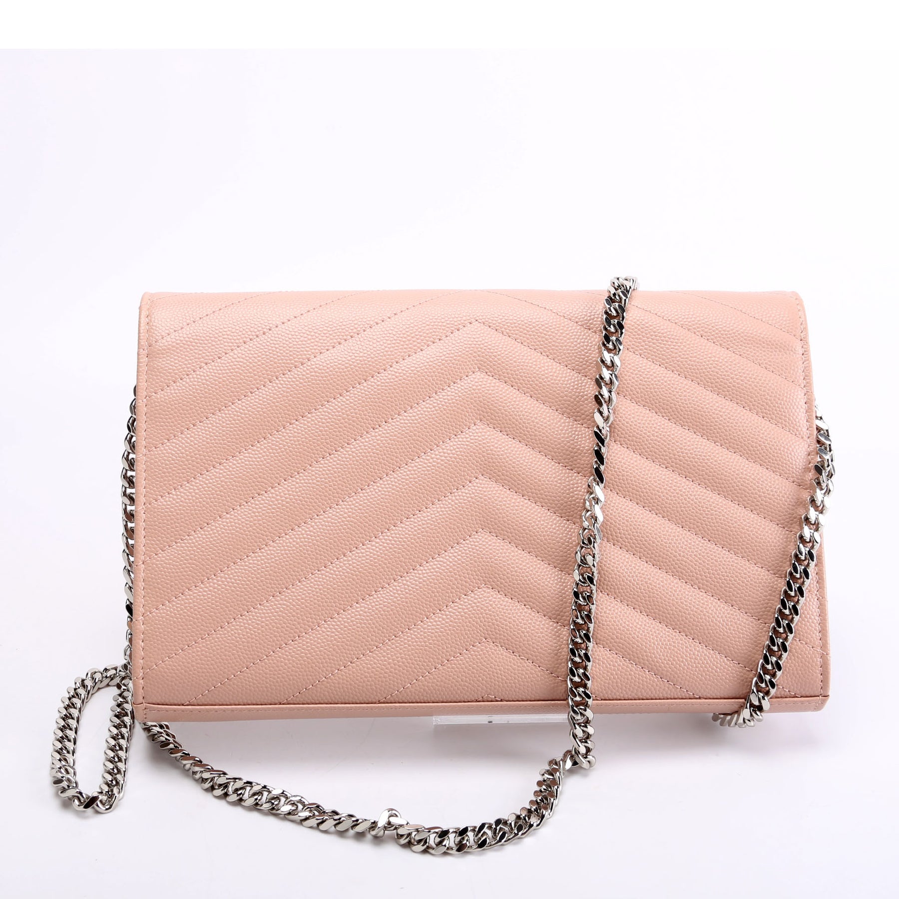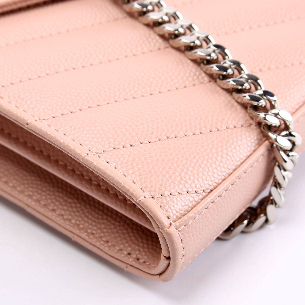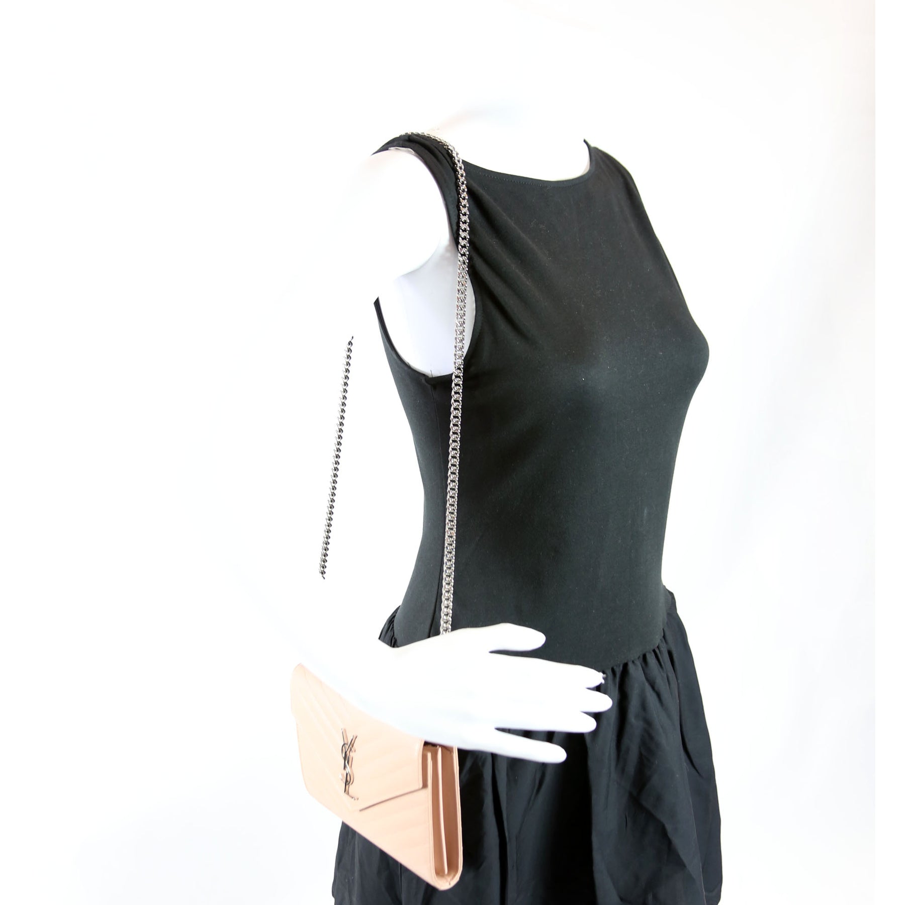 This pre-owned Saint Laurent Grain De Chain Wallet is guaranteed 100% authentic. The exterior is in the classic Saint Laurent grained calfskin leather.