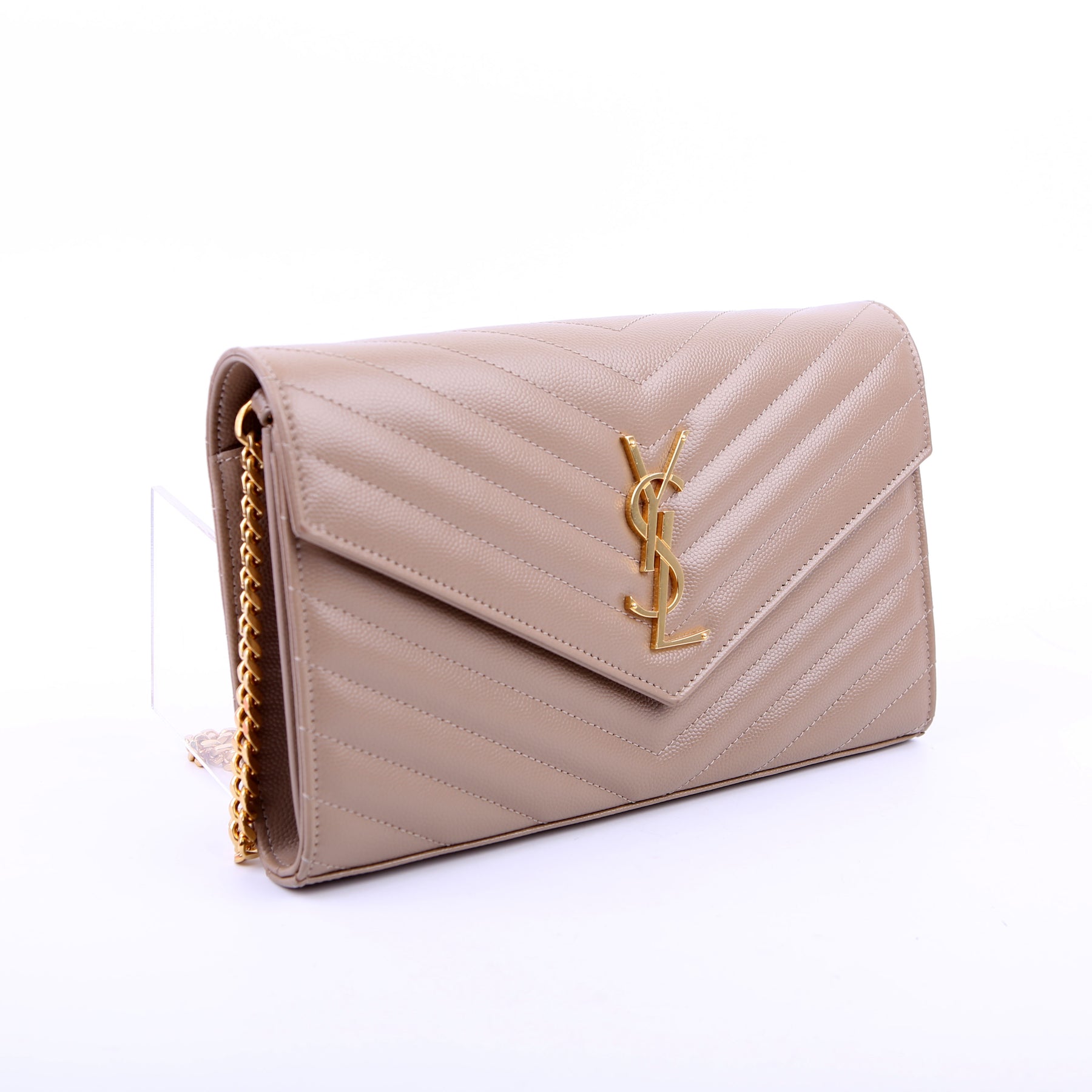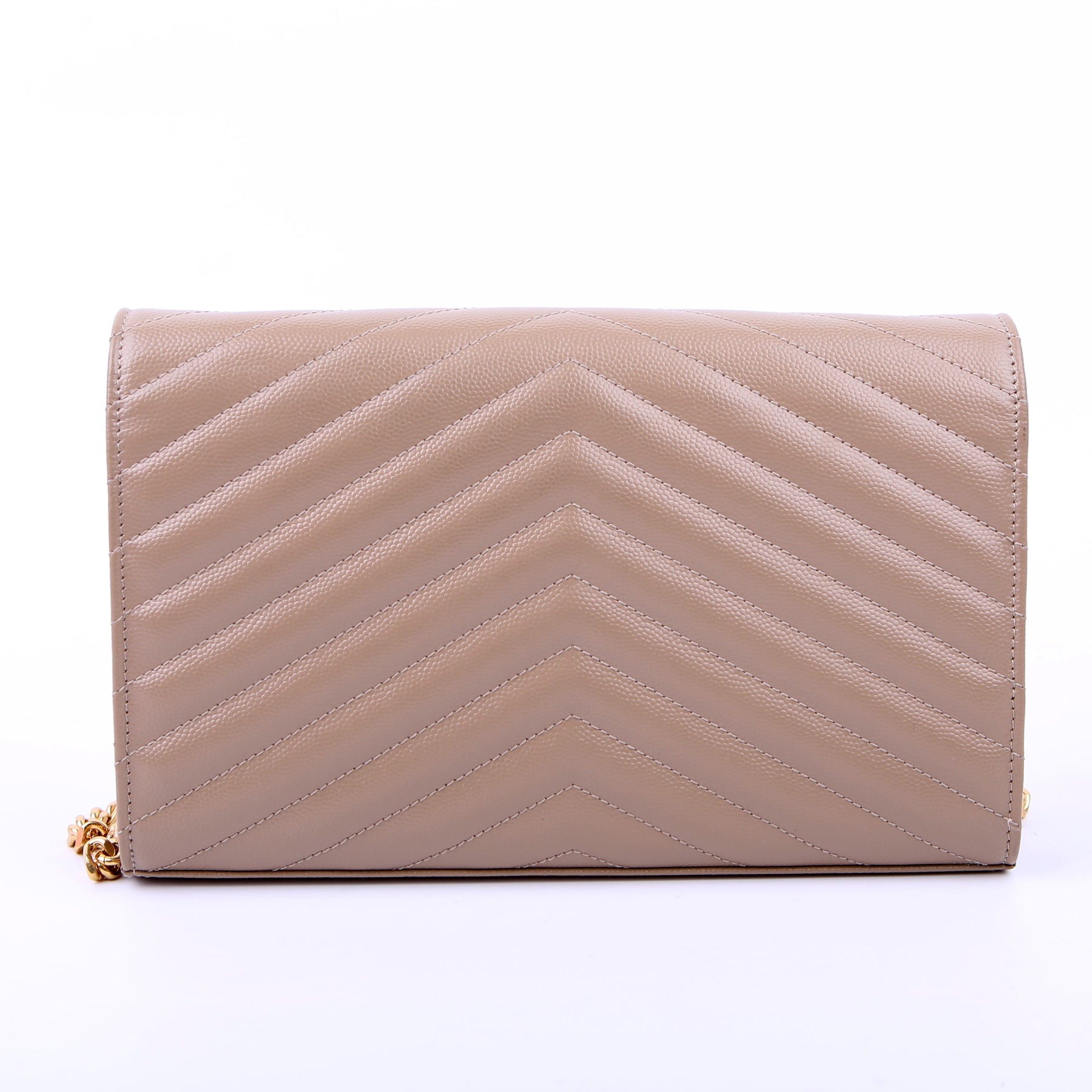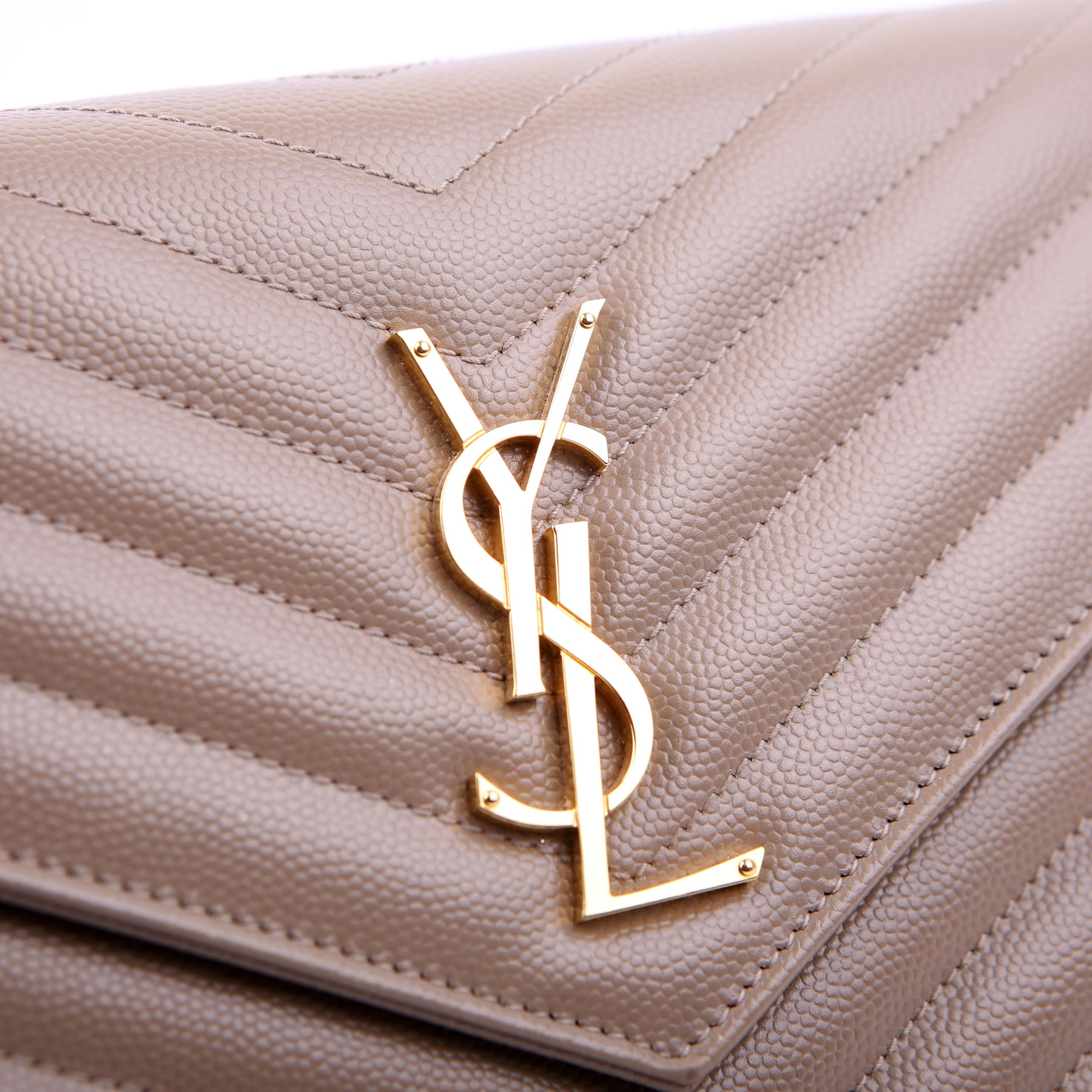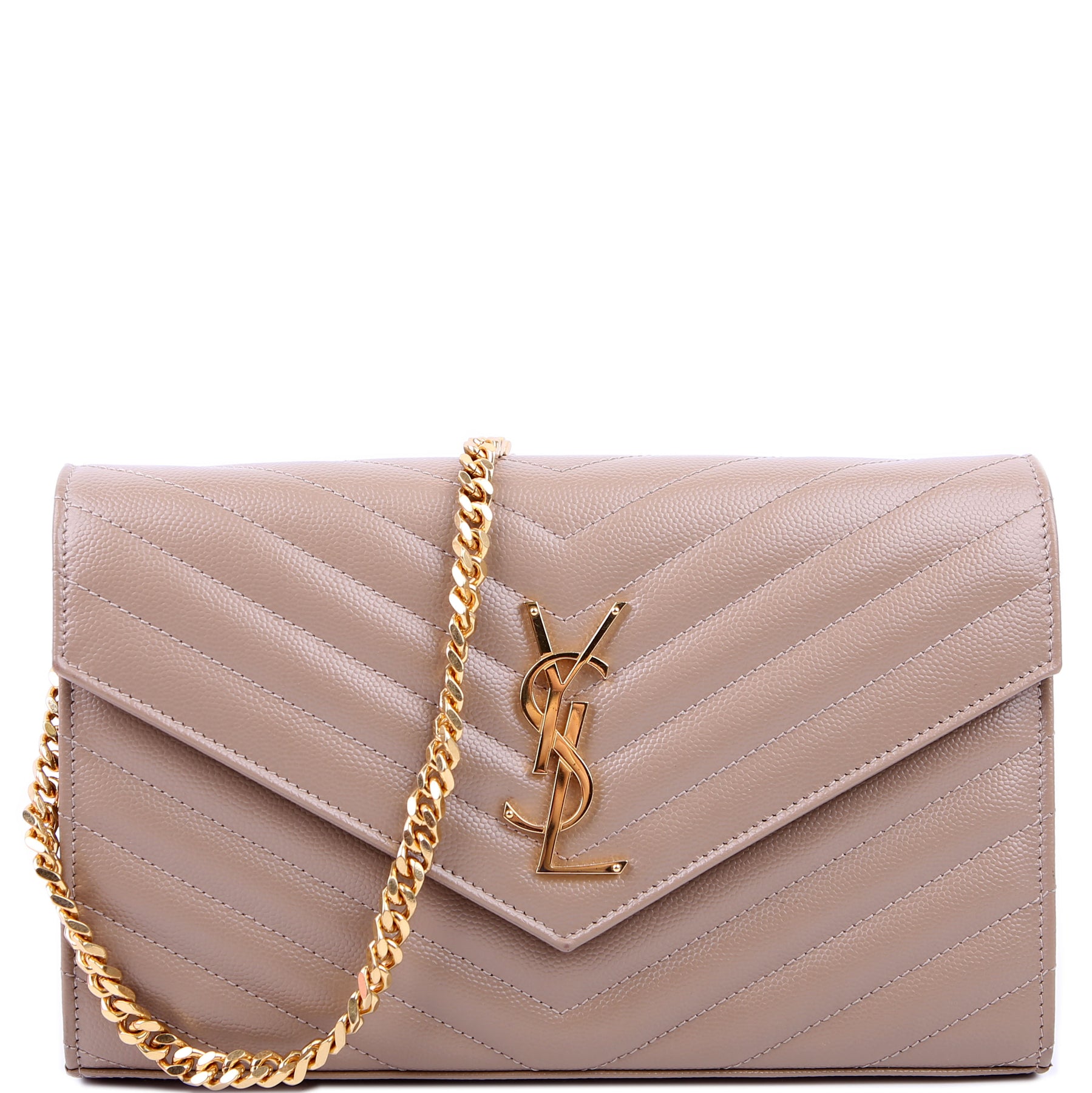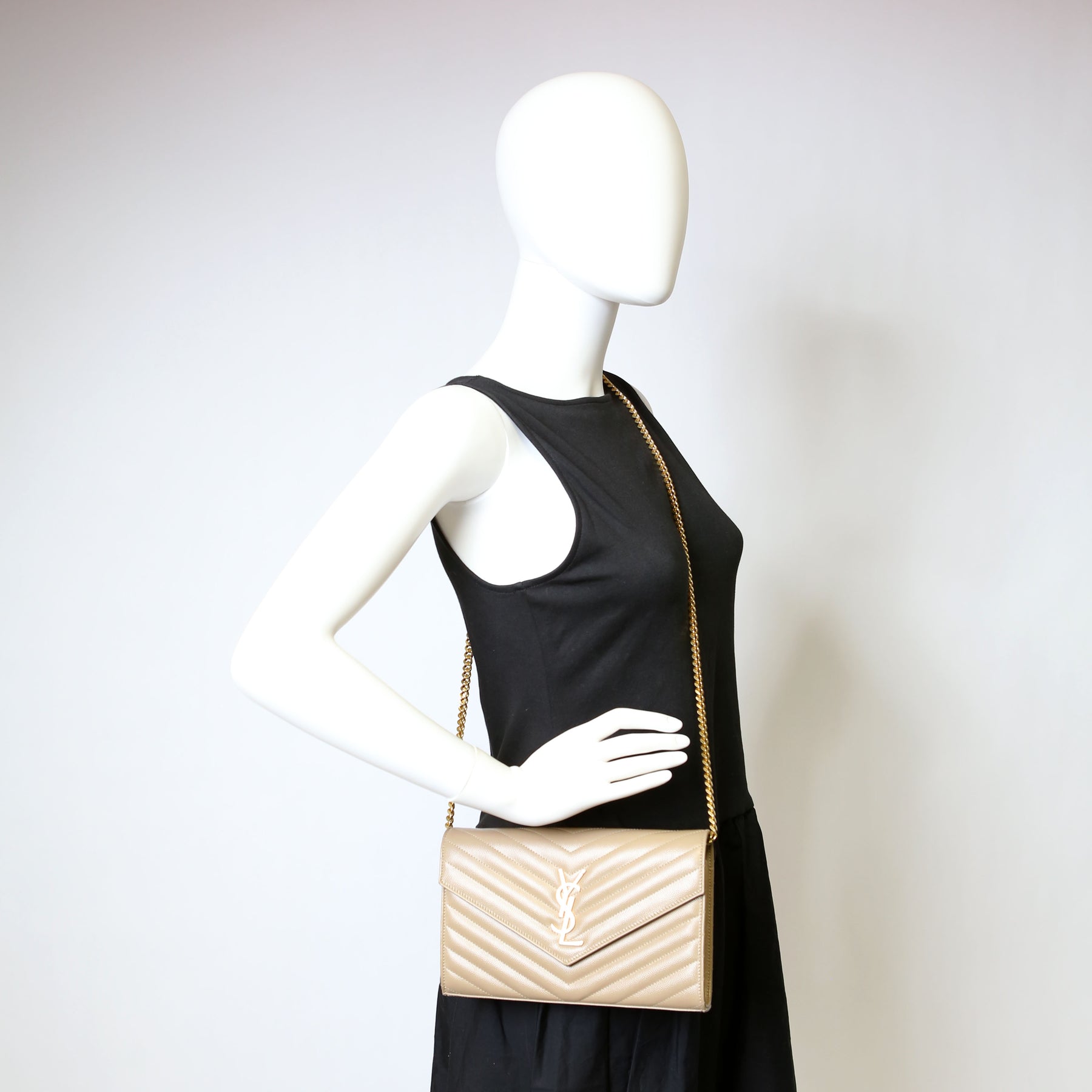 This pre-owned Saint Laurent Grain De Chain Wallet is guaranteed 100% authentic. The exterior is in the classic Saint Laurent Grain De Poudre leather.