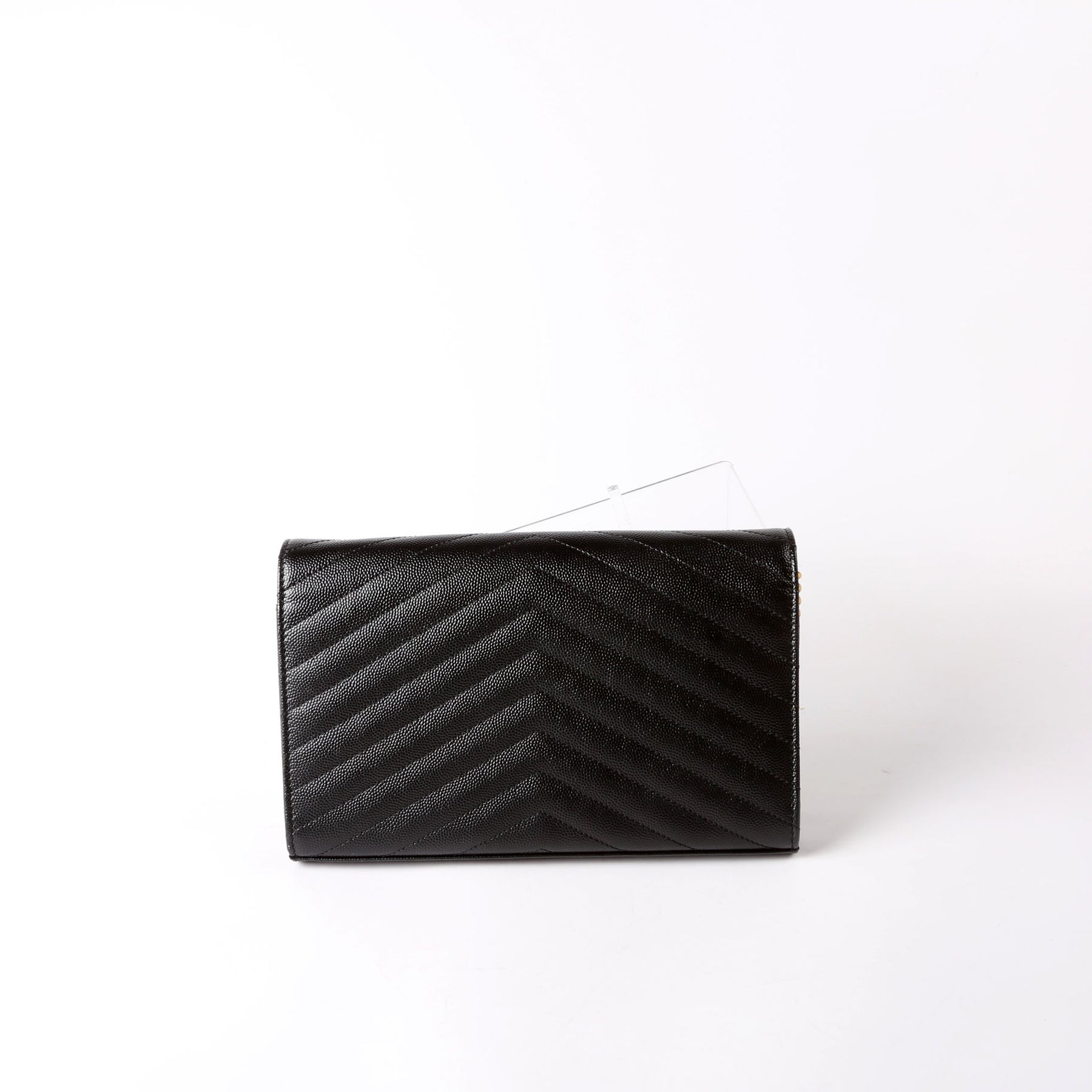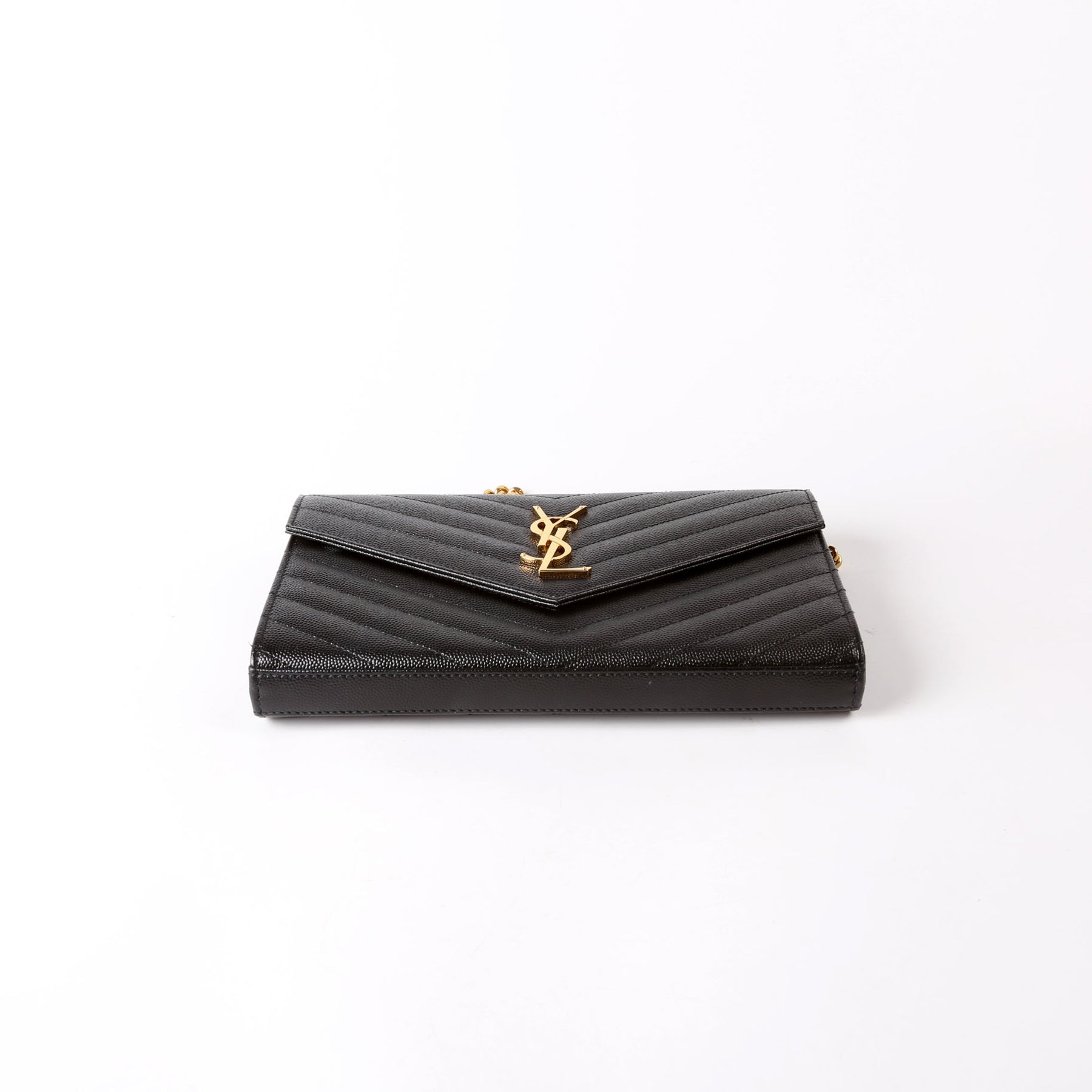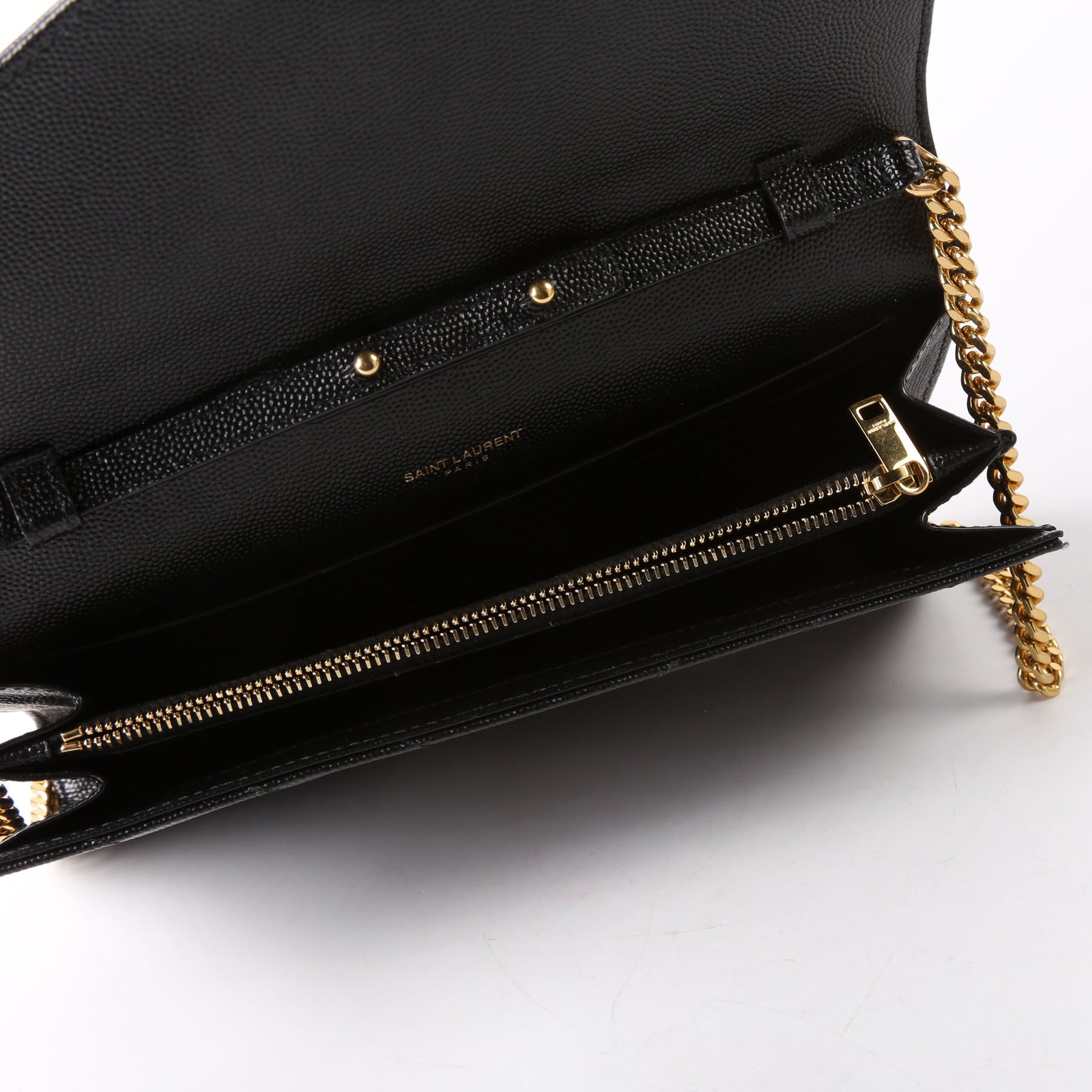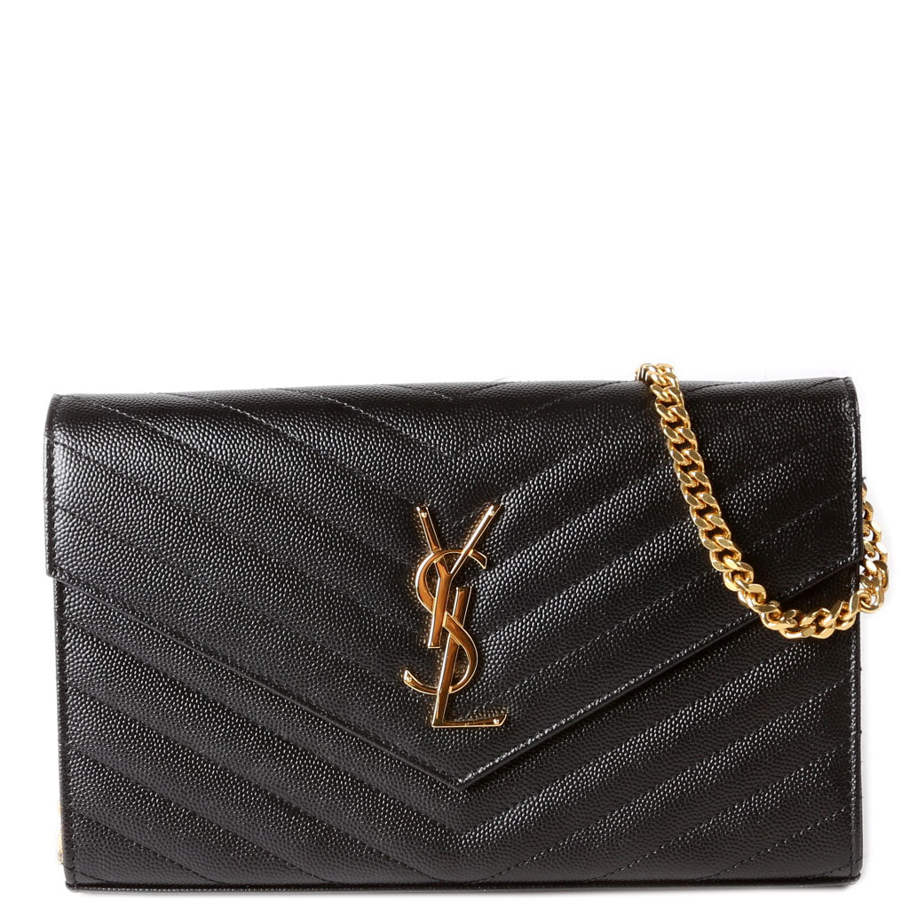 This pre-owned Saint Laurent Chain Wallet is guaranteed 100% authentic. The exterior is in the classic Saint Laurent Grain De Poudre leather.
