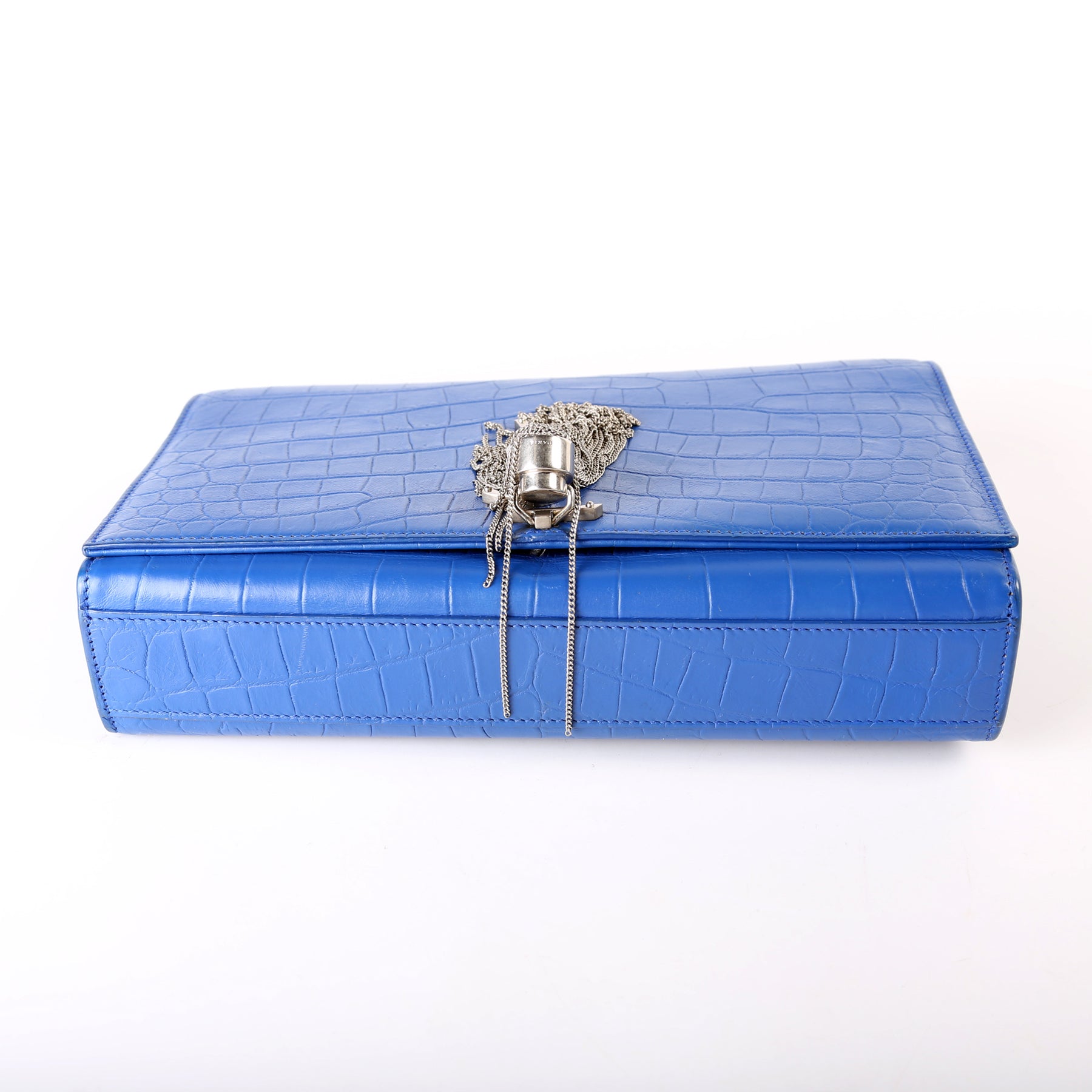 Kate Tassel Satchel Medium Croc Embossed 354119 Blue