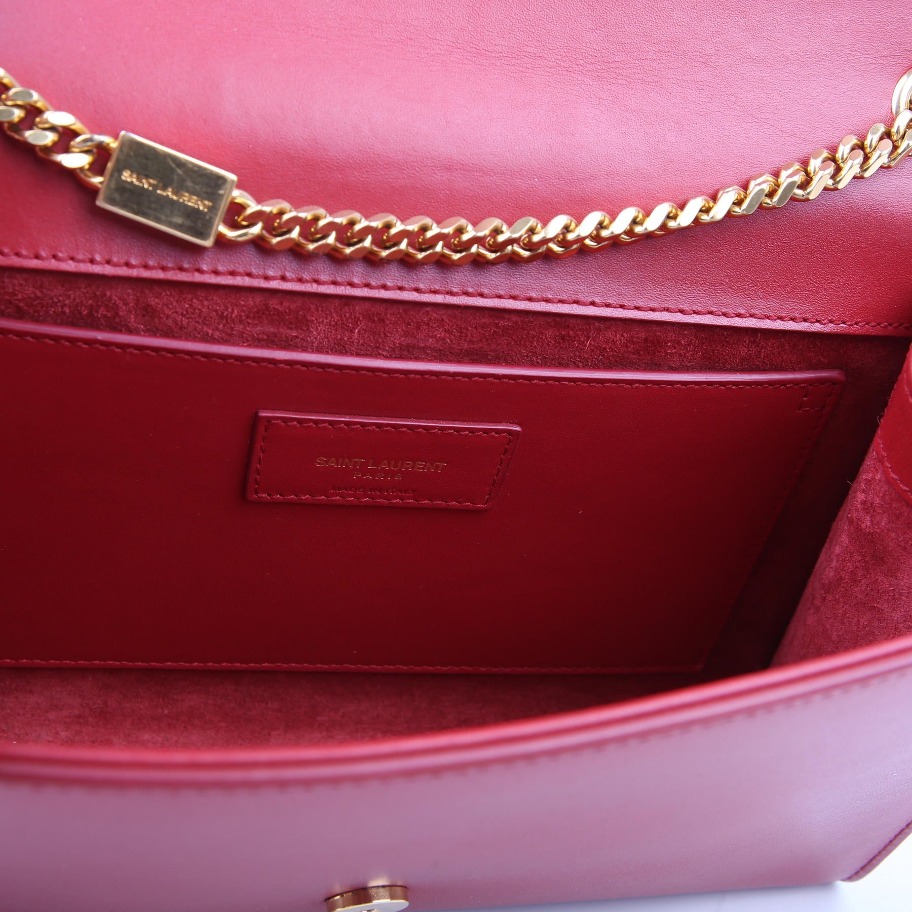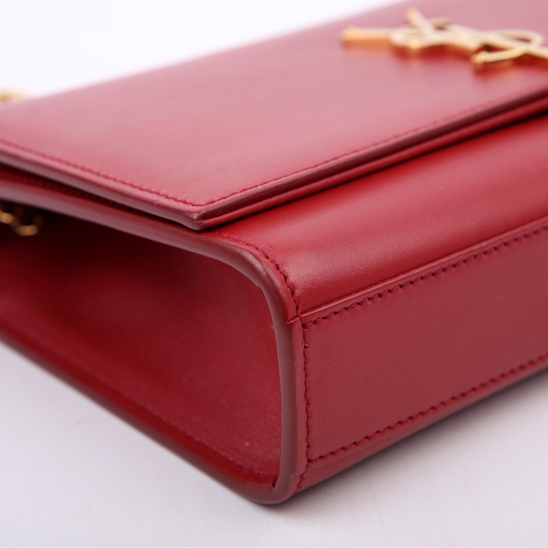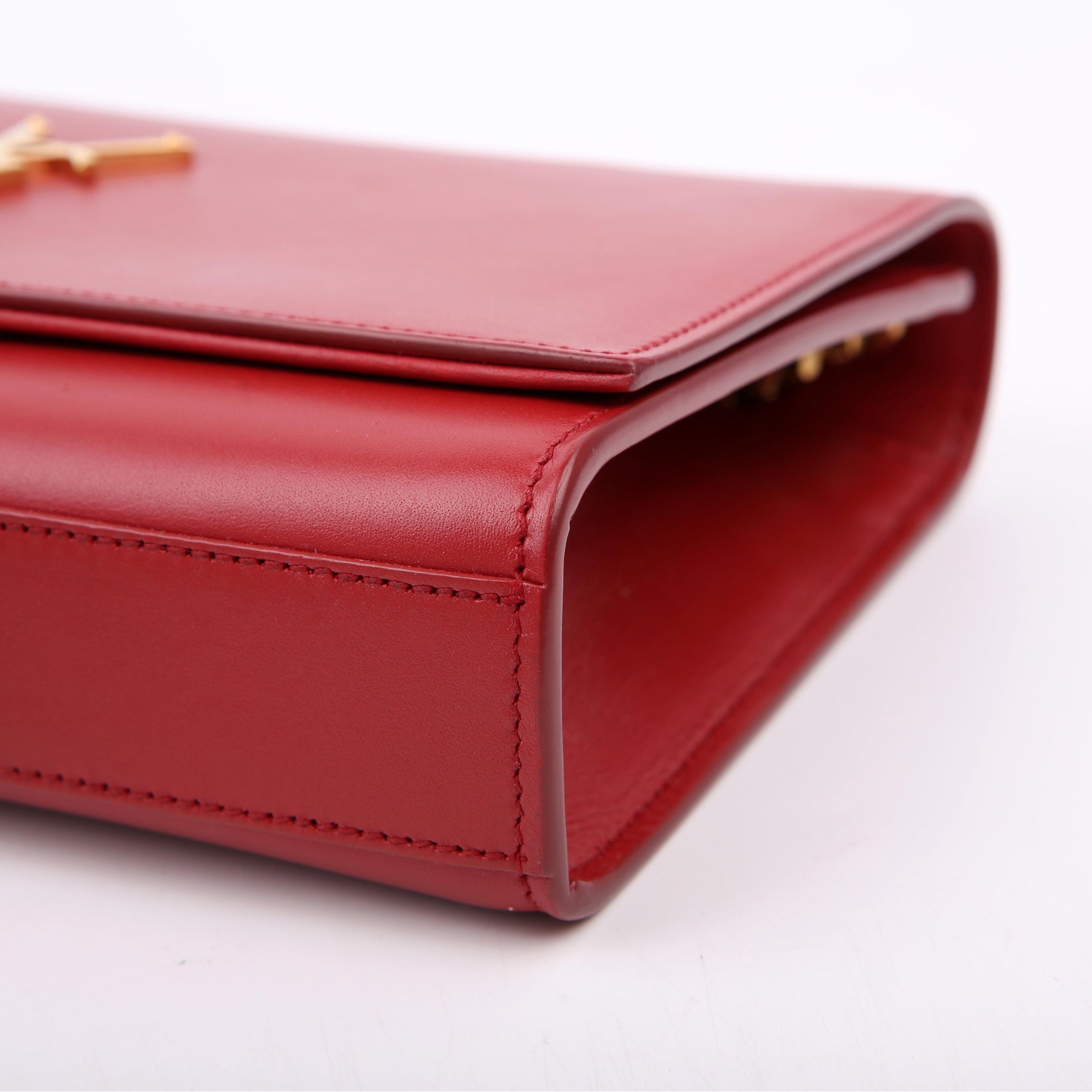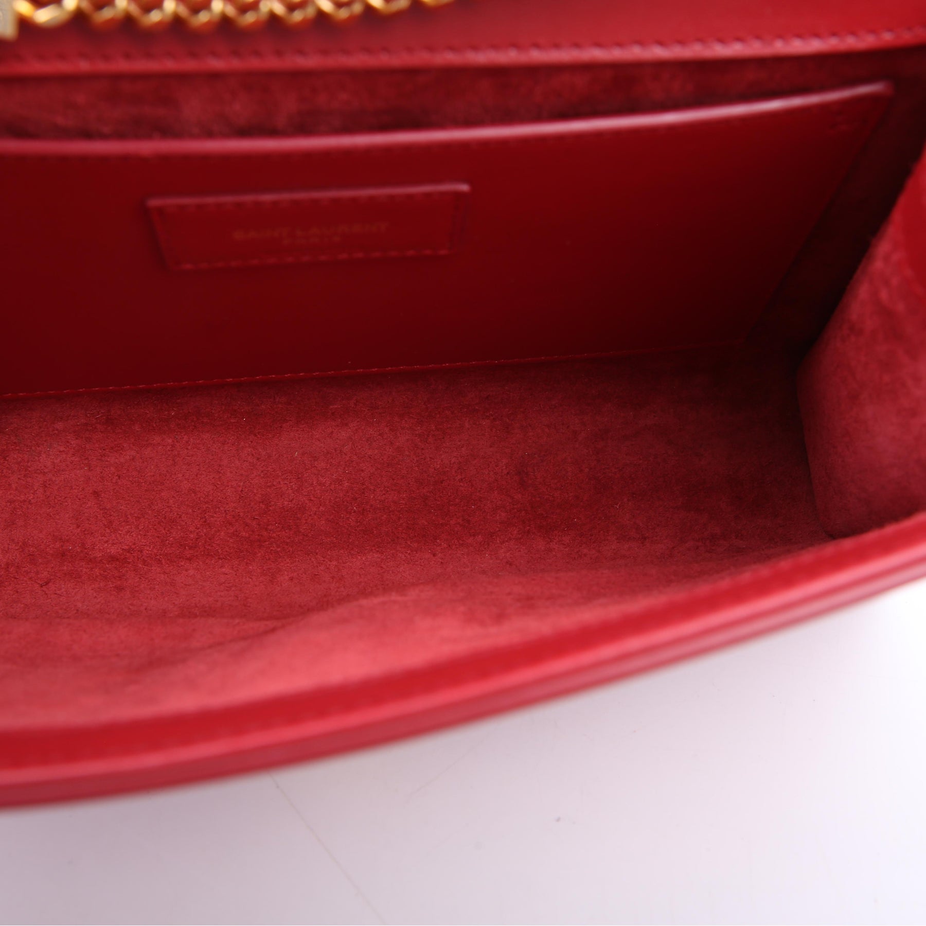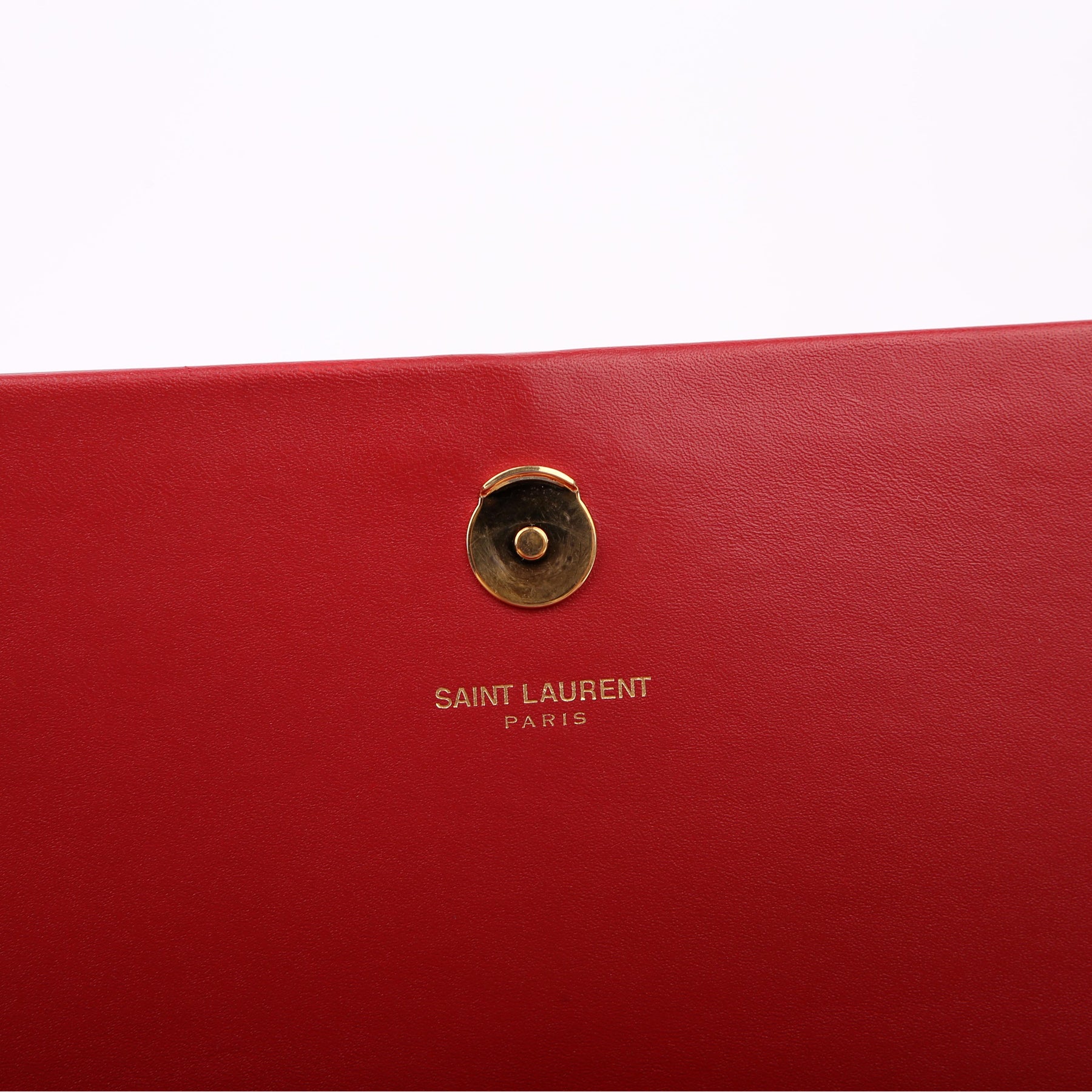 Hardware: The magnetic closure operates properly. The YSL logo shows light scratches.