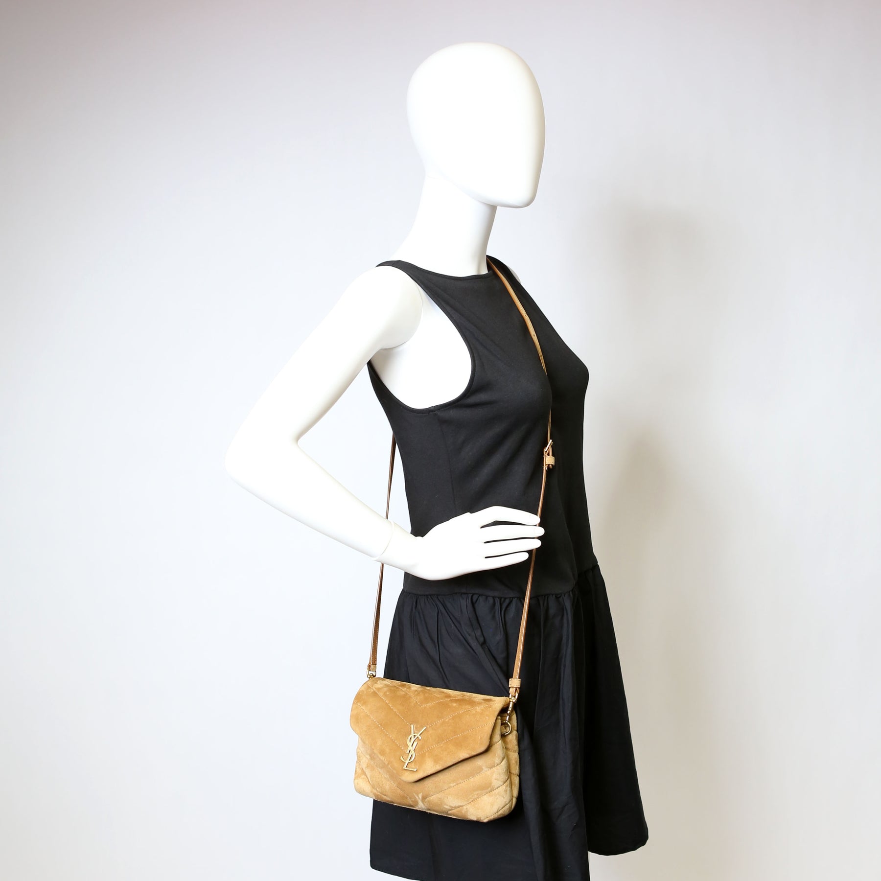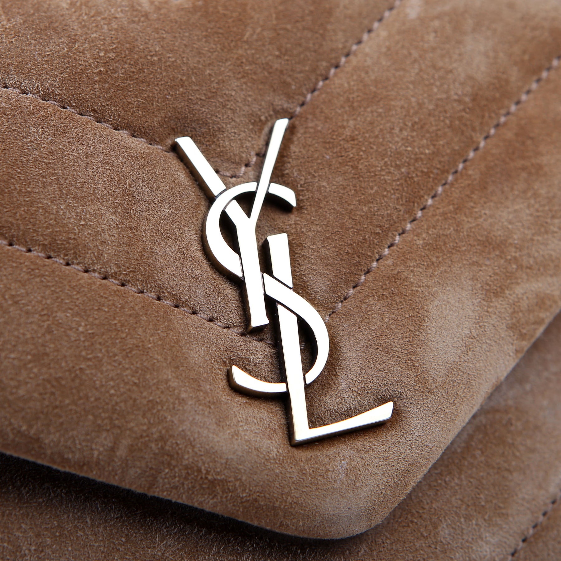 This pre-owned Saint Laurent LouLou Satchel Toy Crossbody is guaranteed 100% authentic. The exterior is in the classic Saint Laurent suede leather.