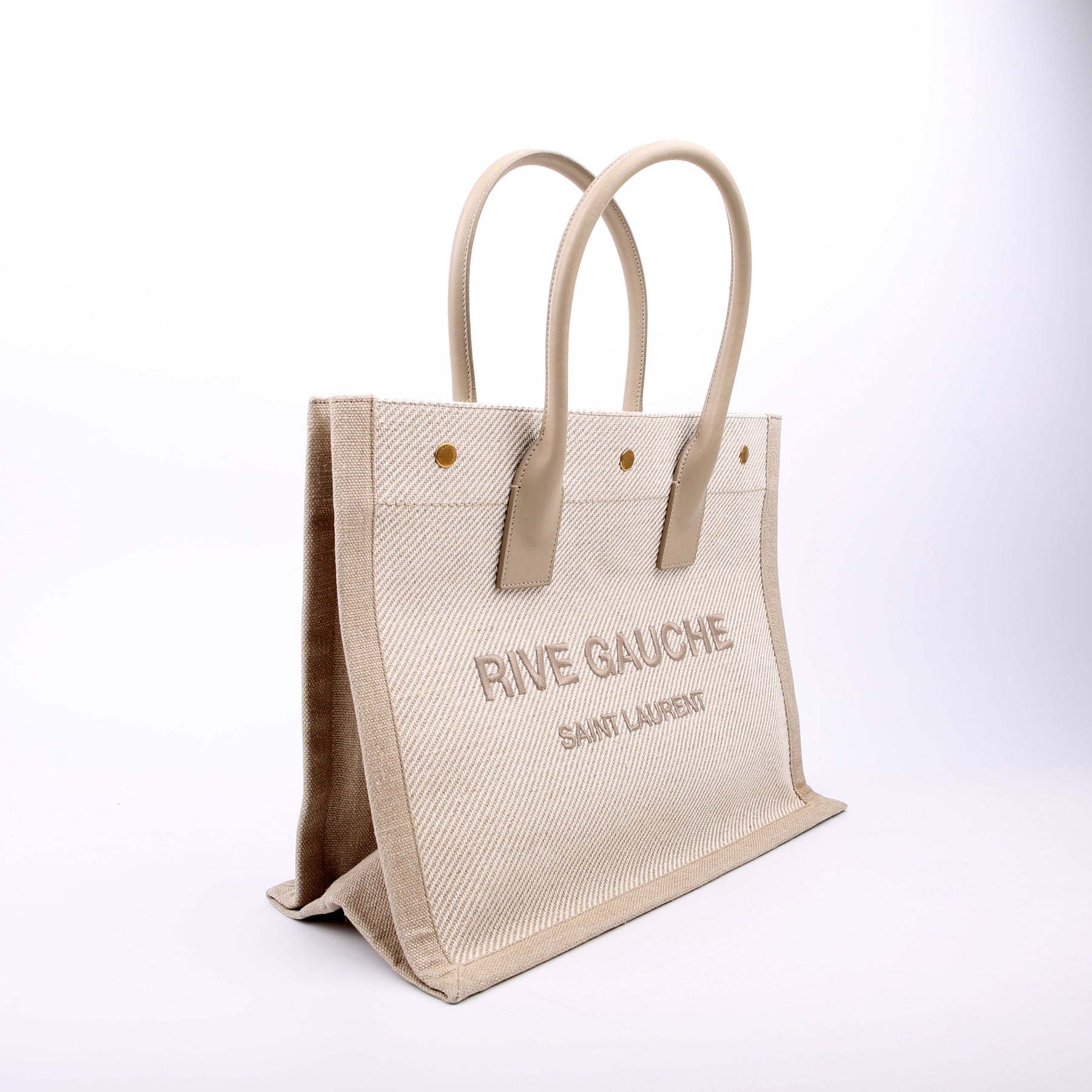 This pre-owned Saint Laurent Rive Gauche Tote Small is guaranteed 100% authentic. The exterior is in the Saint Laurent Rive Gauche canvas.